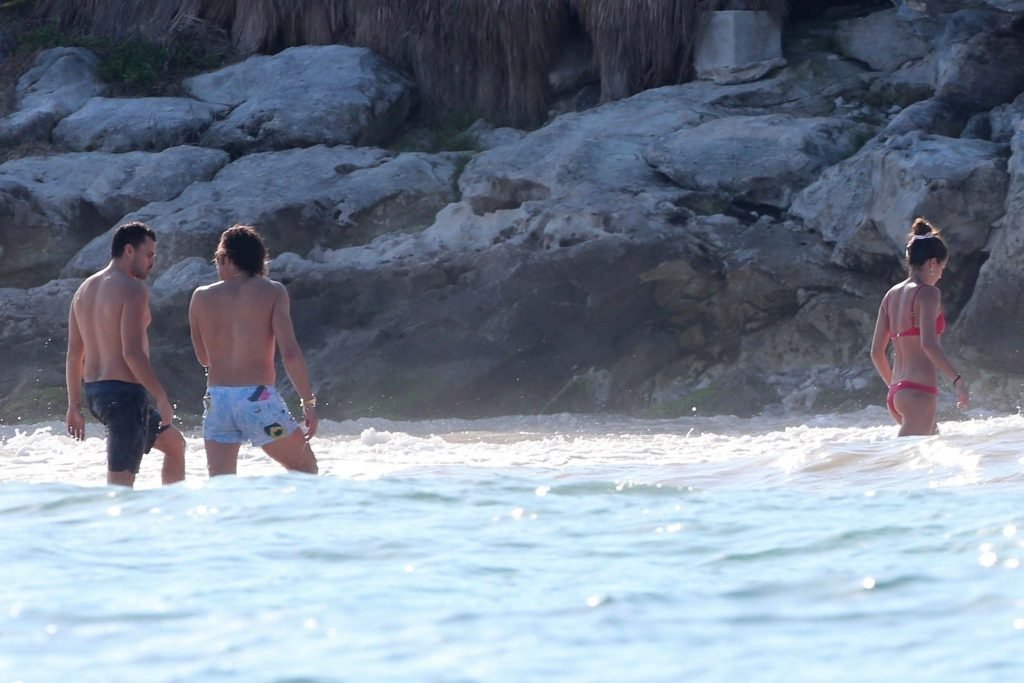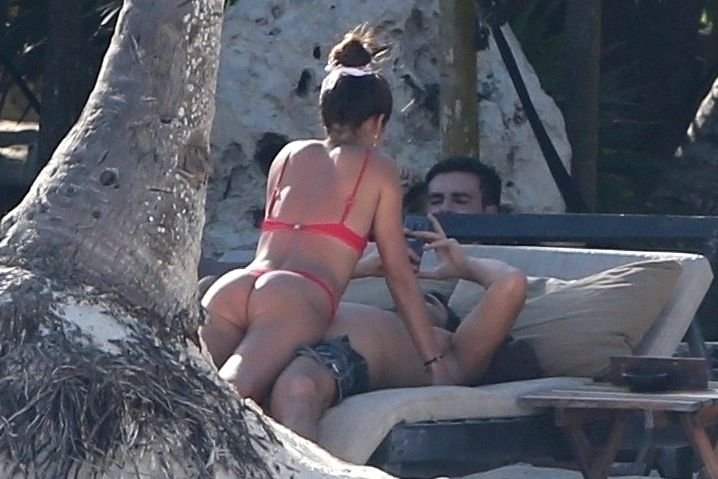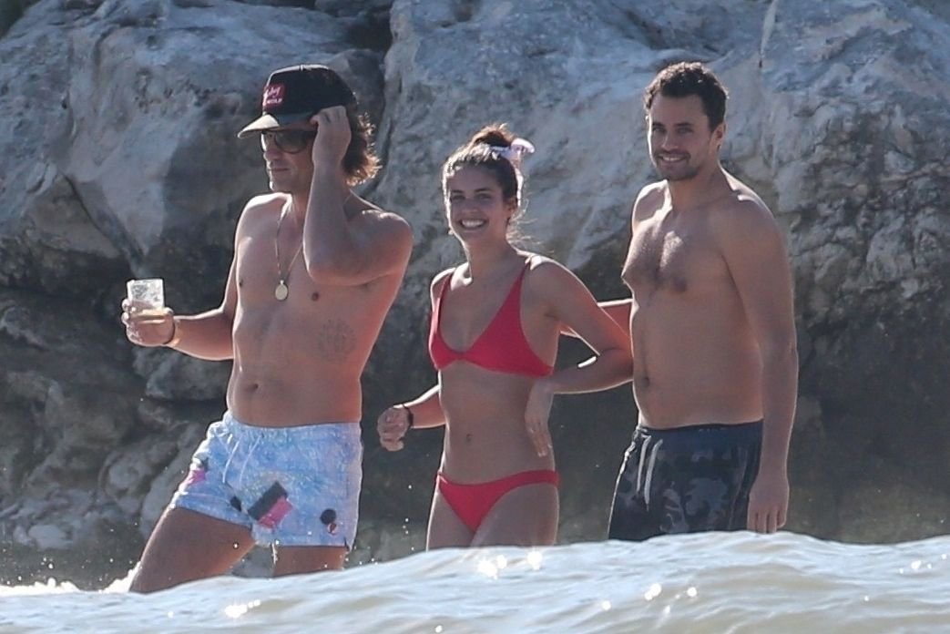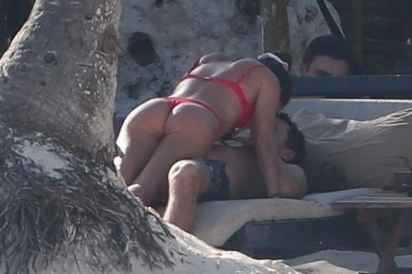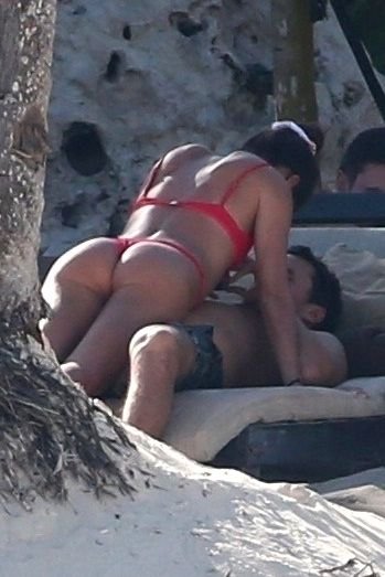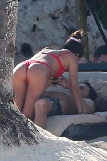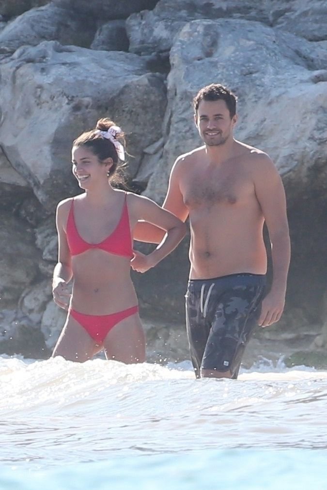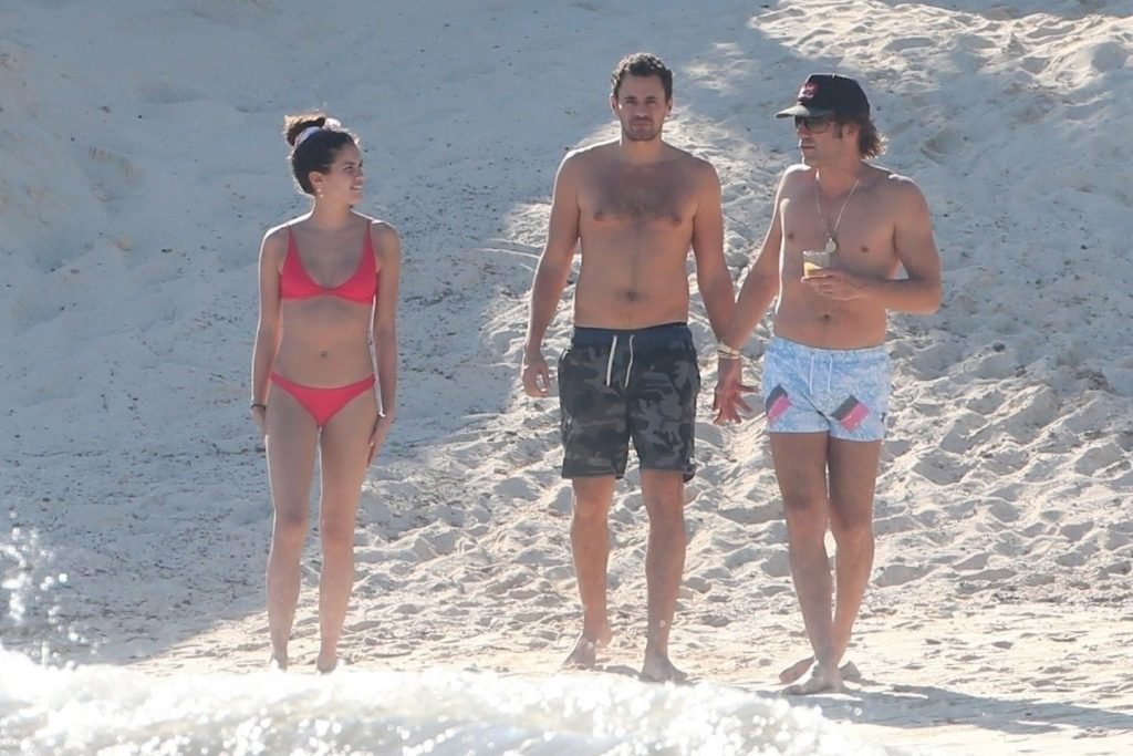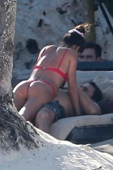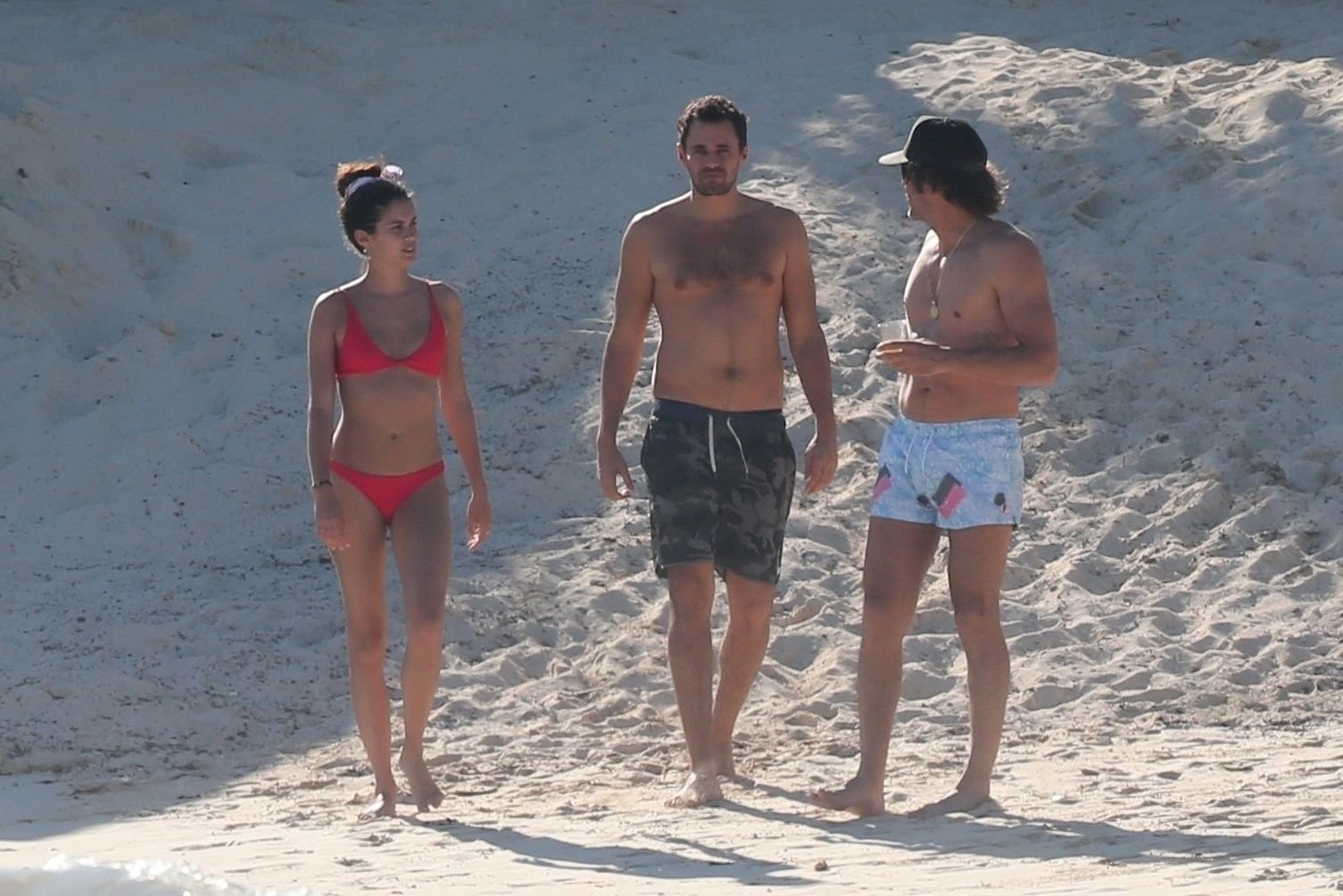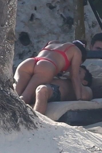 Модель Сара Сампайо (27) и актер Оливье Рипли страстно проводят время на пляже в Тулуме, Мексика, 23.11.2018.