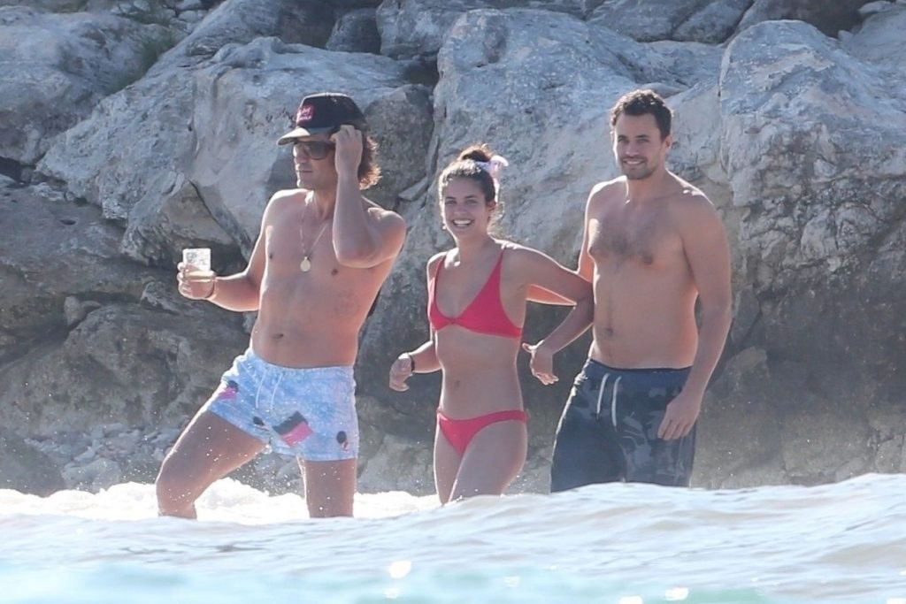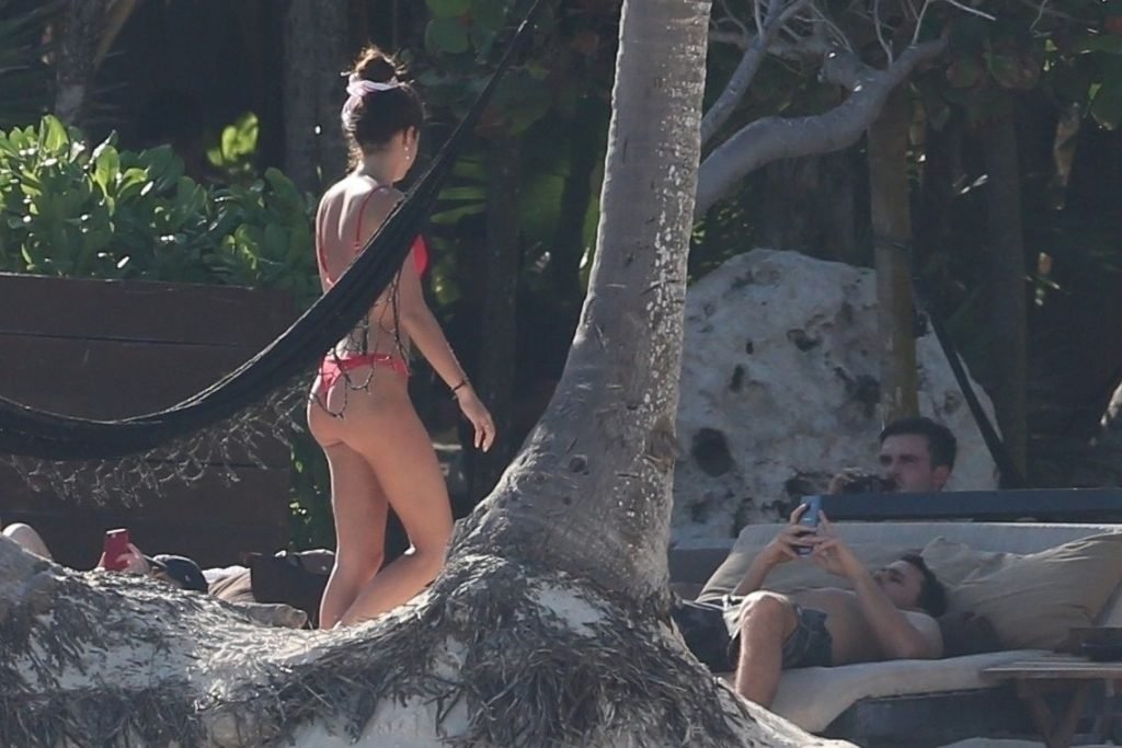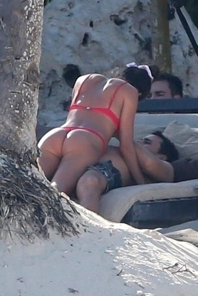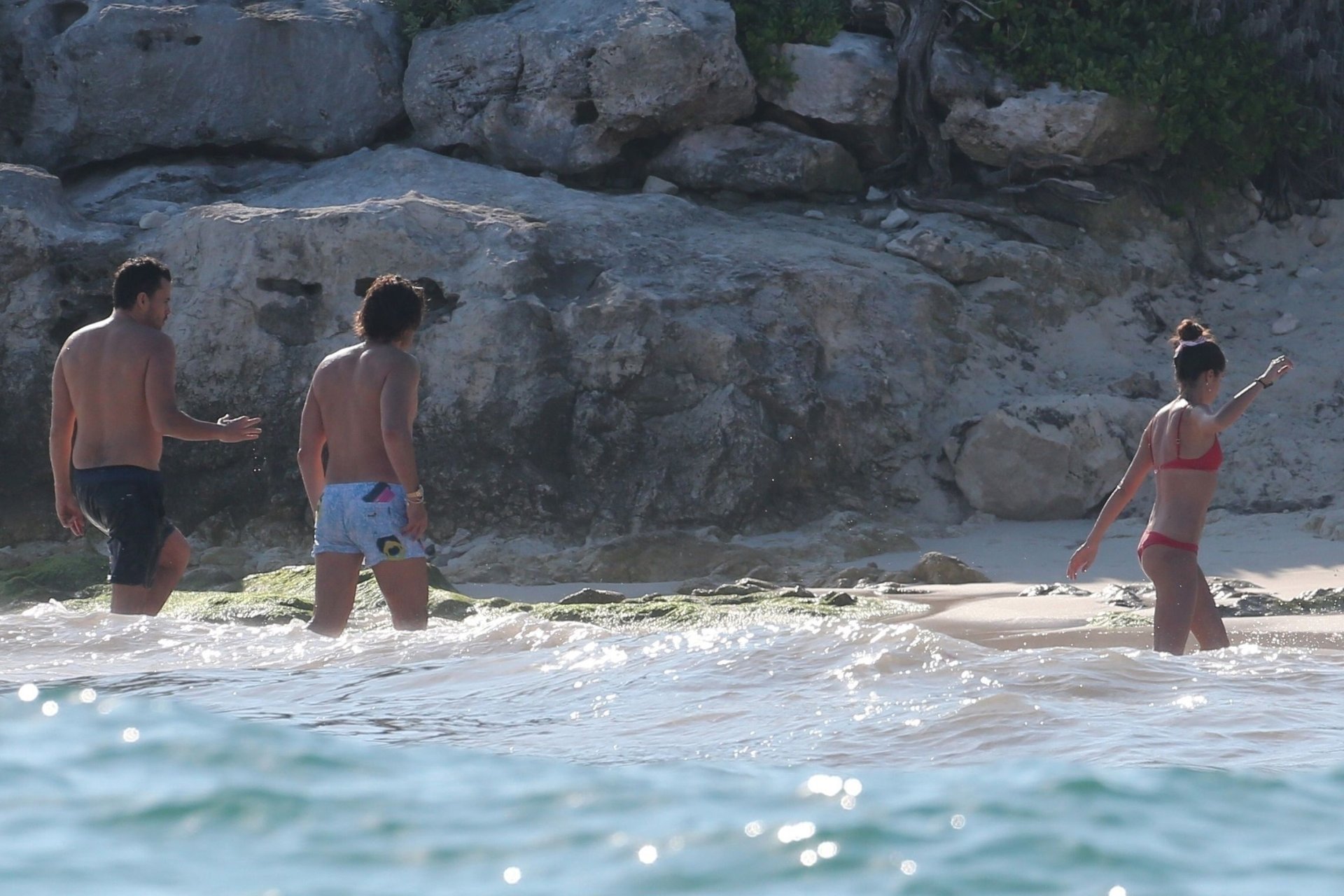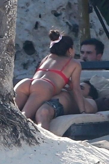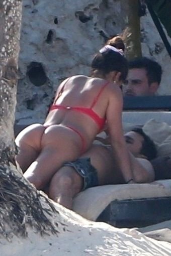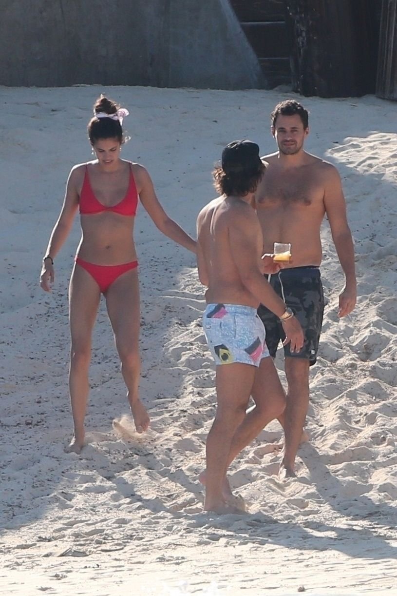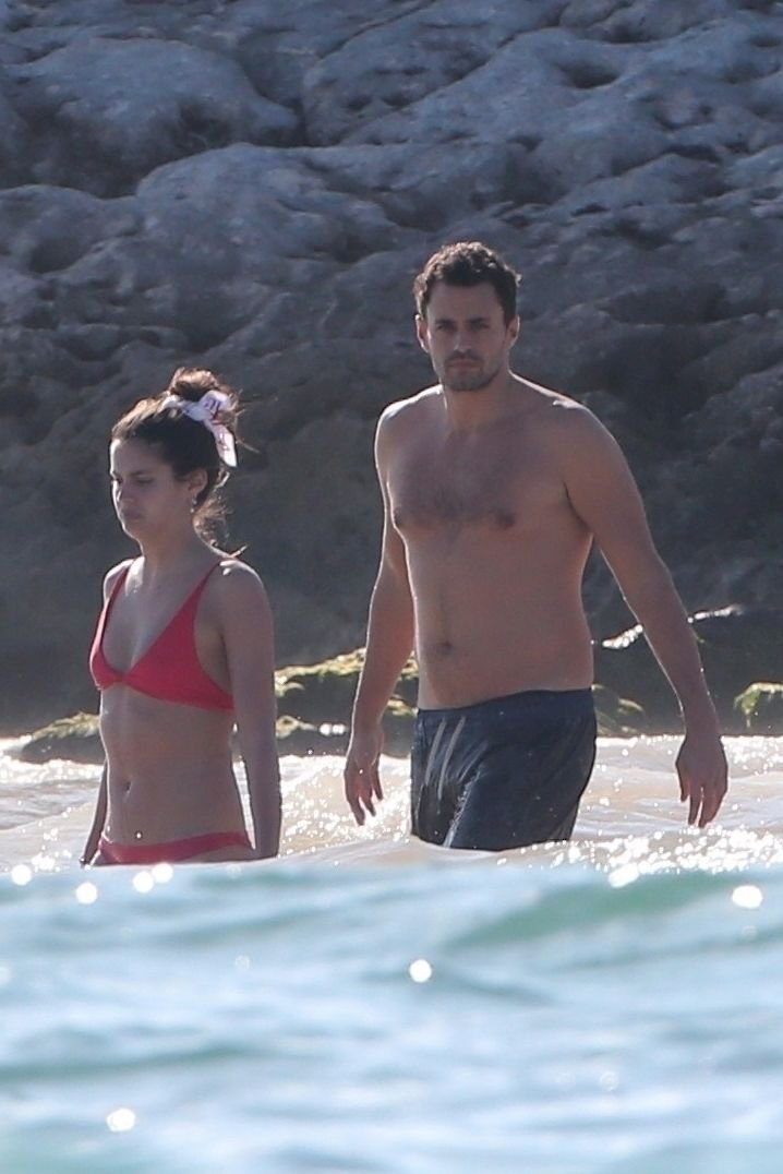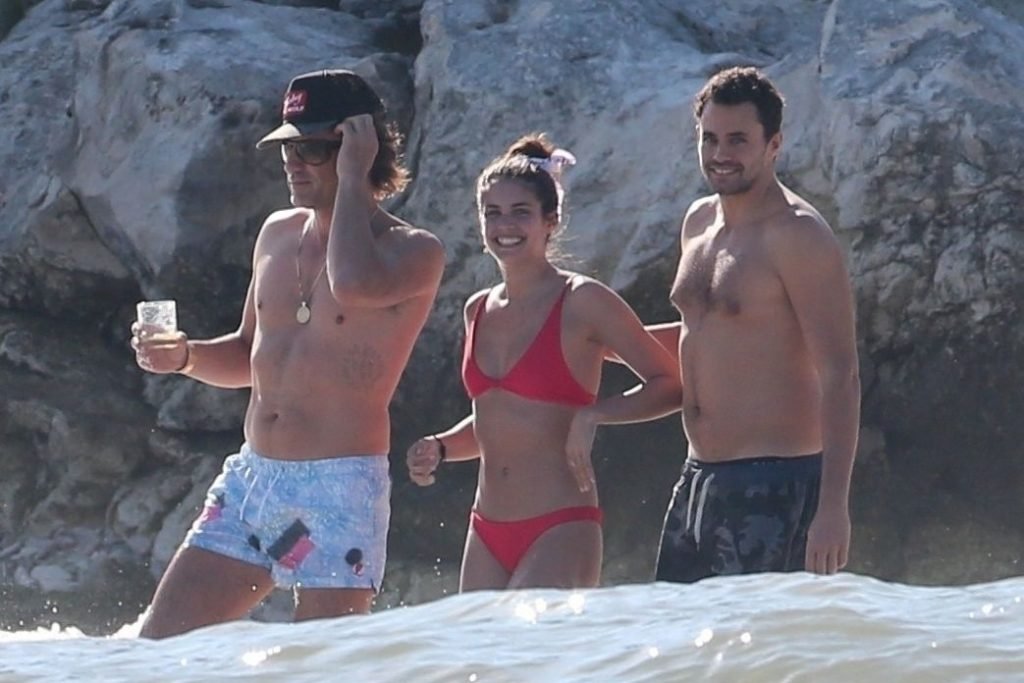 Модель Сара Сампайо (27) и актер Оливье Рипли страстно проводят время на пляже в Тулуме, Мексика, 23.11.2018.