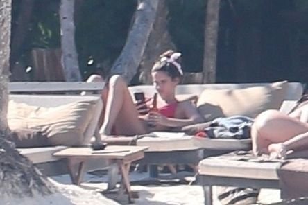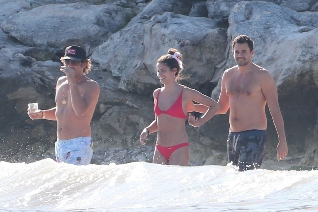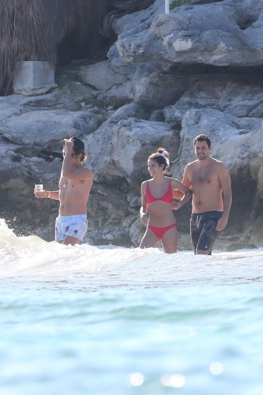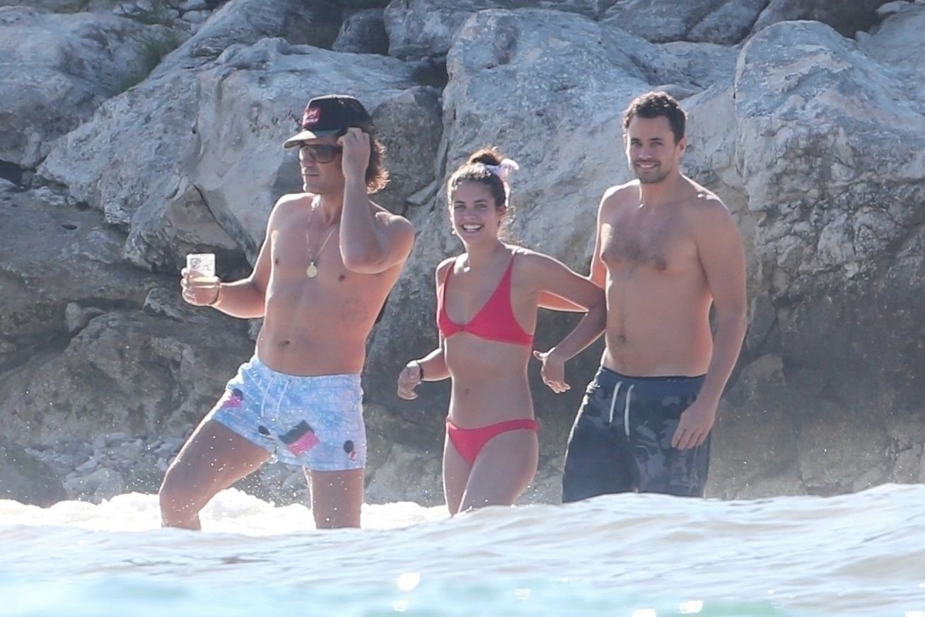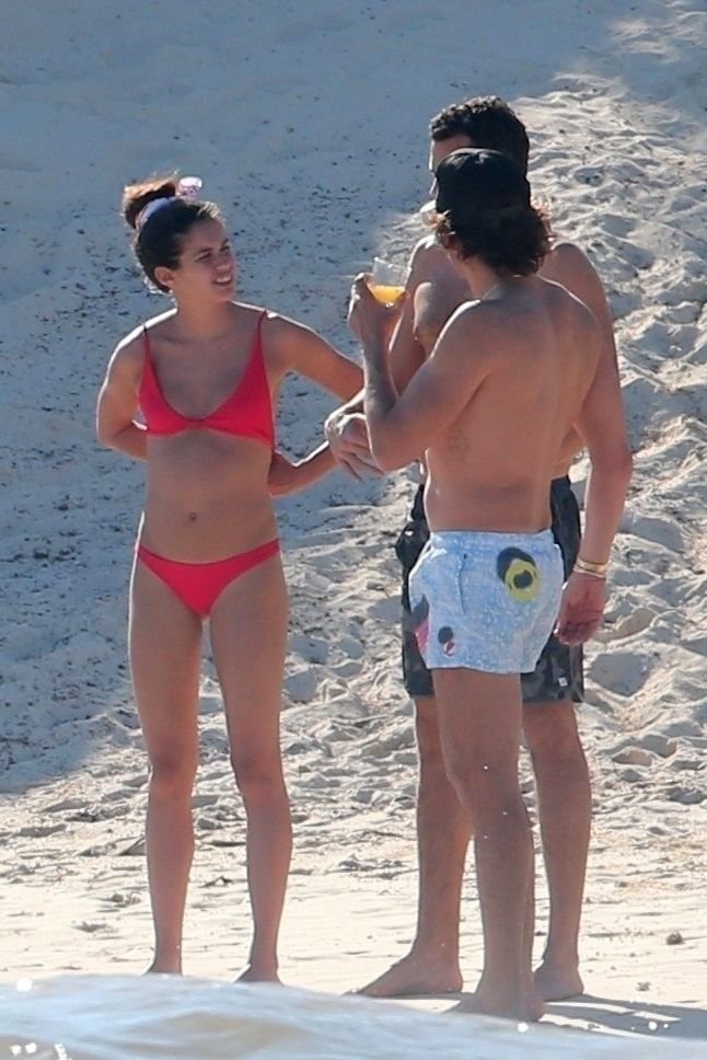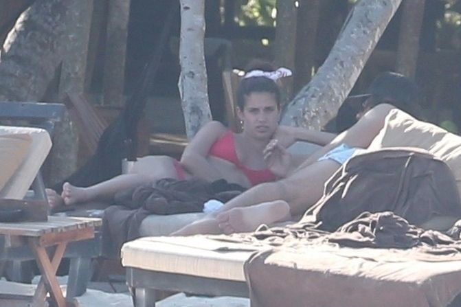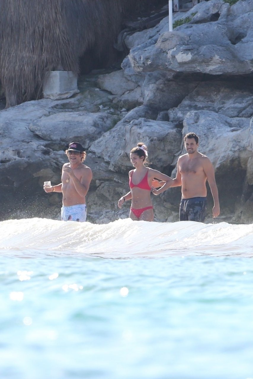 Модель Сара Сампайо (27) и актер Оливье Рипли страстно проводят время на пляже в Тулуме, Мексика, 23.11.2018.