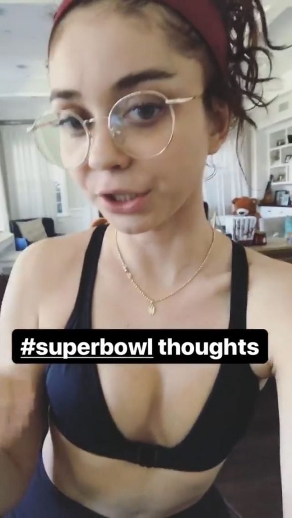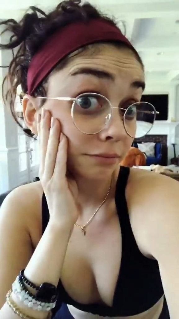 Актриса Сара Хайленд демонстрирует глубокое декольте в Instagram, 02/04/2018.