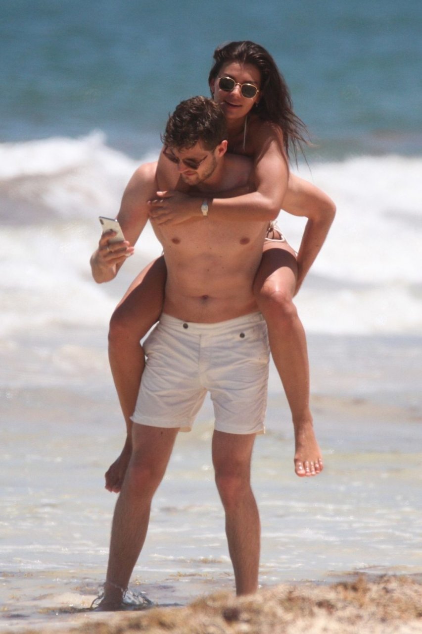 YouTuber Jim Chapman был замечен, наслаждаясь солнечным днем на пляже в Тулуме, празднуя день рождения своей новой девушки Сары Тарлетон, 16.07.2019.