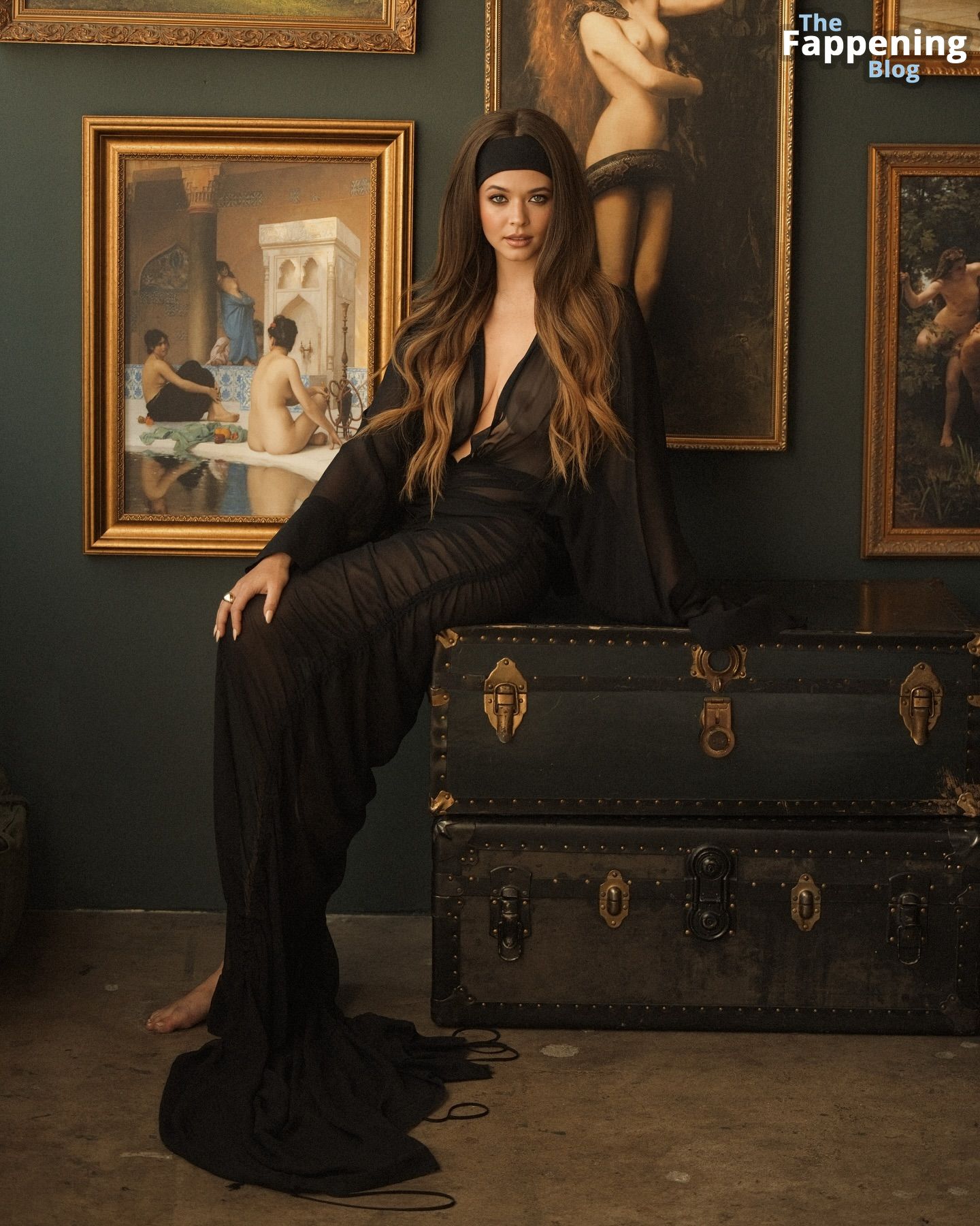 Актриса Саша Питерсе обнажает свою грудь, позируя в прозрачном платье на новой фотосессии.
