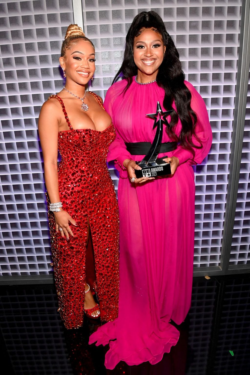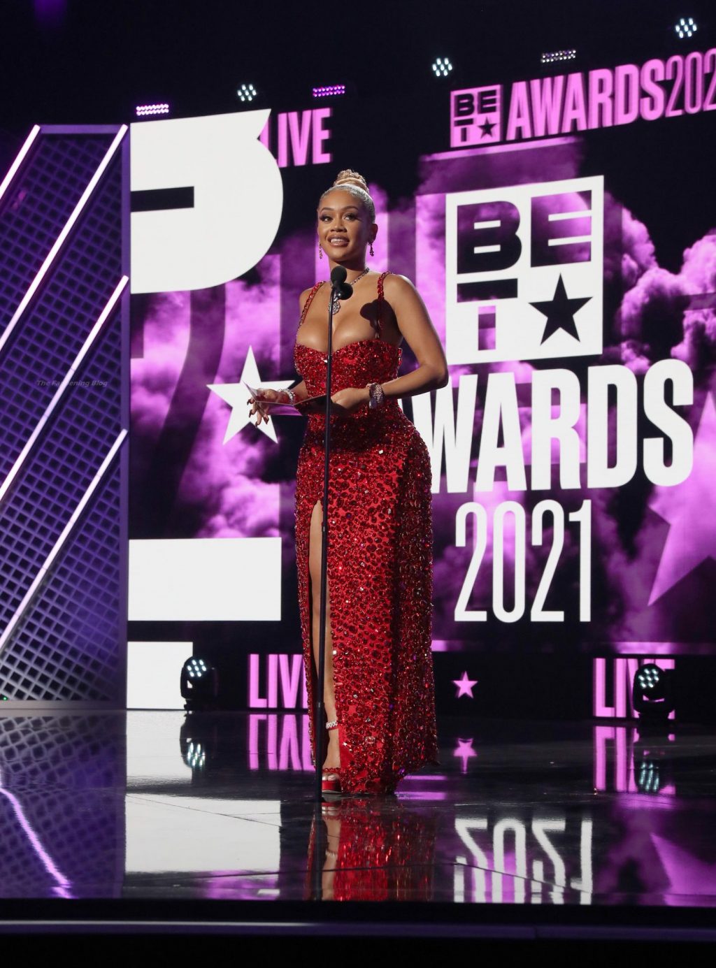 Певица Saweetie демонстрирует свое красивое декольте, посещая премию BET Awards 2021 в Microsoft Theater в Лос-Анджелесе, 27.06.2021.