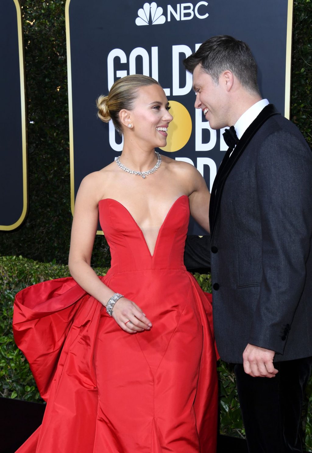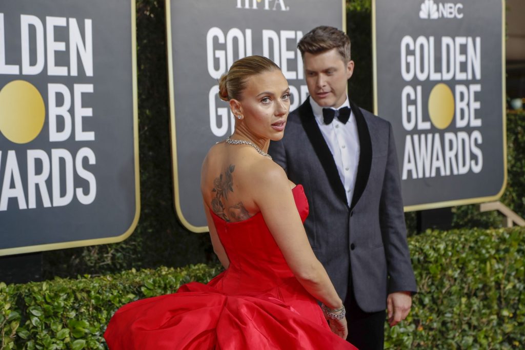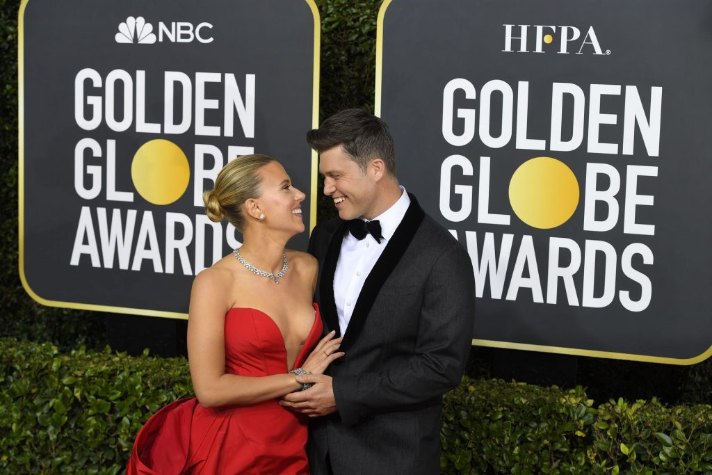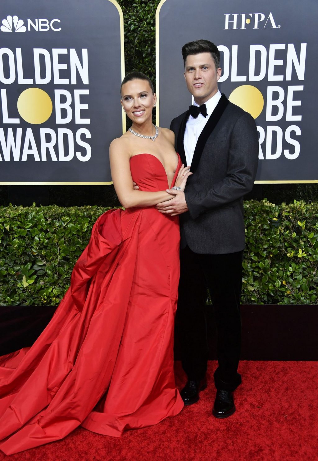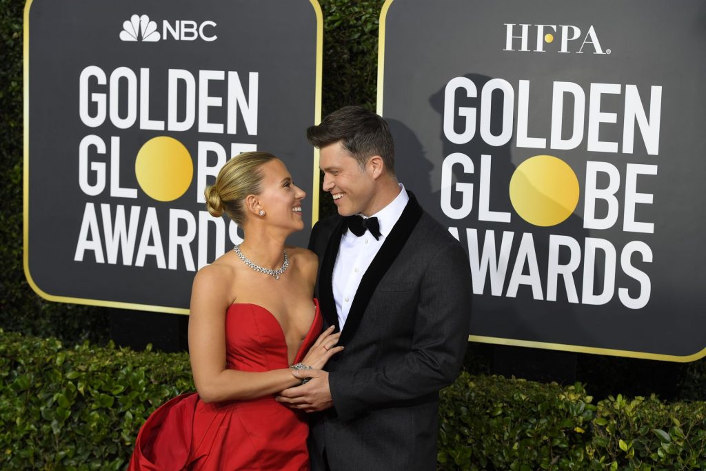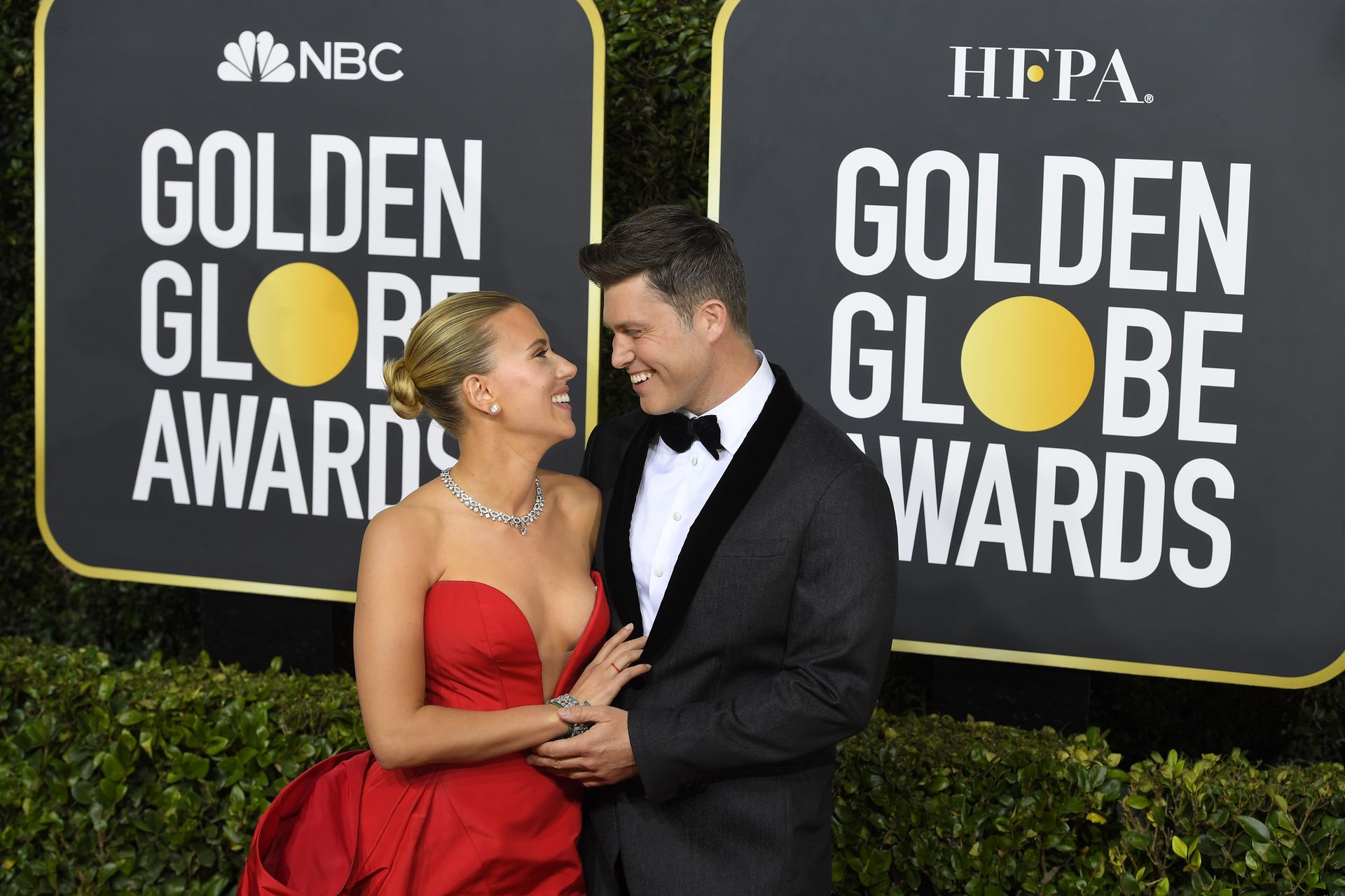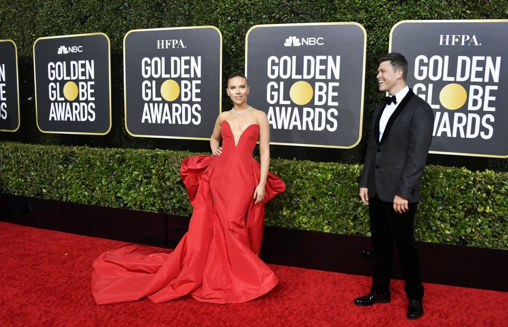 Актриса Скарлетт Йоханссон и актер Колин Джост были сфотографированы во время прибытия на 77-ю церемонию вручения премии «Золотой глобус» в отеле Beverly Hilton 5 января 2020 года.