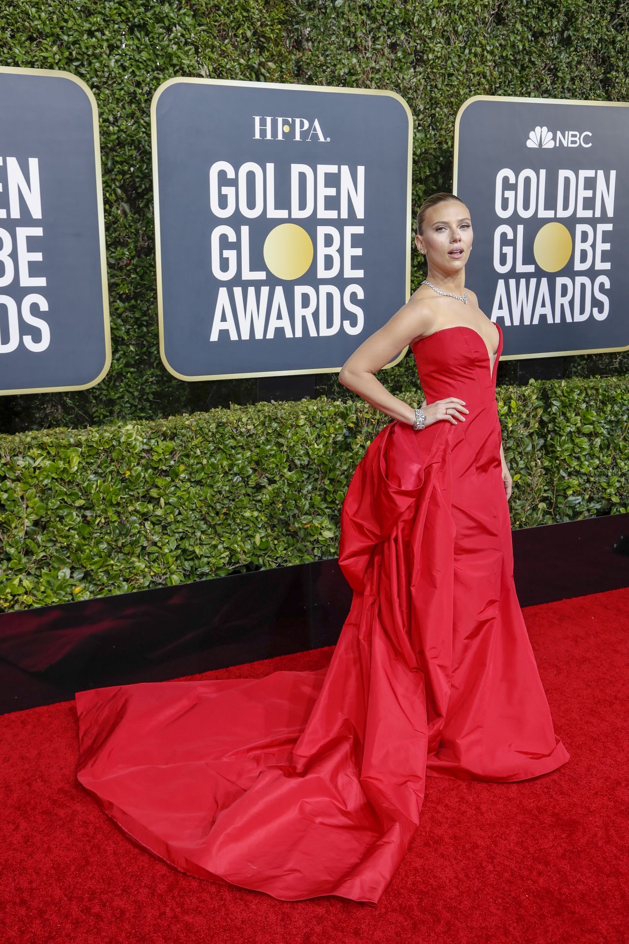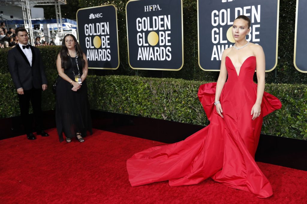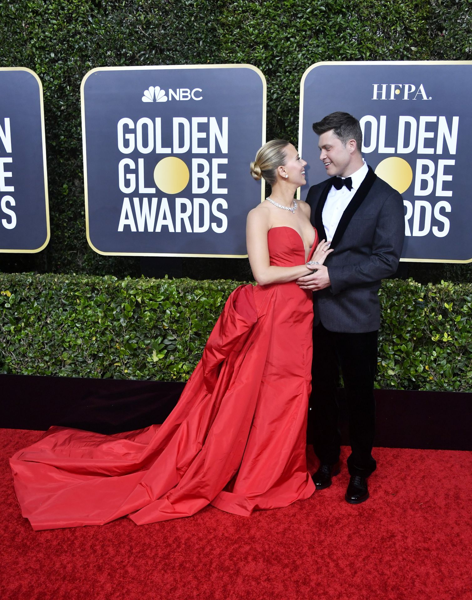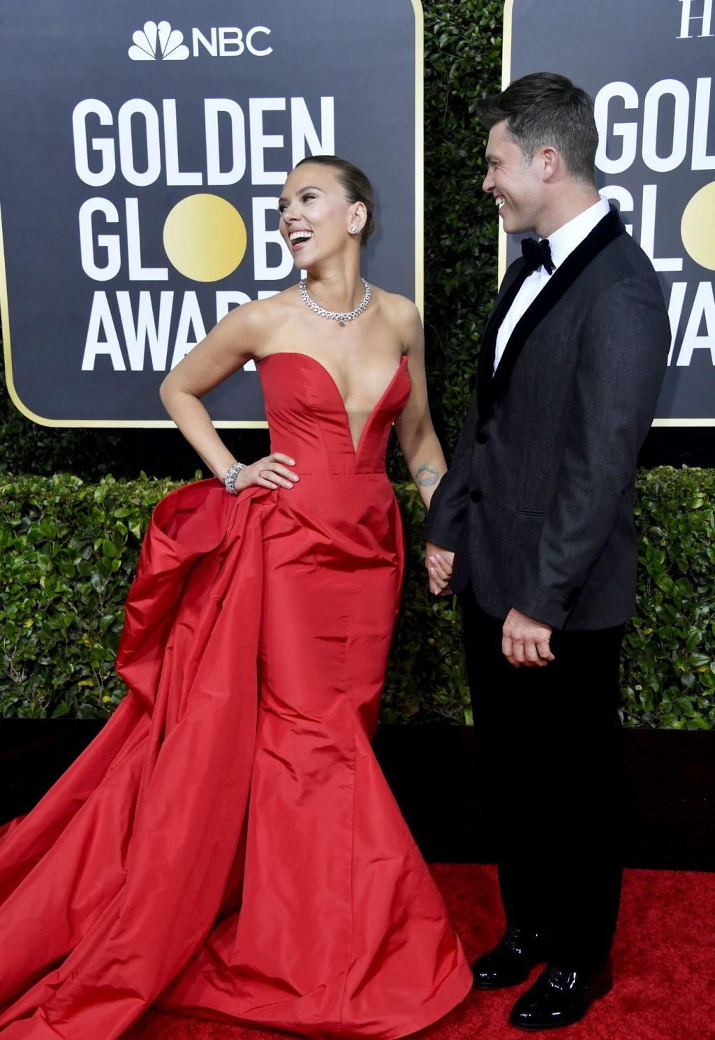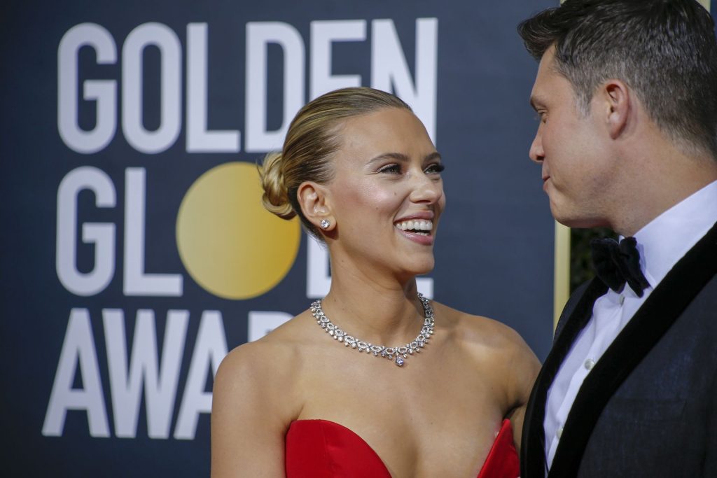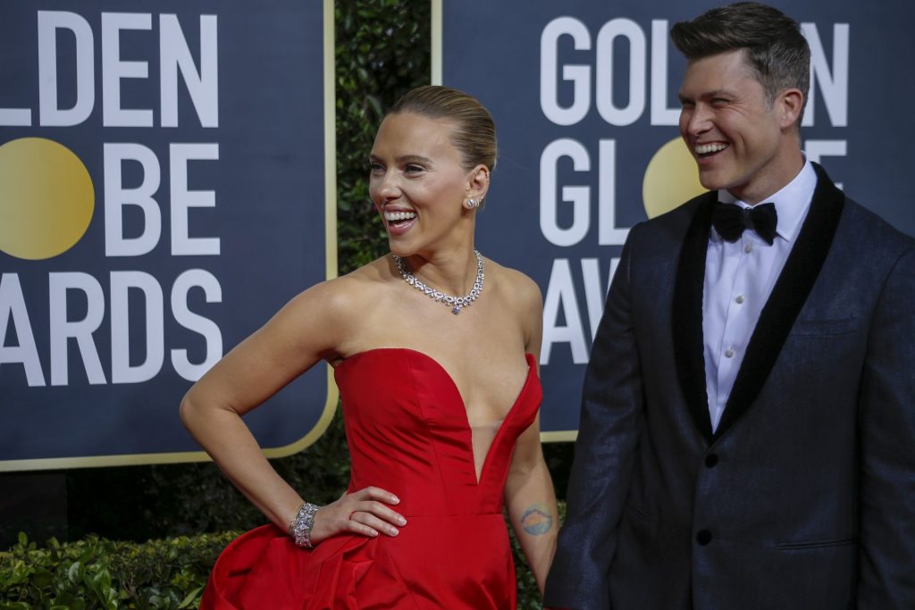 Актриса Скарлетт Йоханссон и актер Колин Джост были сфотографированы во время прибытия на 77-ю церемонию вручения премии «Золотой глобус» в отеле Beverly Hilton 5 января 2020 года.