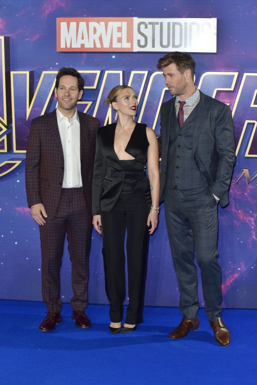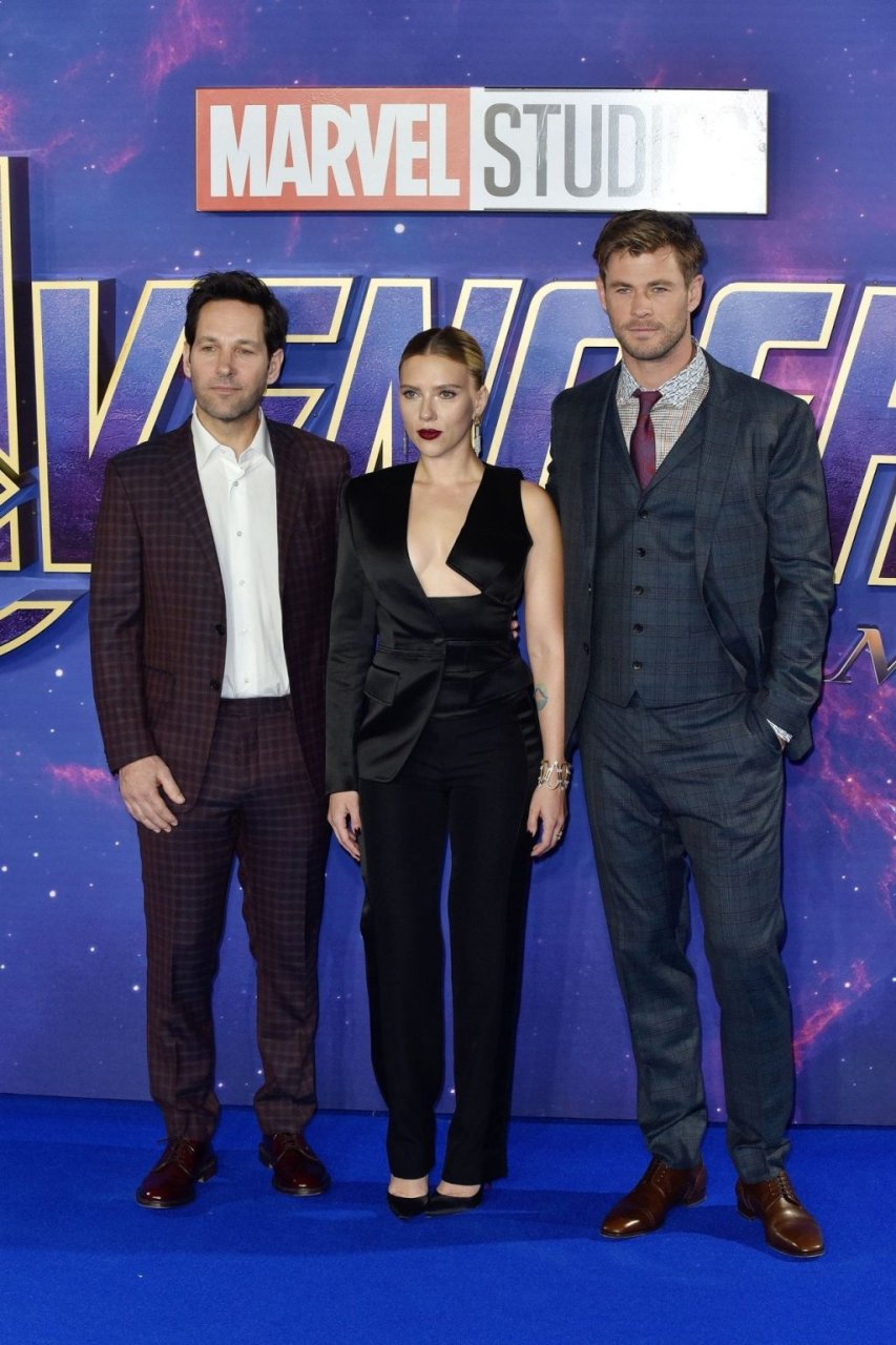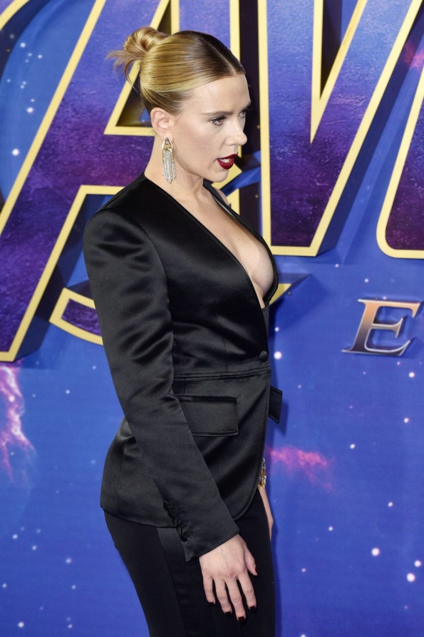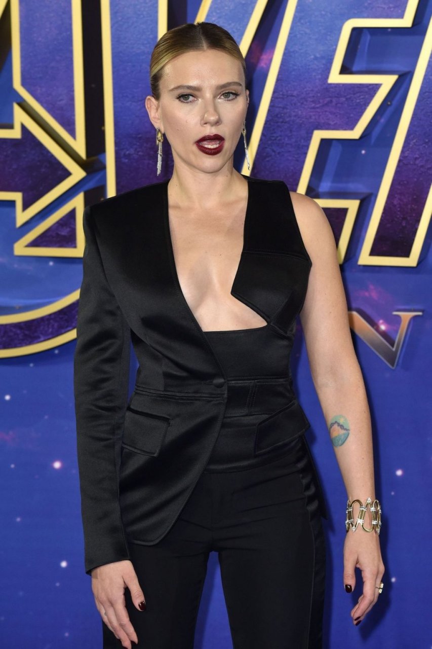 Без бюстгальтера Скарлетт Йоханссон посещает фотоколл на фанатском мероприятии “Мстители: Финал” в Picturehouse Central в Лондоне, 04/10/2019.