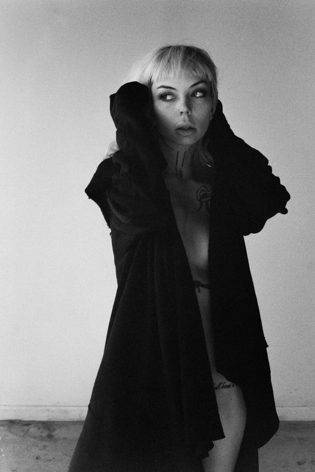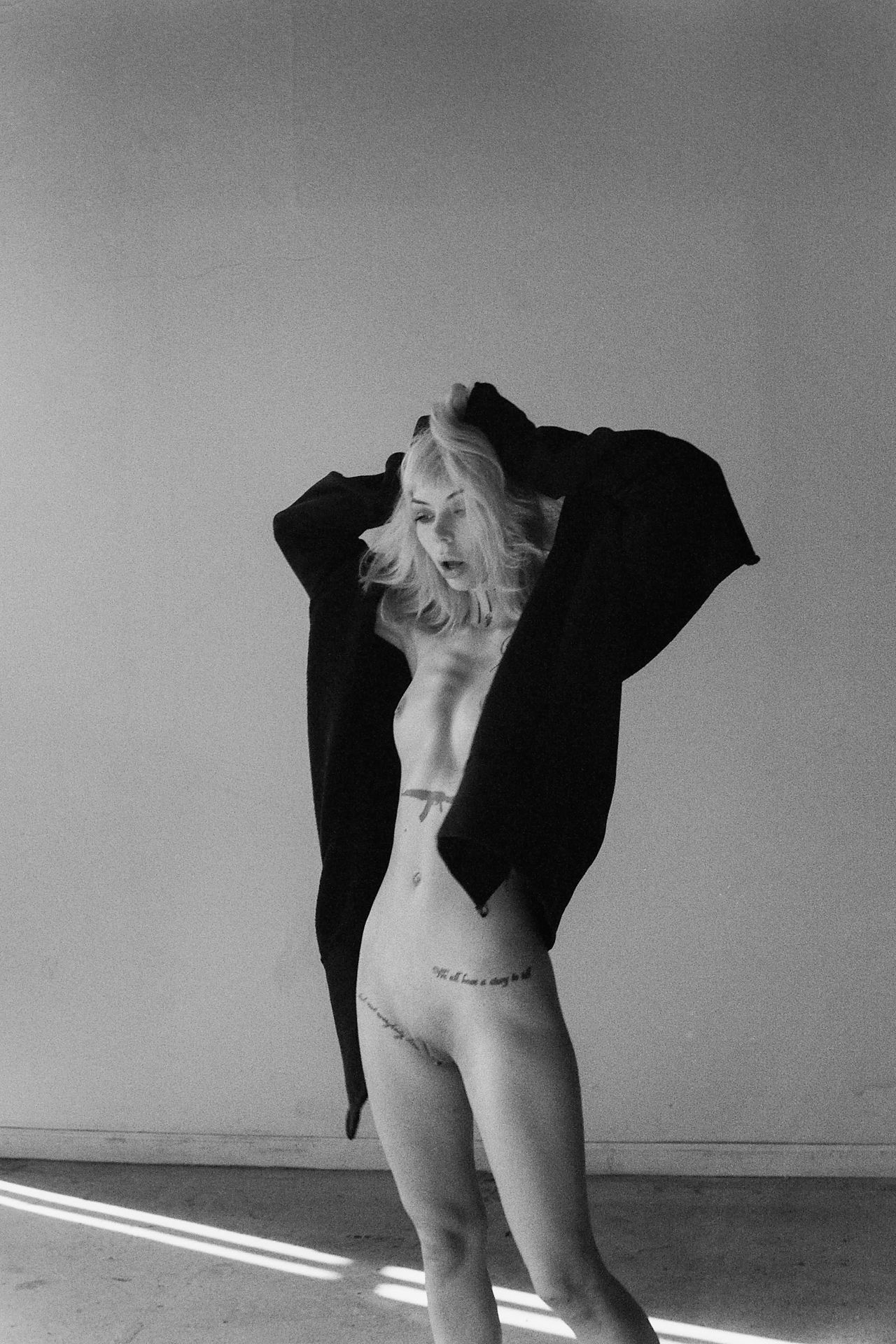 Schanae Jellick (известная также как Peyote Jaye) демонстрирует свои татуированные голые груди, зад и киску в новой черно-белой фотосессии от Bienvenido Cruz (2020).