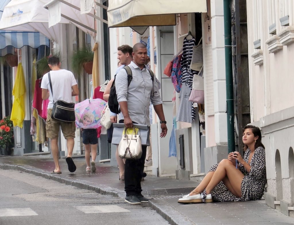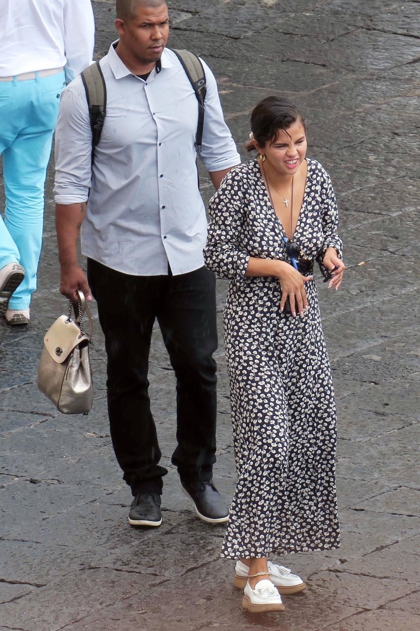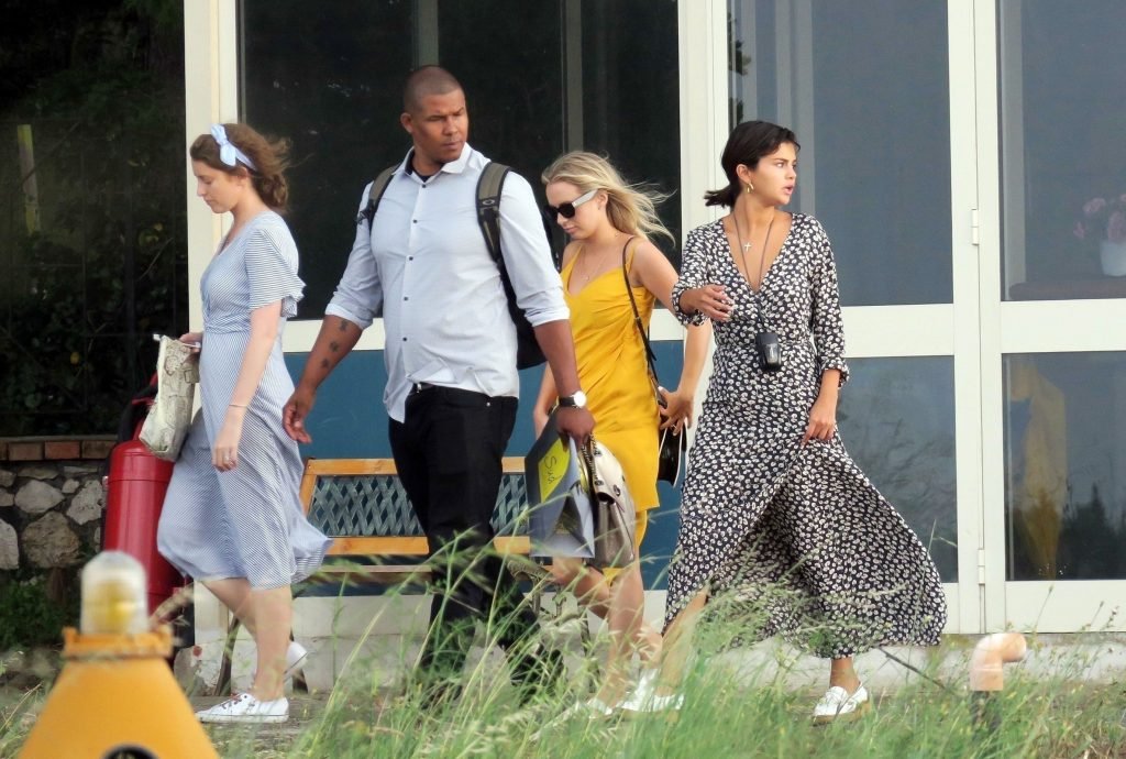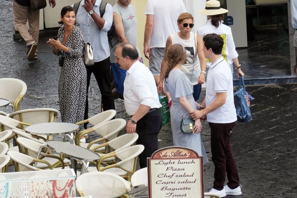 Американская певица и актриса Селена Гомес (25) на отдыхе в Капри, Италия, 18.06.2018. Певица была замечена с друзьями Дэвидом Хенри и его женой Марией Кахилл, когда они совершали вертолетную экскурсию по побережью Капри, а затем отправились в центр города для дальнейших прогулок и осмотра достопримечательностей. Гомес выглядела комфортно, делая фотографии с друзьями и окружающими пейзажами, прогуливаясь с охранником.