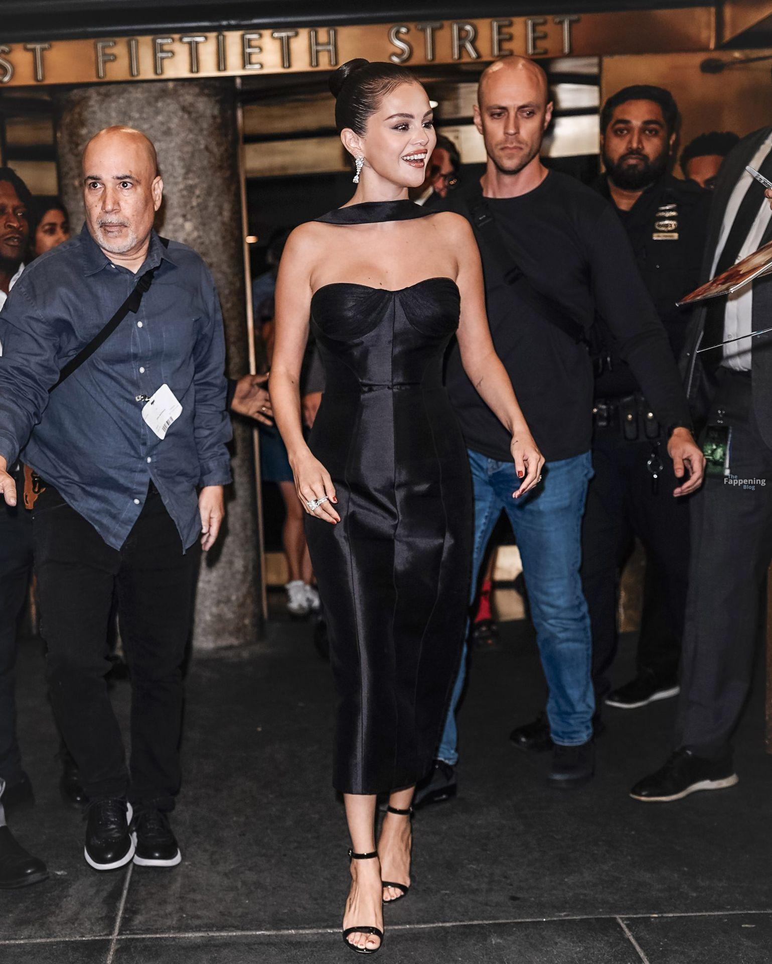 Селена Гомес демонстрировала глубокое декольте в черном атласном платье без бретелек. Суперзвезда, певица и актриса, была окружена поклонниками после шоу The Tonight Show Starring Jimmy Fallon в Нью-Йорке.