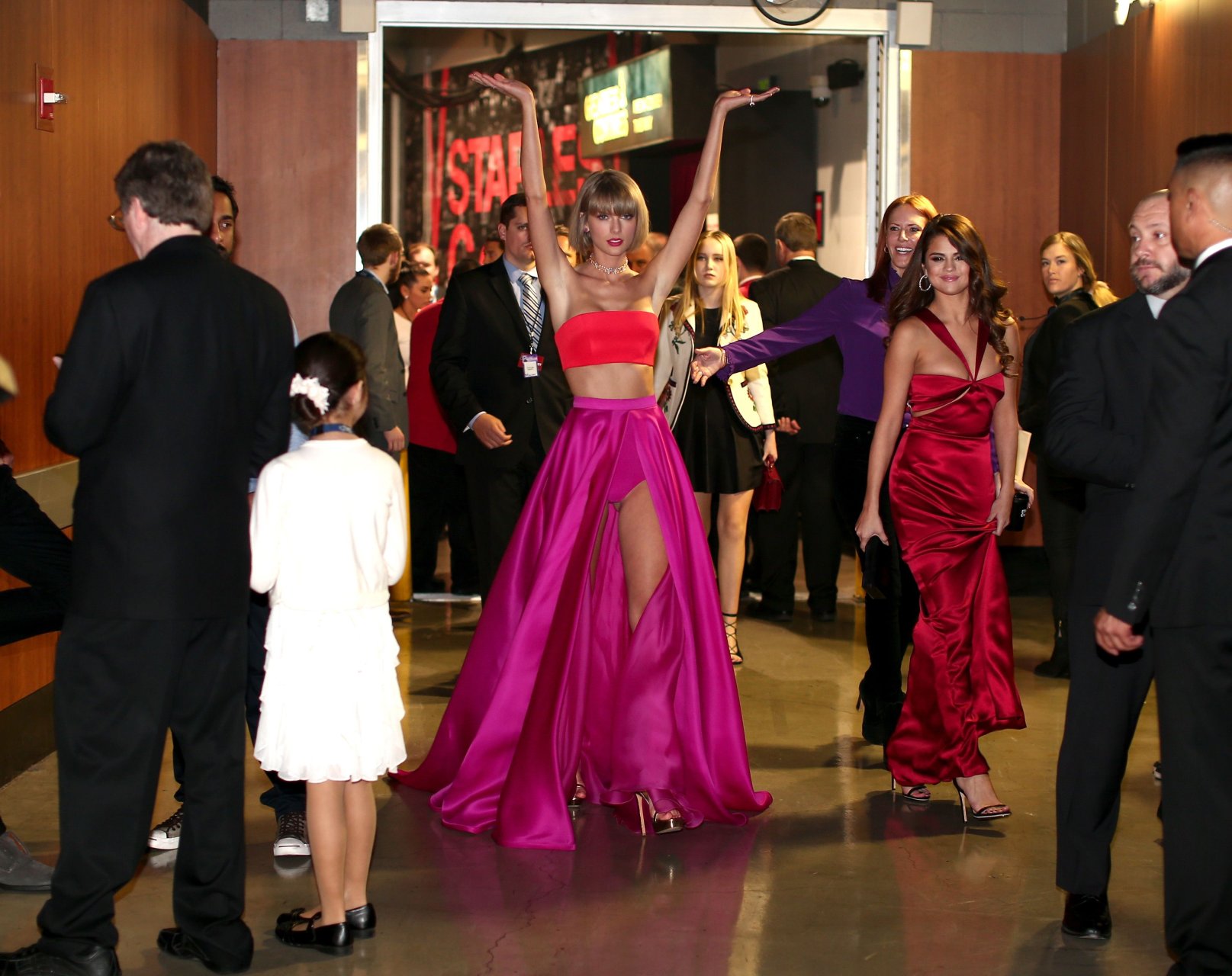 Селена выглядит отлично, наконец-то она выглядит взрослой. Тейлор Свифт высокая и стройная, ей стоит стать баскетболисткой и перестать петь.
