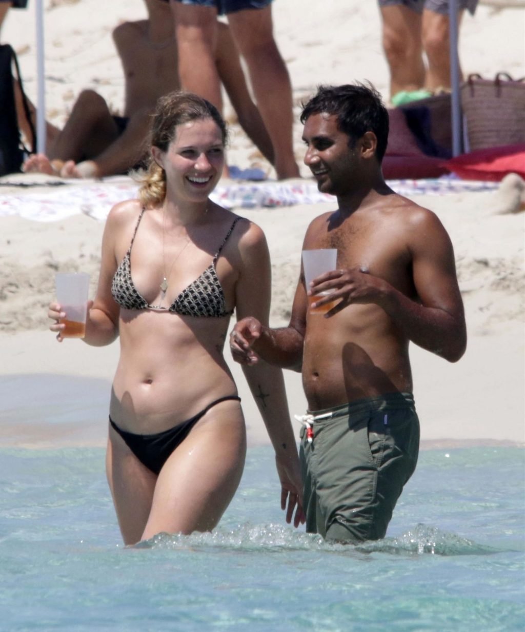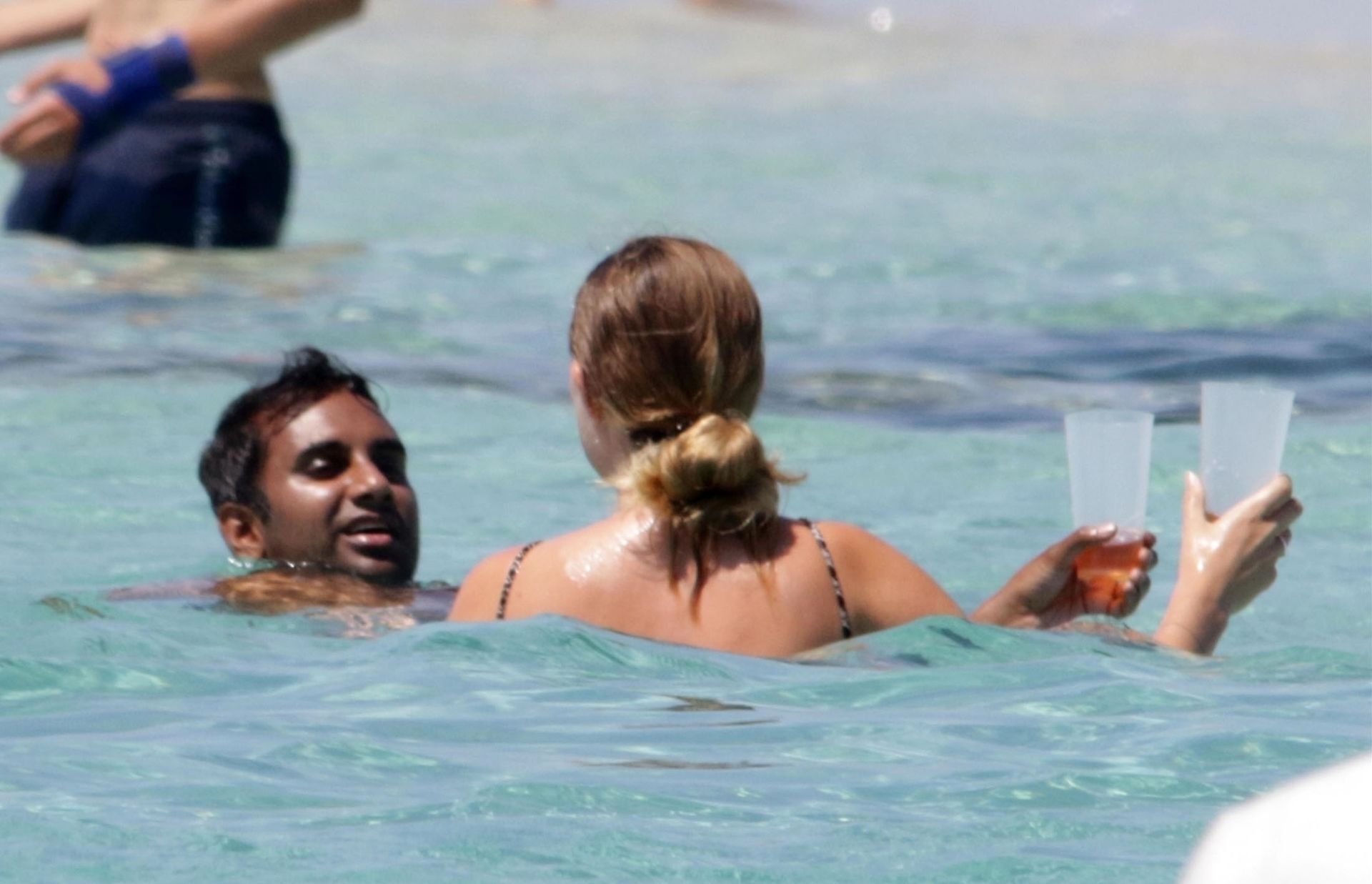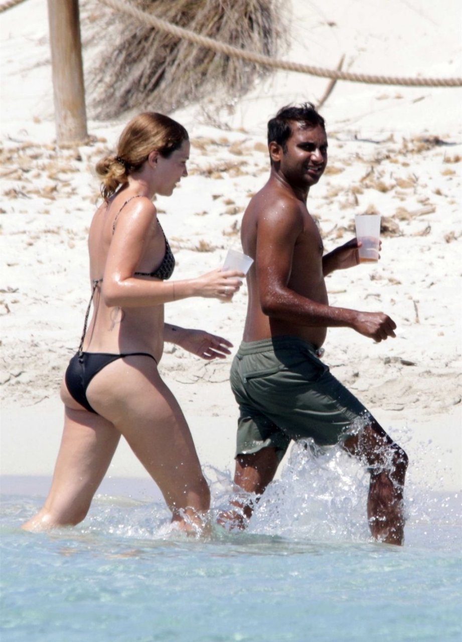 Здесь мы видим Азиза и его девушку Серену Сков Кэмпбелл, проявляющих публичную нежность на песчаных пляжах и в море, где пара расслаблялась, наслаждалась поцелуями и объятиями в воде, а Азиз фотографировал Серену на пляже.