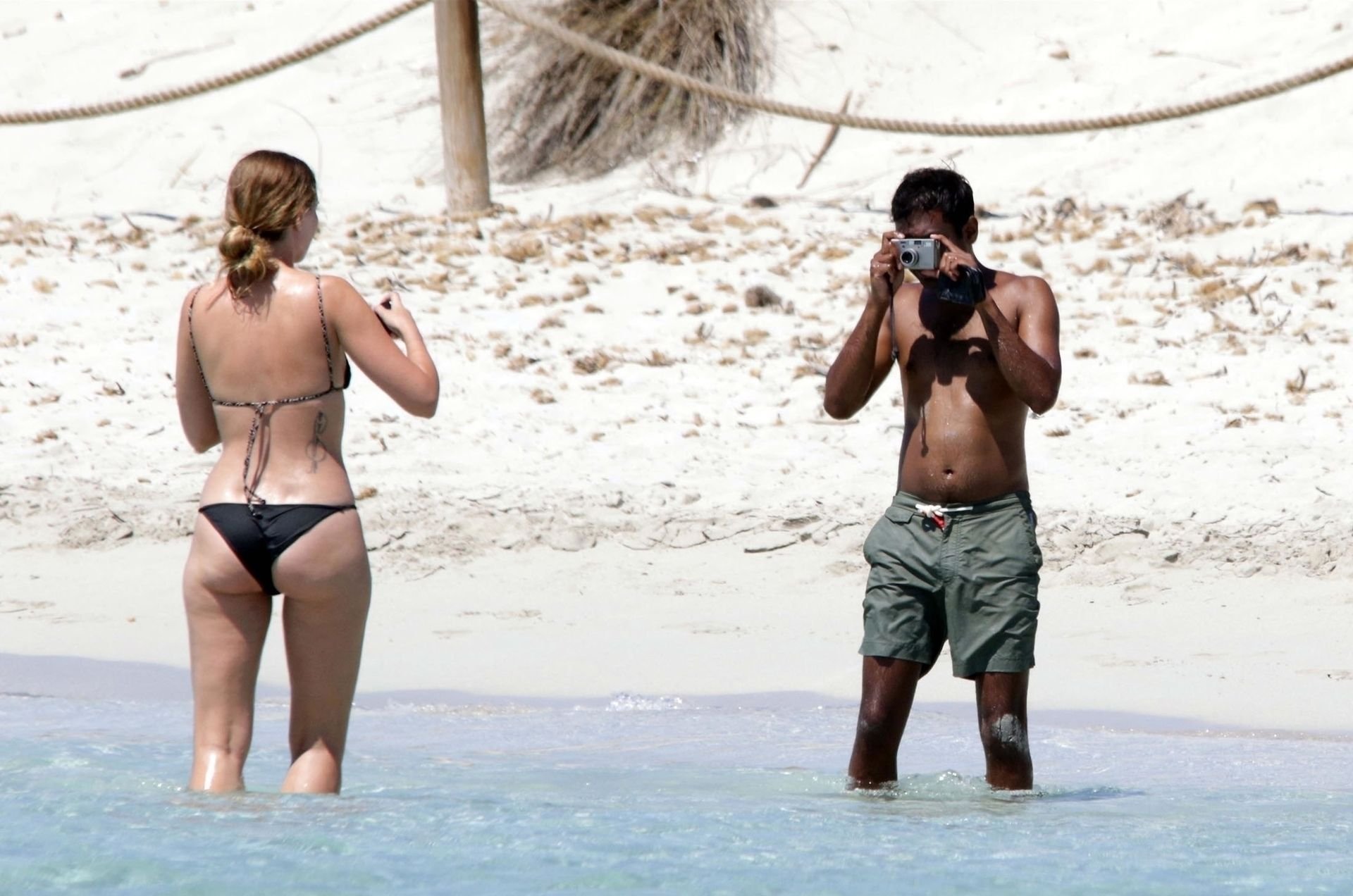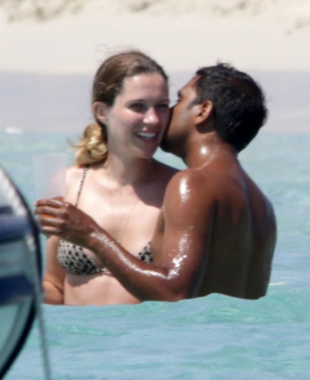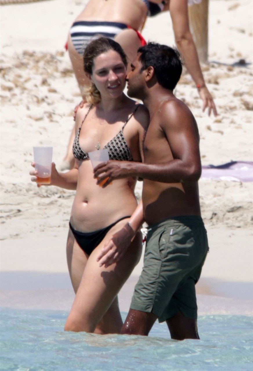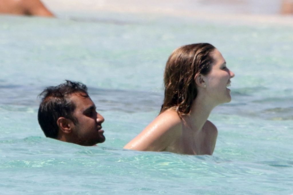 Здесь мы видим Азиза и его девушку Серену Сков Кэмпбелл, проявляющих публичную нежность на песчаных пляжах и в море, где пара расслаблялась, наслаждалась поцелуями и объятиями в воде, а Азиз фотографировал Серену на пляже.