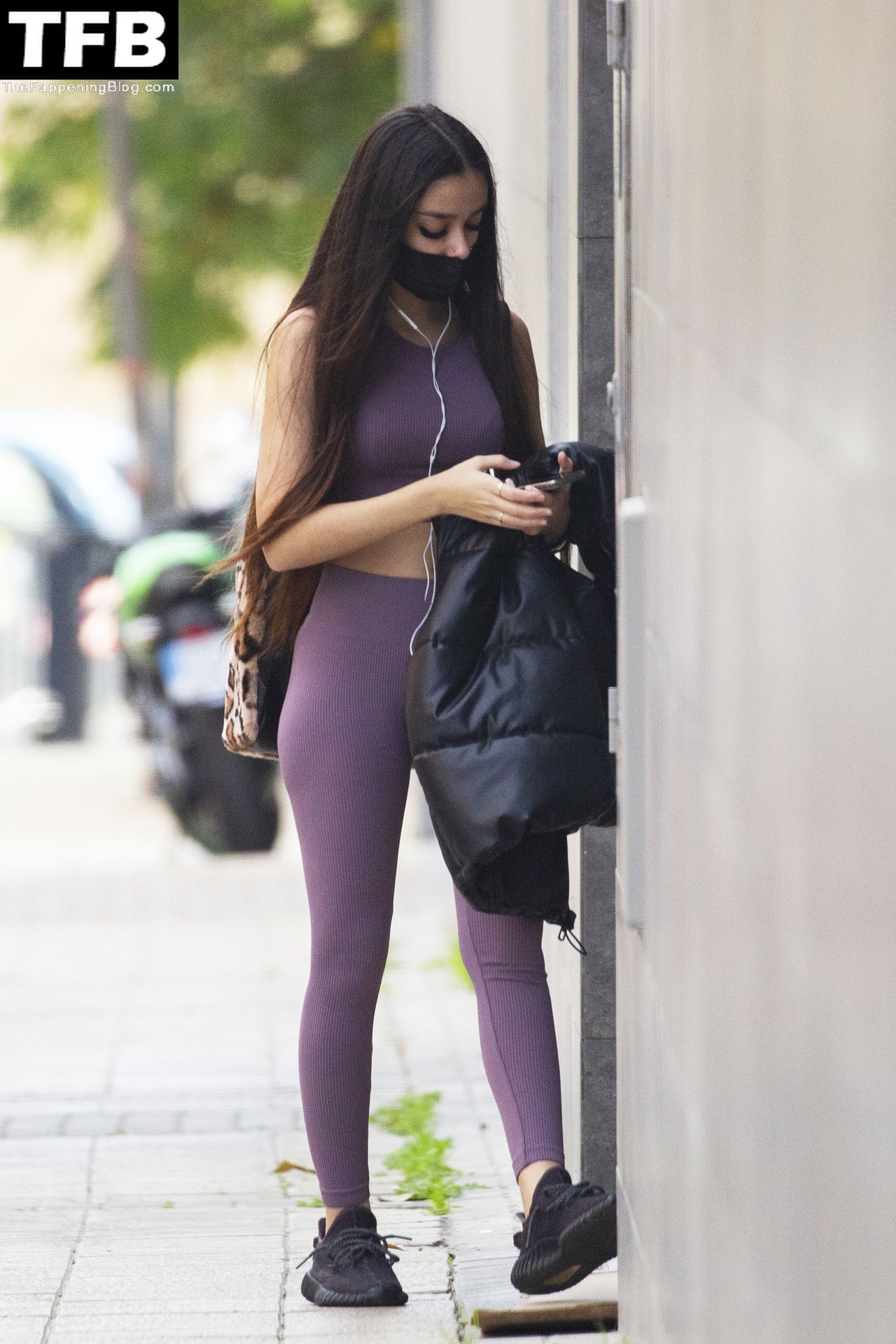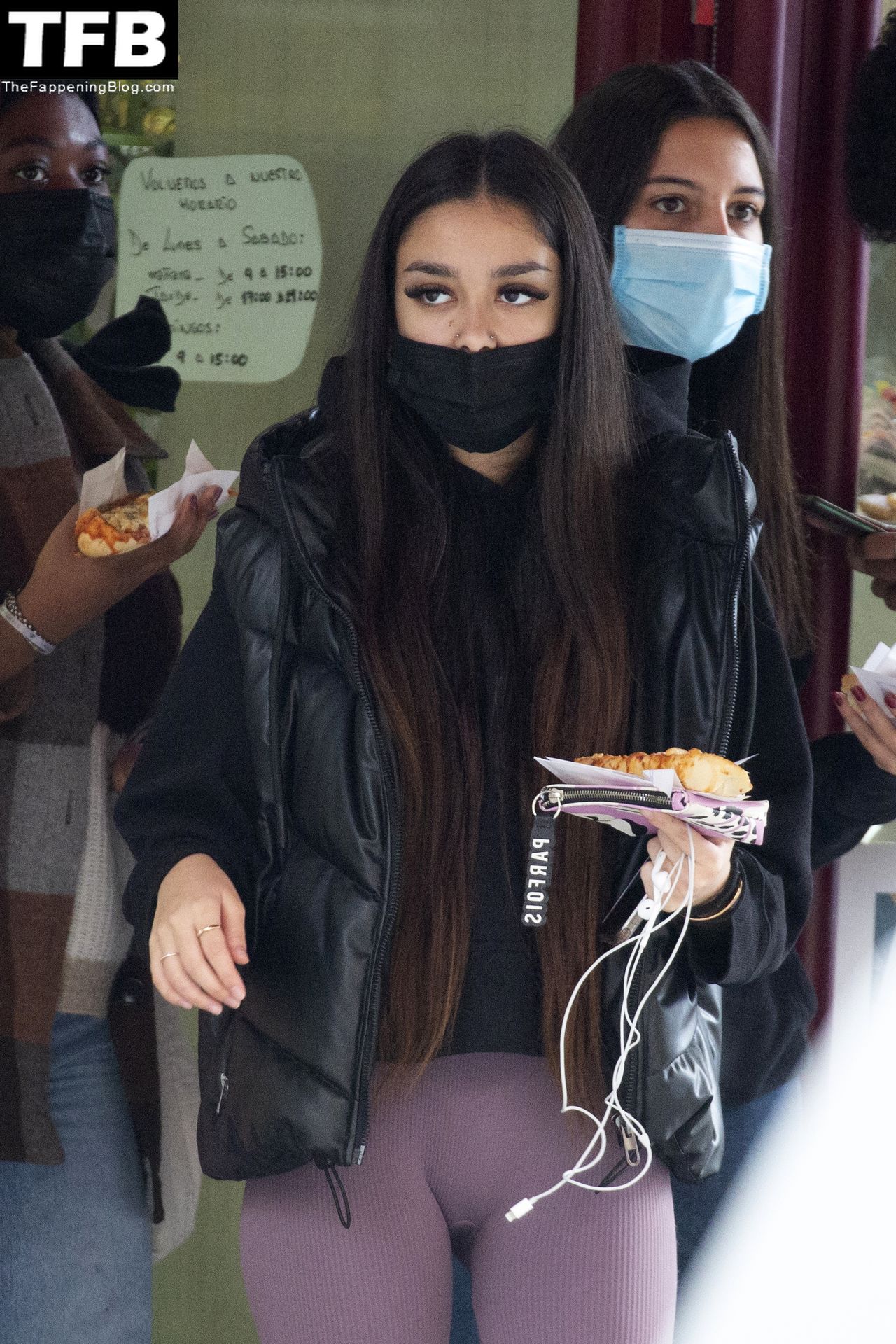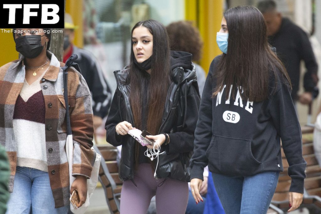 Модель Хулия Ханейро (18) выглядит горячо, когда она выходит из пекарни со своими одноклассниками в Мадриде, 20.10.2021.