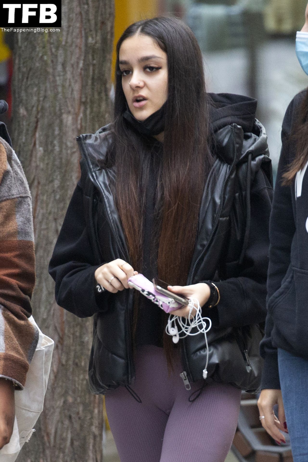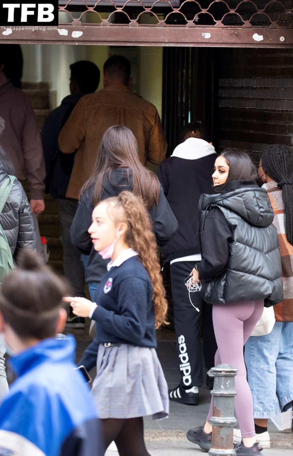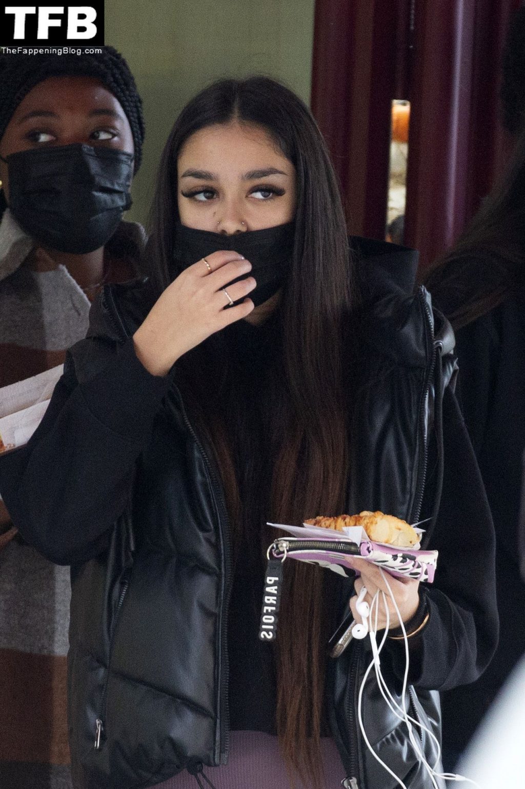 Модель Хулия Ханейро (18) выглядит горячо, когда она выходит из пекарни со своими одноклассниками в Мадриде, 20.10.2021.