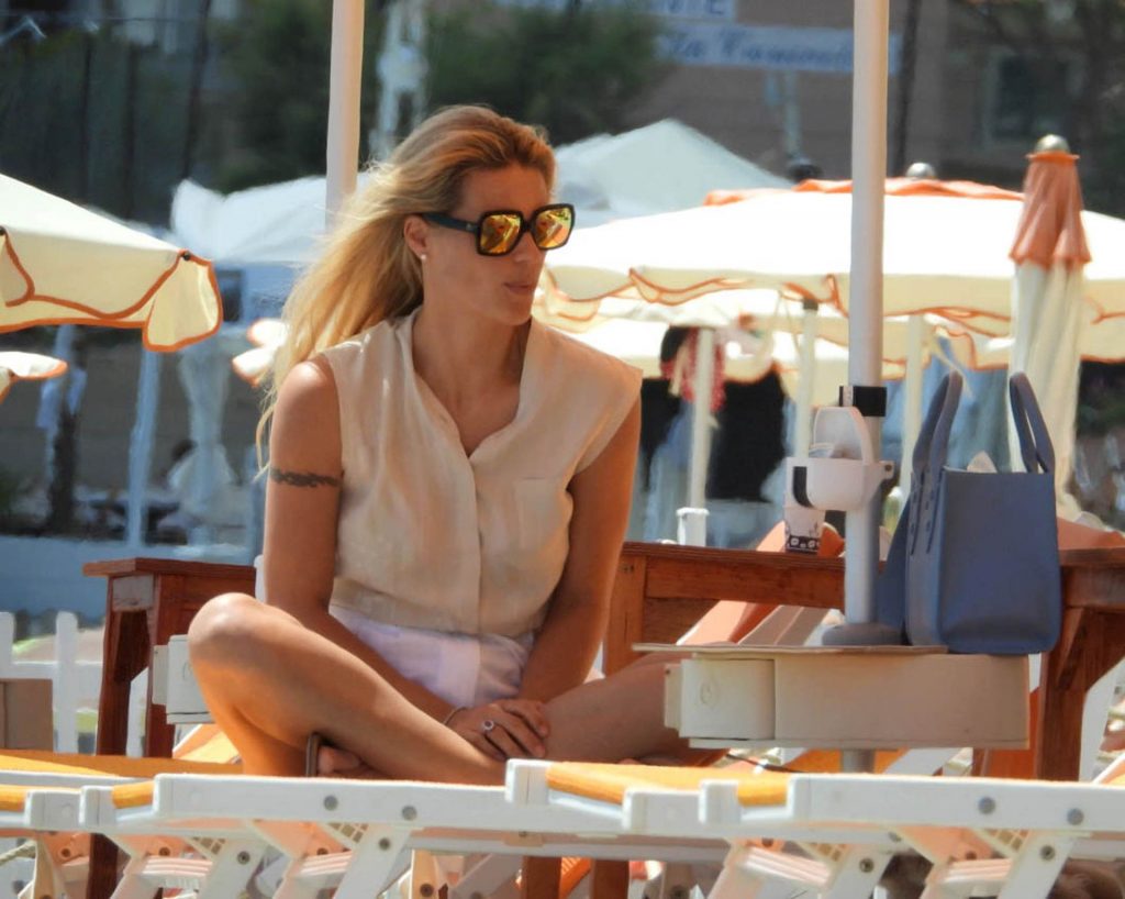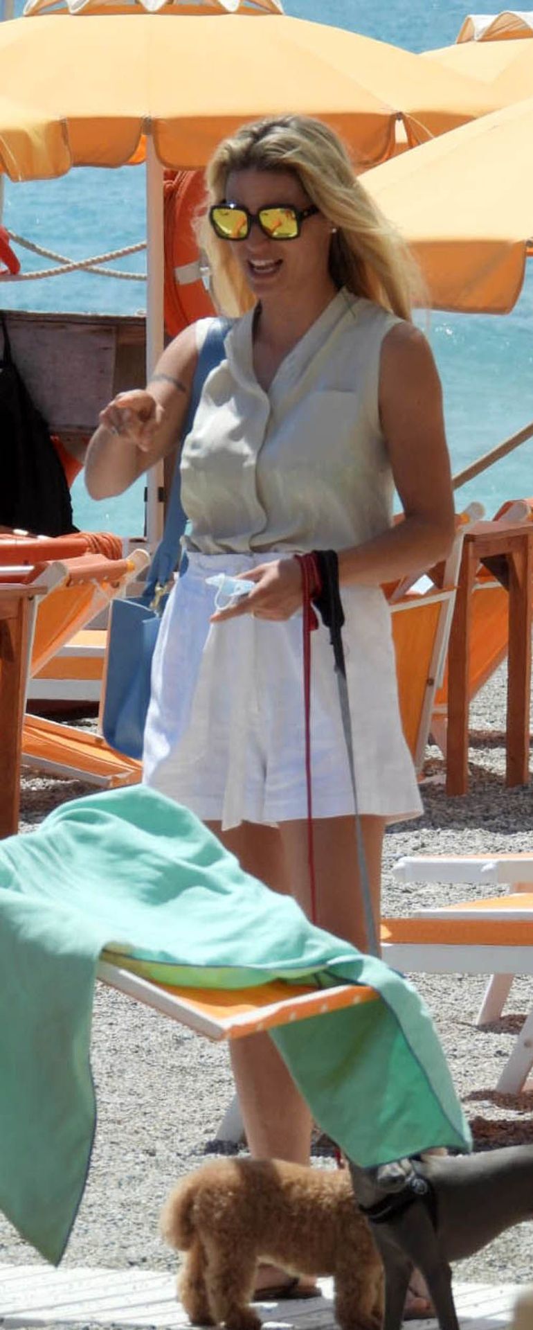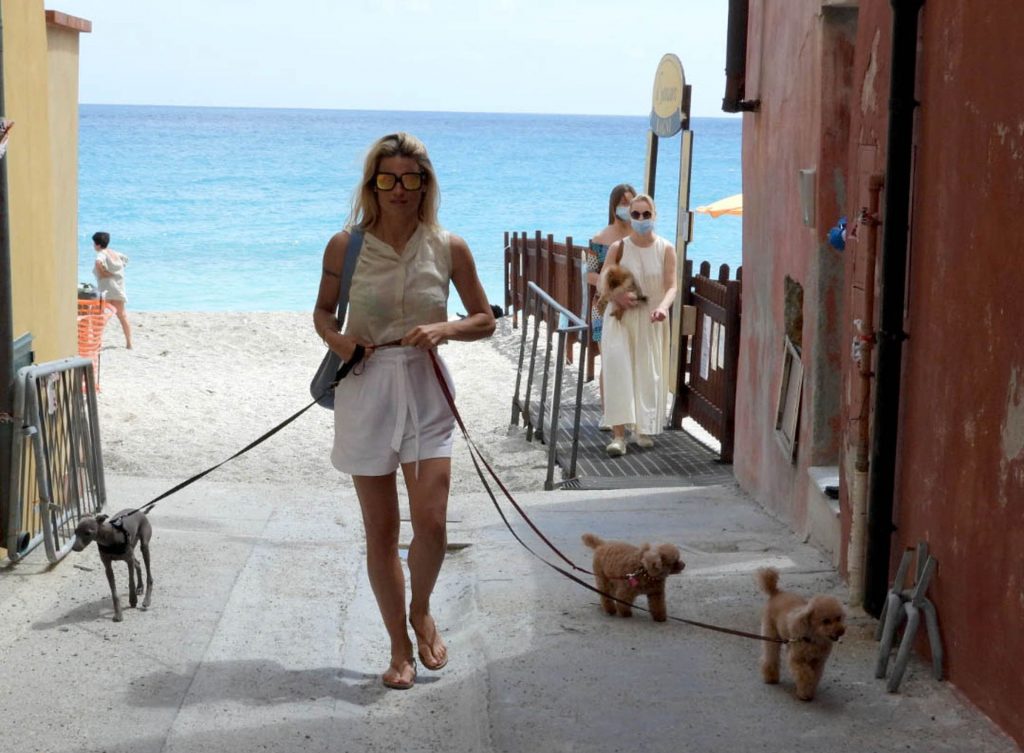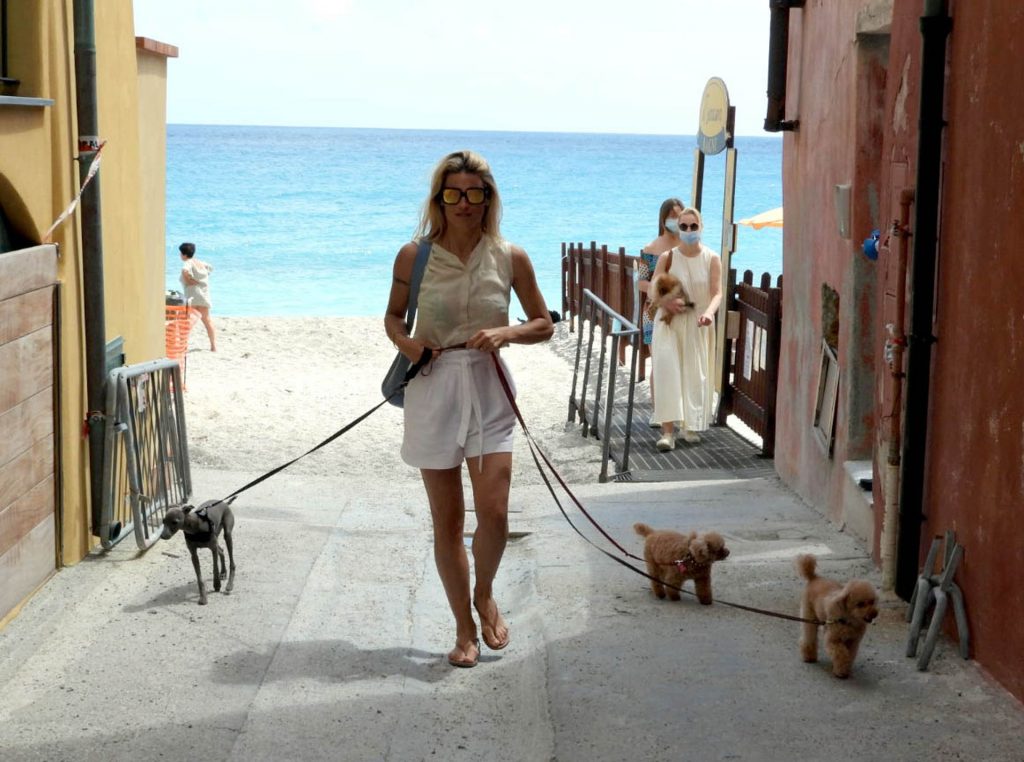 Сексуальная Мишель Хунцикер наслаждается днем на пляже в Вариготти с дочерьми Соле и Селестой, а также их тремя собаками, 19.06.2020.