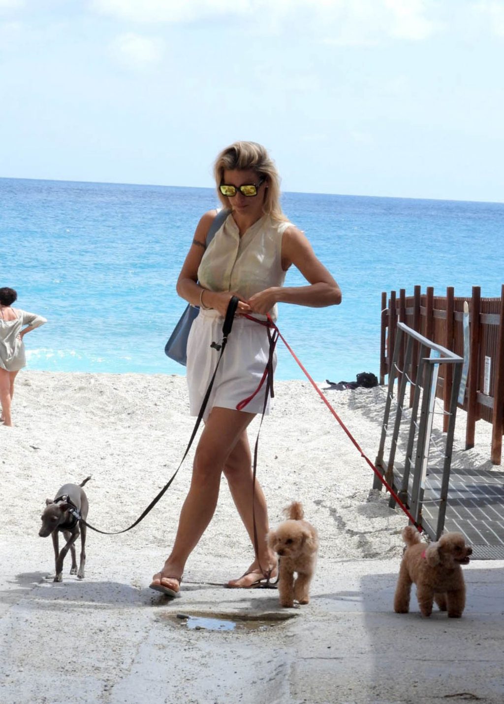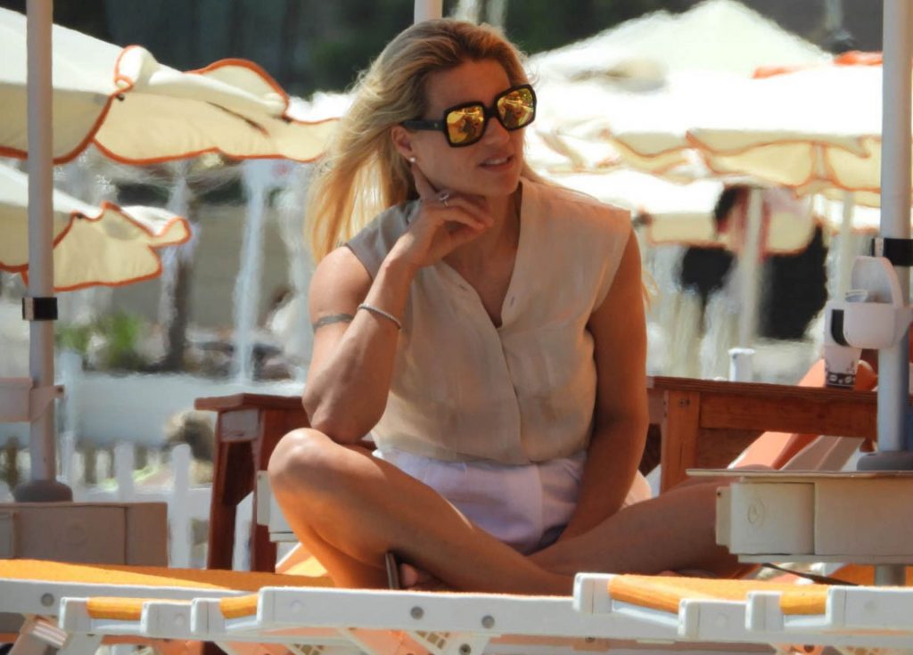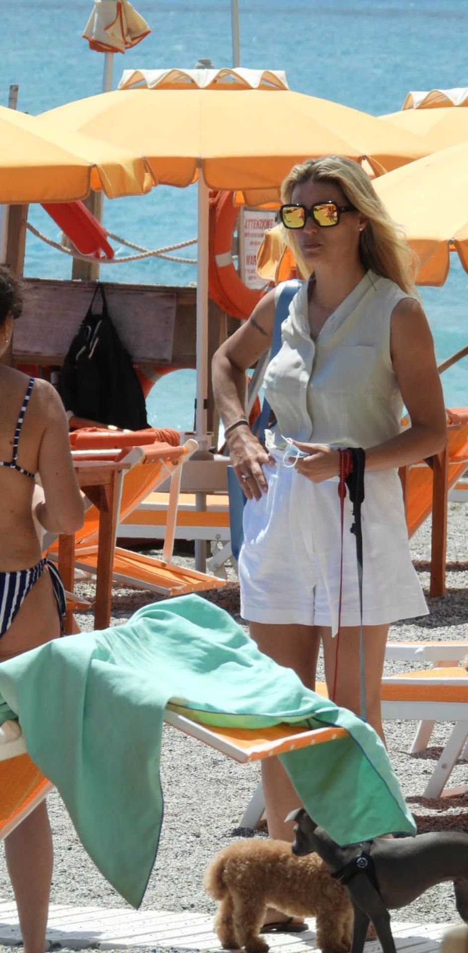 Сексуальная Мишель Хунцикер наслаждается днем на пляже в Вариготти с дочерьми Соле и Селестой, а также их тремя собаками, 19.06.2020.