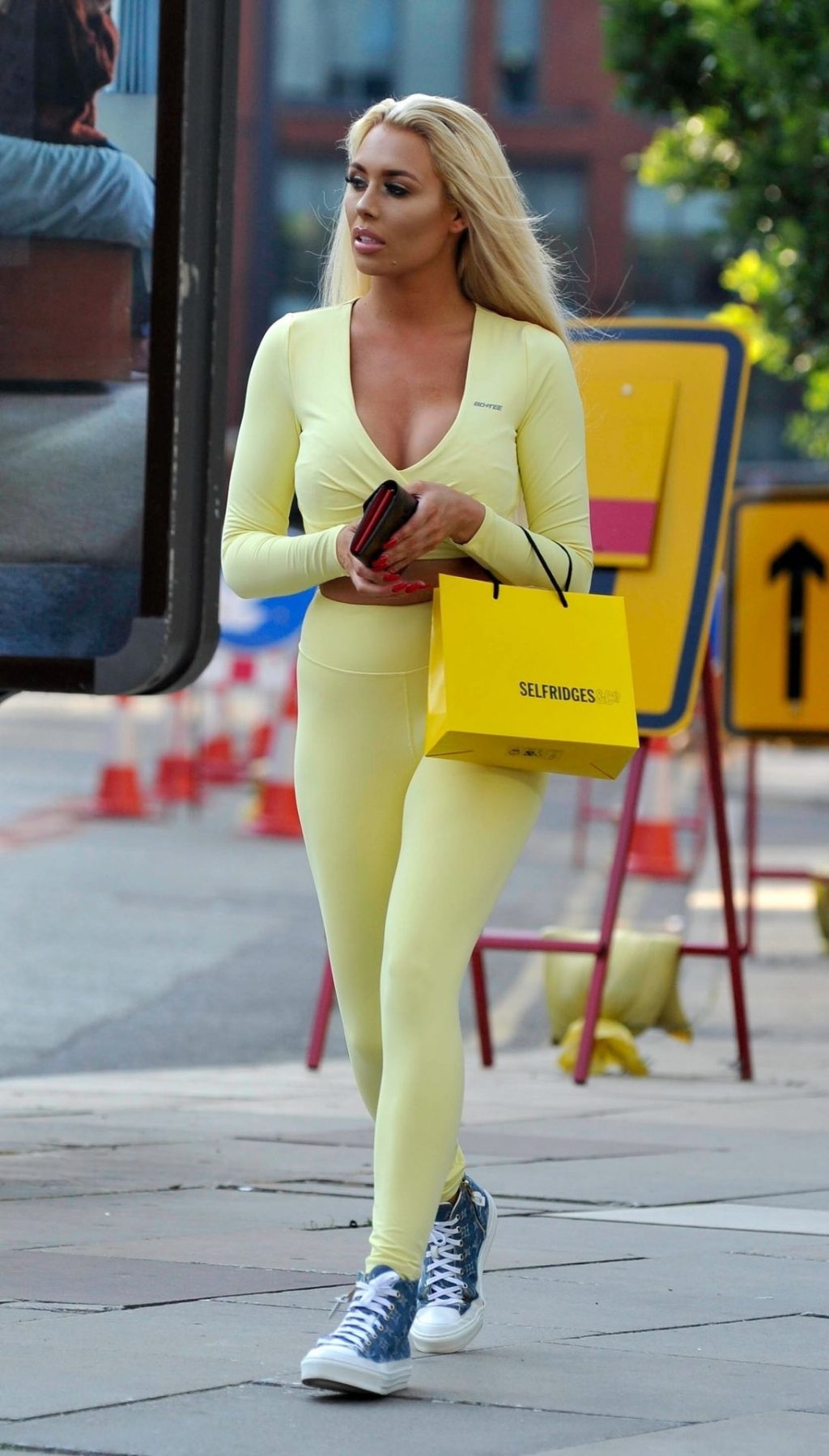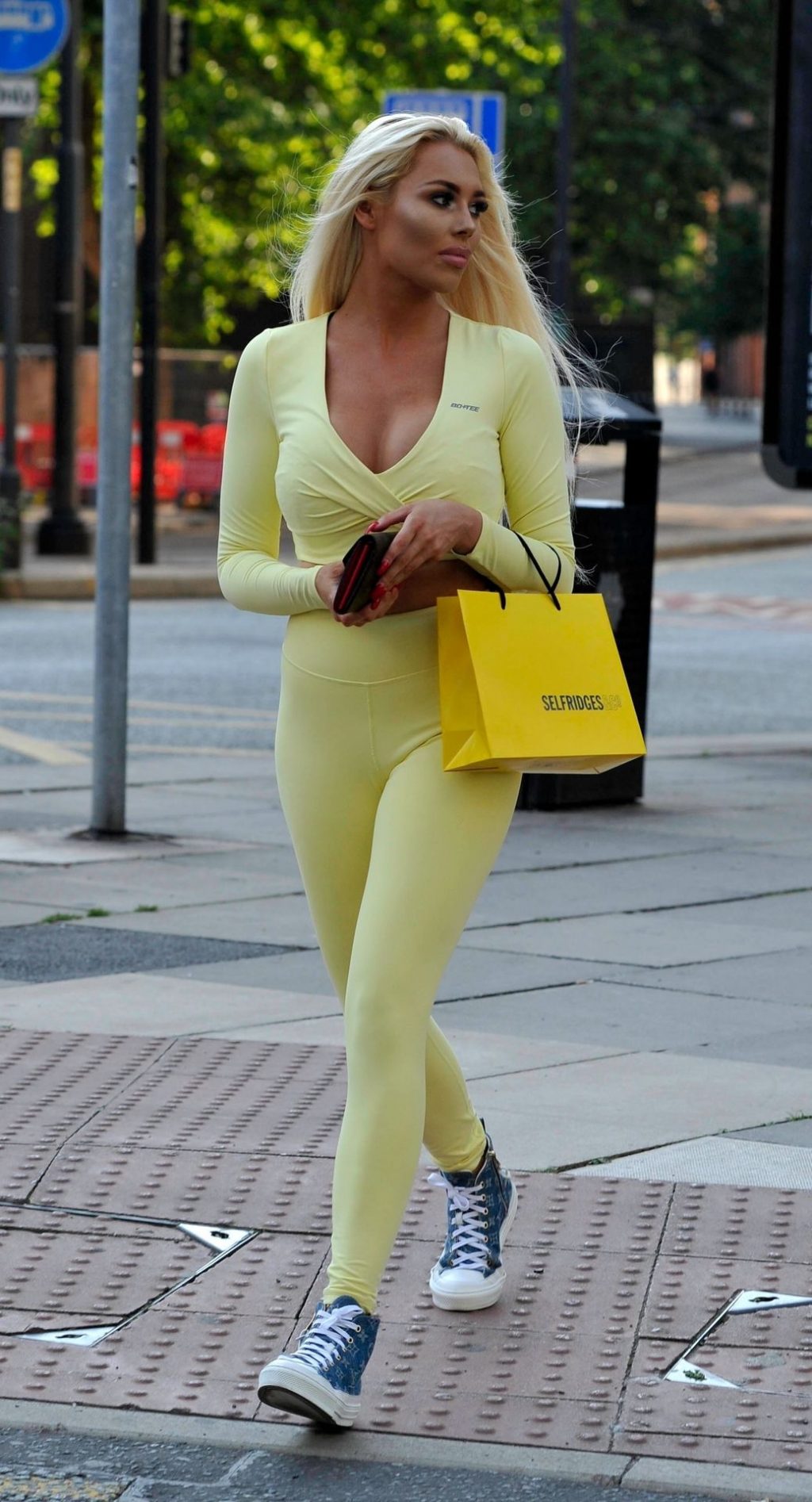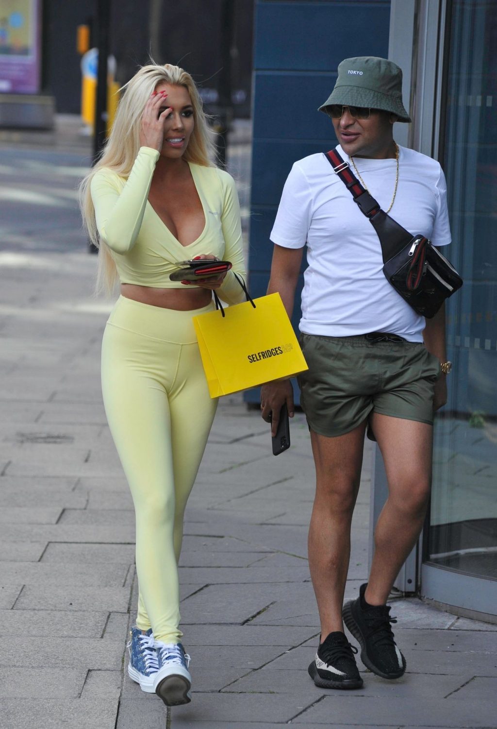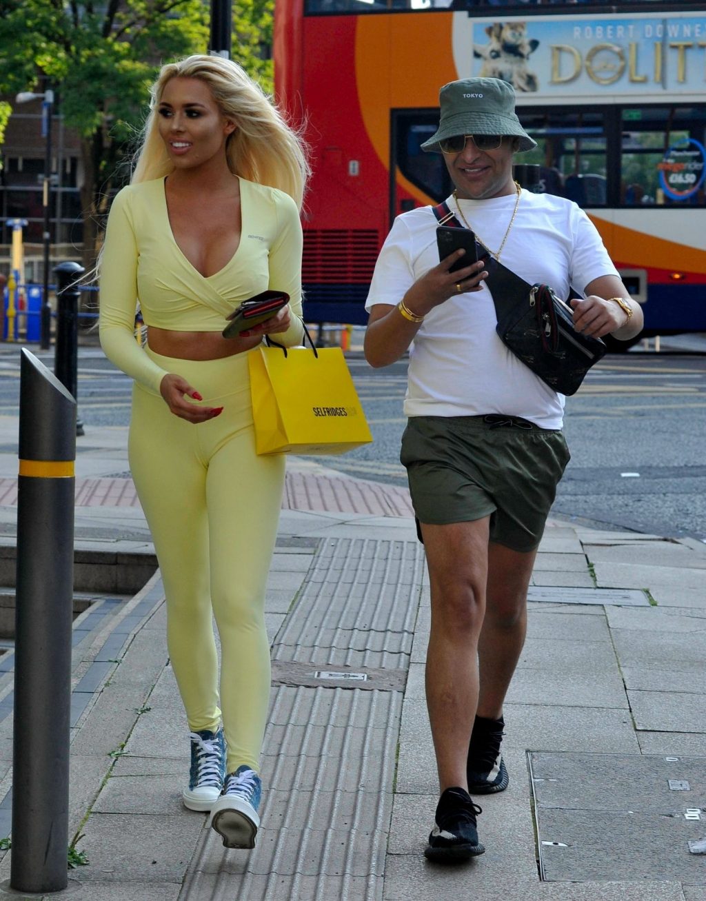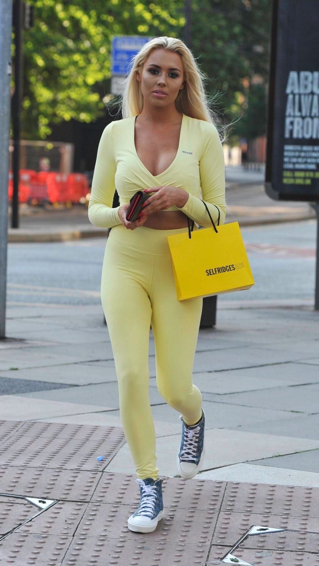 Любимица шоу Love Island Шэннен Рейли МакГрат замечена на прогулке в центре Манчестера, демонстрируя пышные формы в ярком желтом комбинезоне во время шопинга в Selfridges, 24.06.2020.