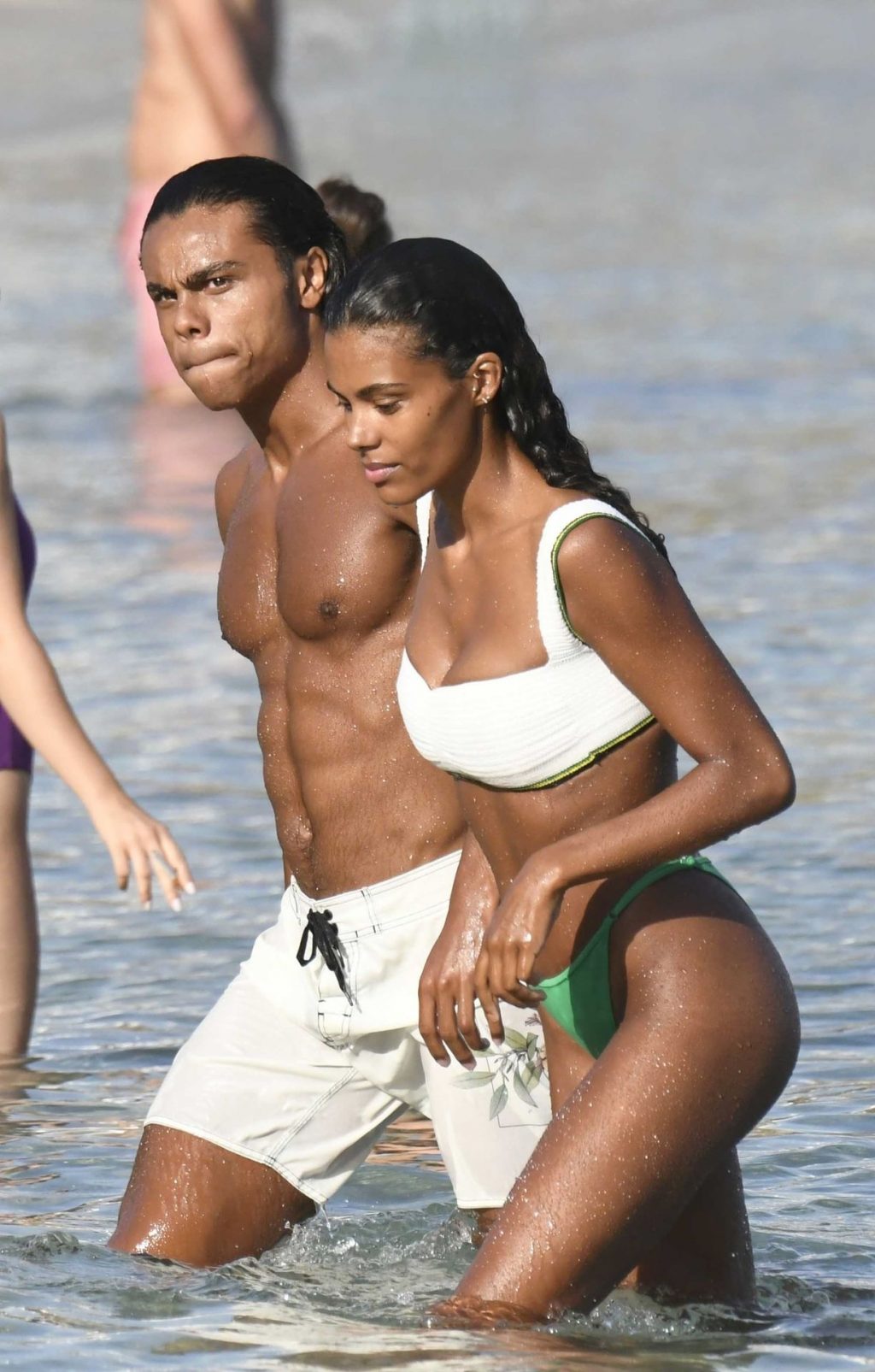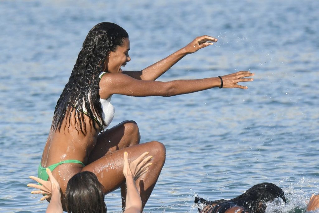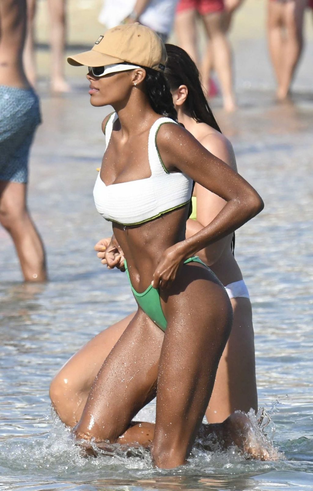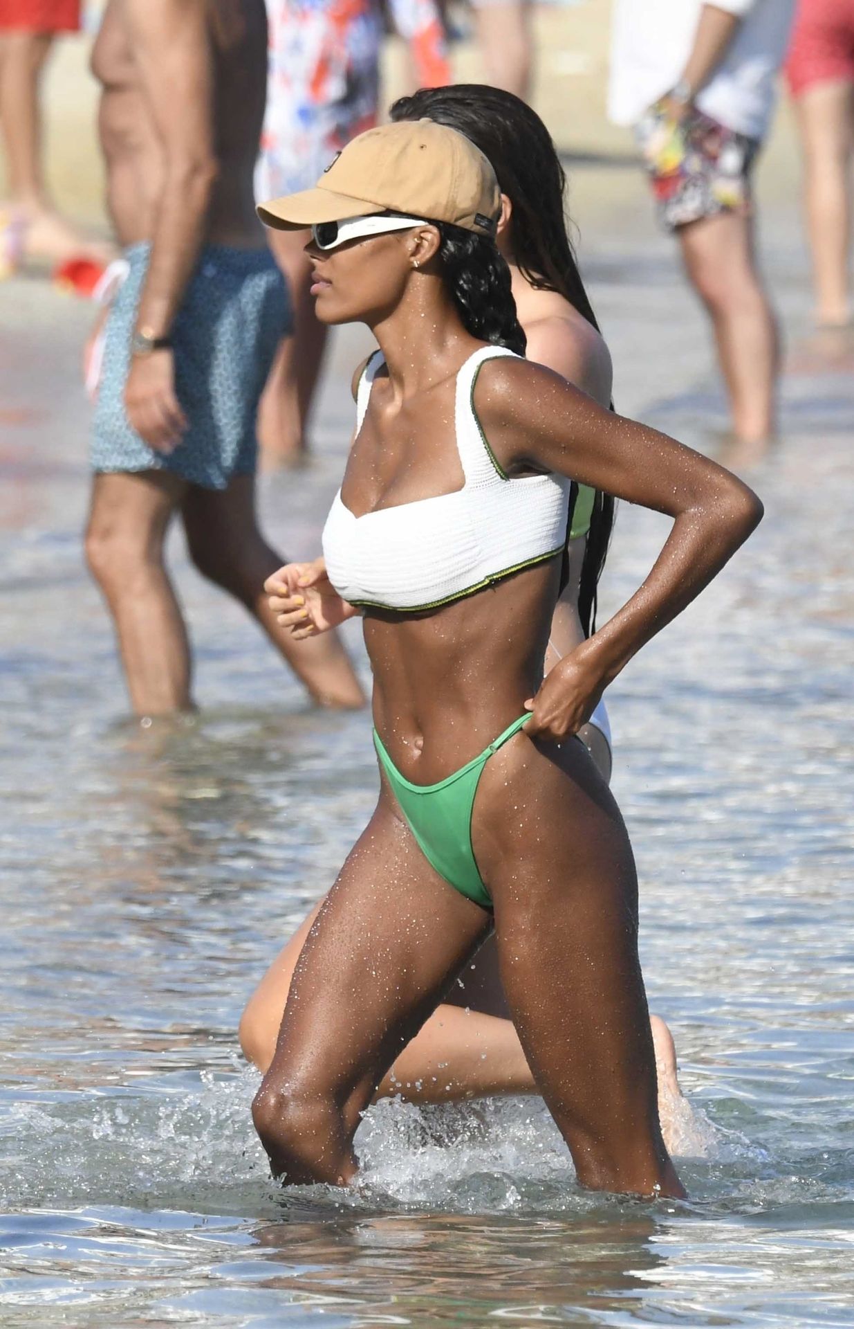 Подруга французского актера Винсента Касселя, французская модель Тина Кунаки, выходит на пляж в своих откровенных зеленых бикини, наслаждаясь греческим солнцем во время отпуска на острове Миконос, 08/06/2020.