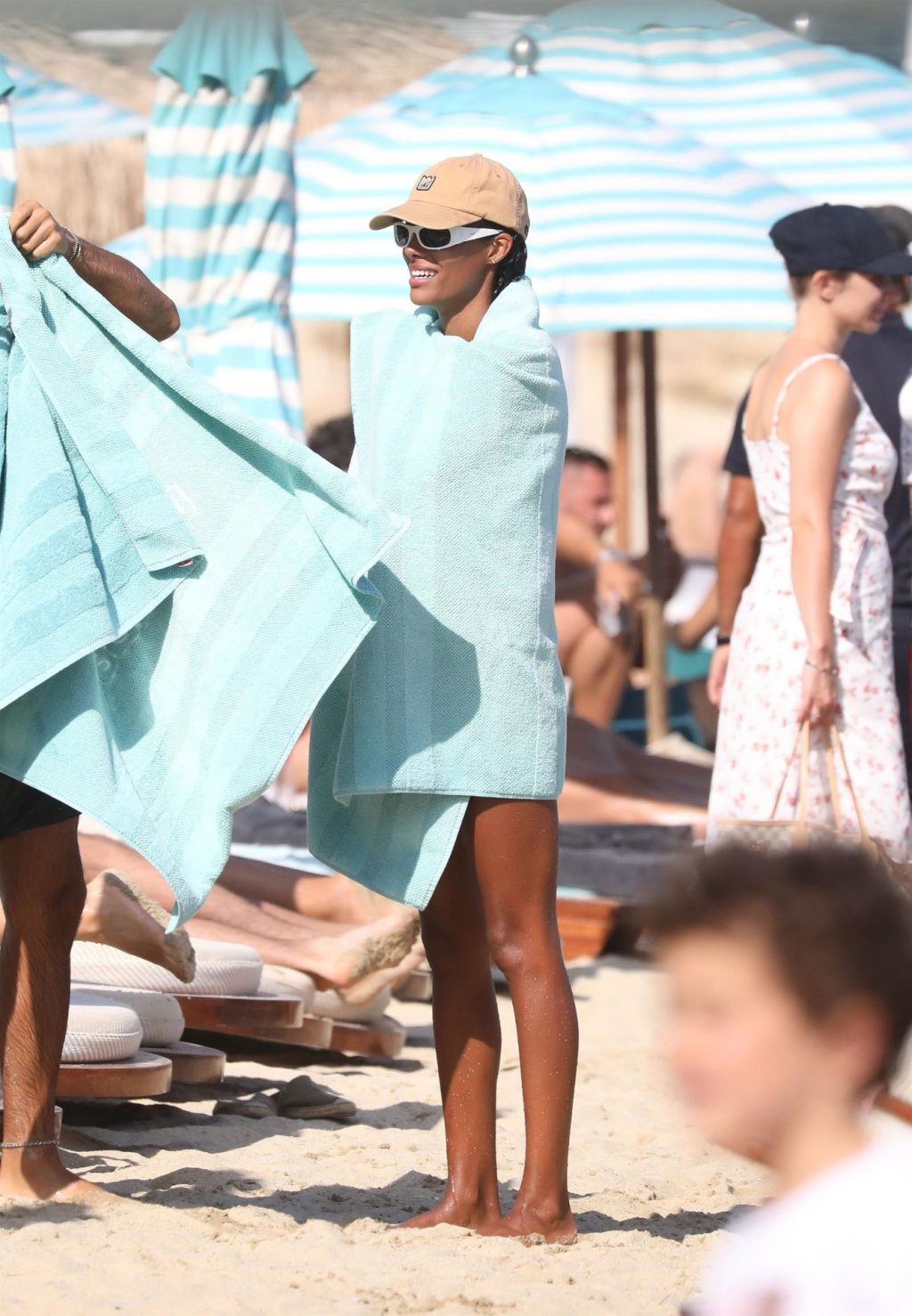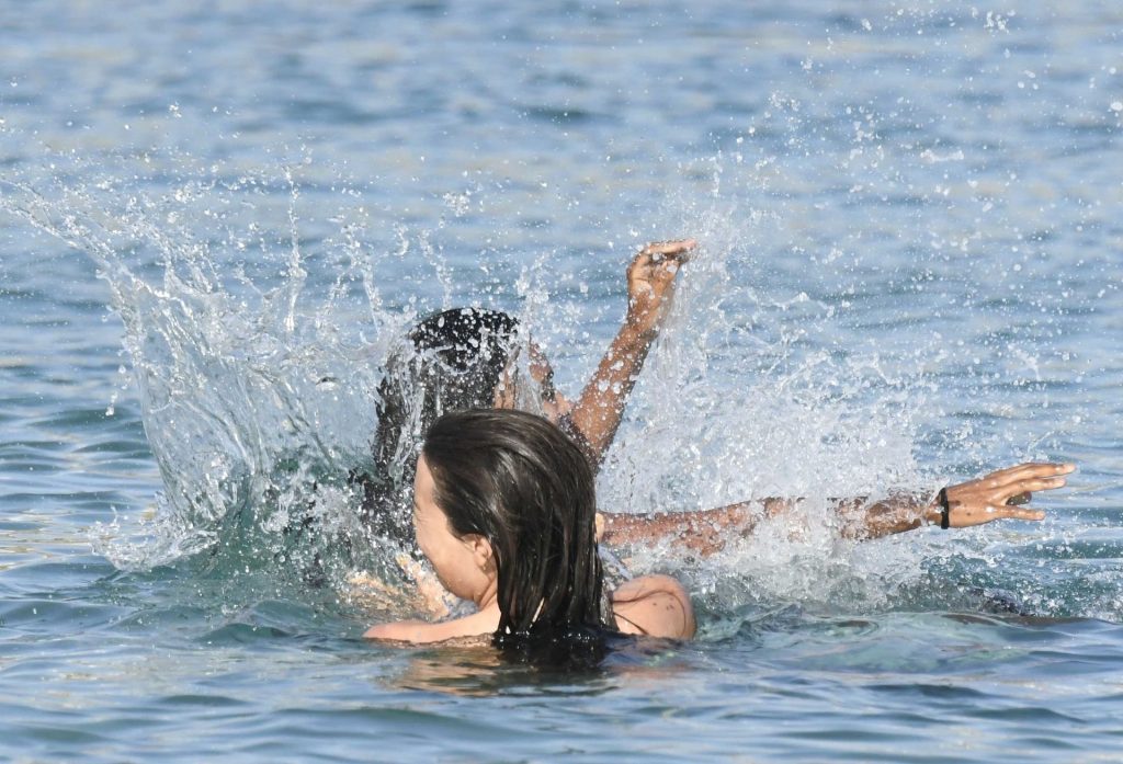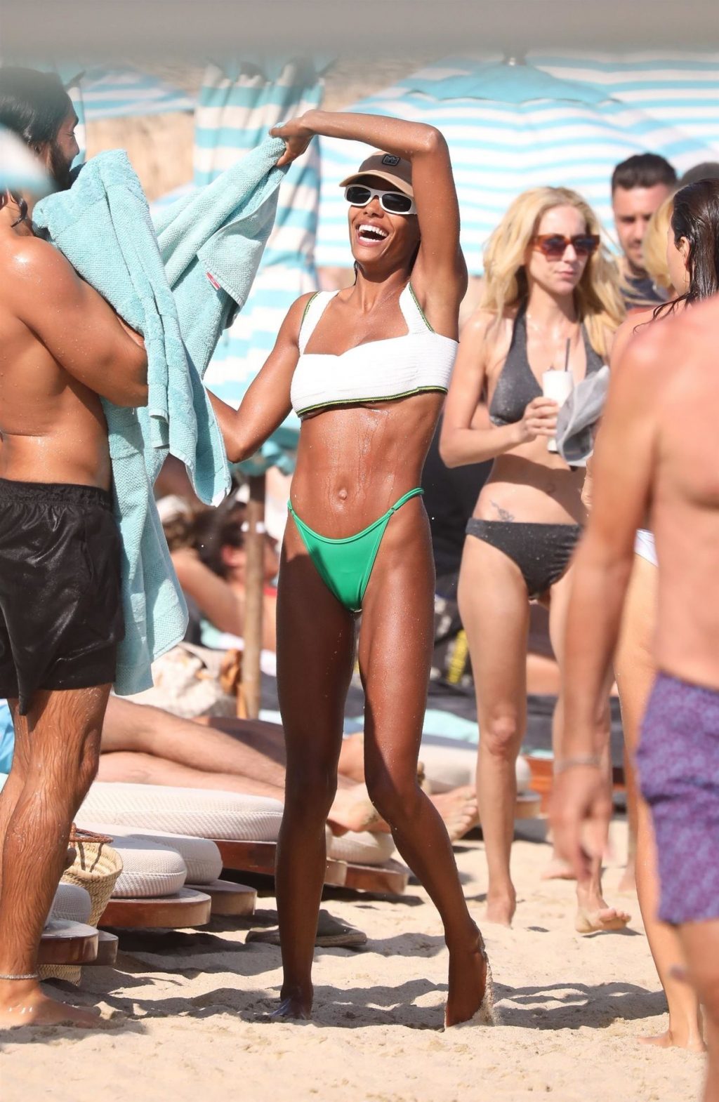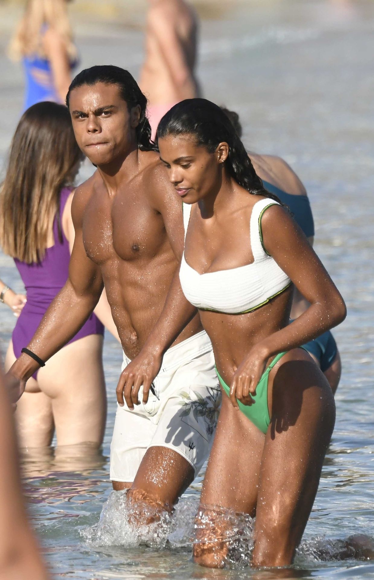 Подруга французского актера Винсента Касселя, французская модель Тина Кунаки, выходит на пляж в своих откровенных зеленых бикини, наслаждаясь греческим солнцем во время отпуска на острове Миконос, 08/06/2020.