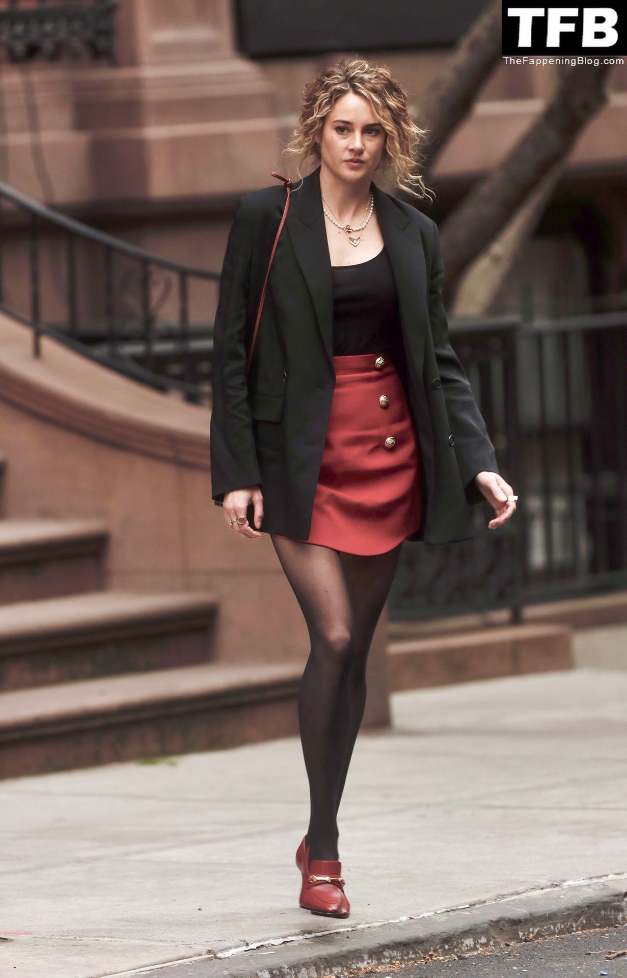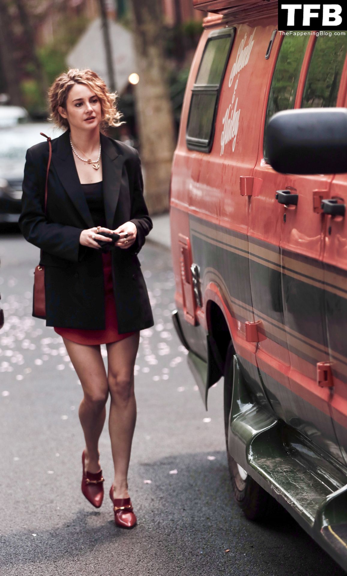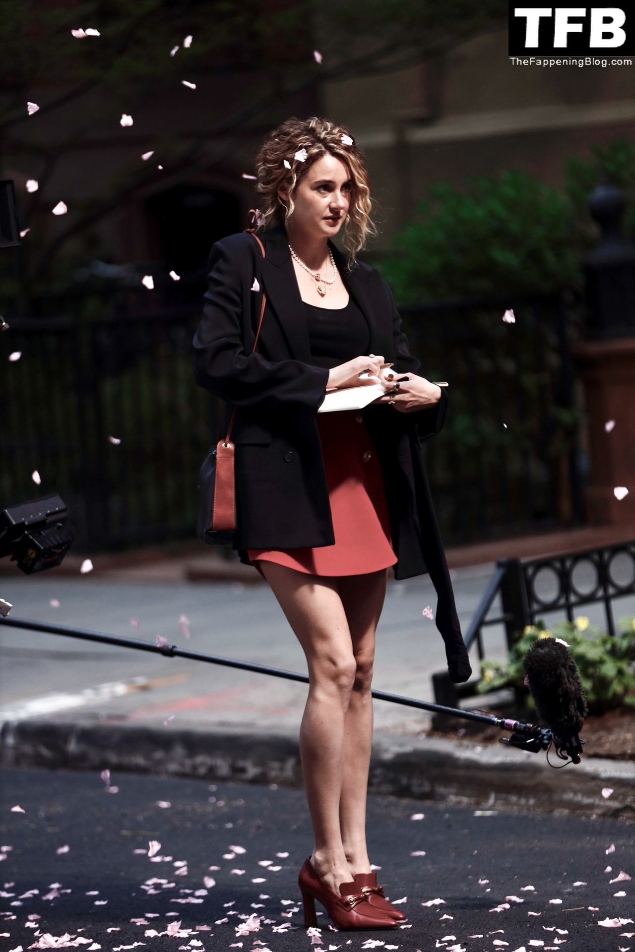 Актриса Шейлин Вудли запечатлена во время съемок телешоу «Три женщины» в Нью-Йорке, 25.04.2022.