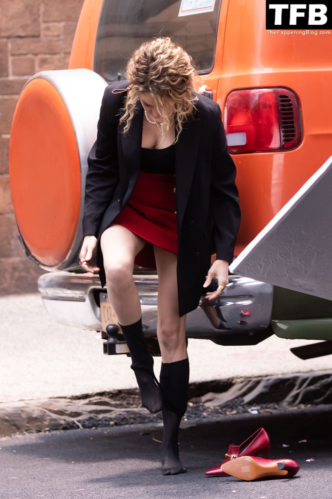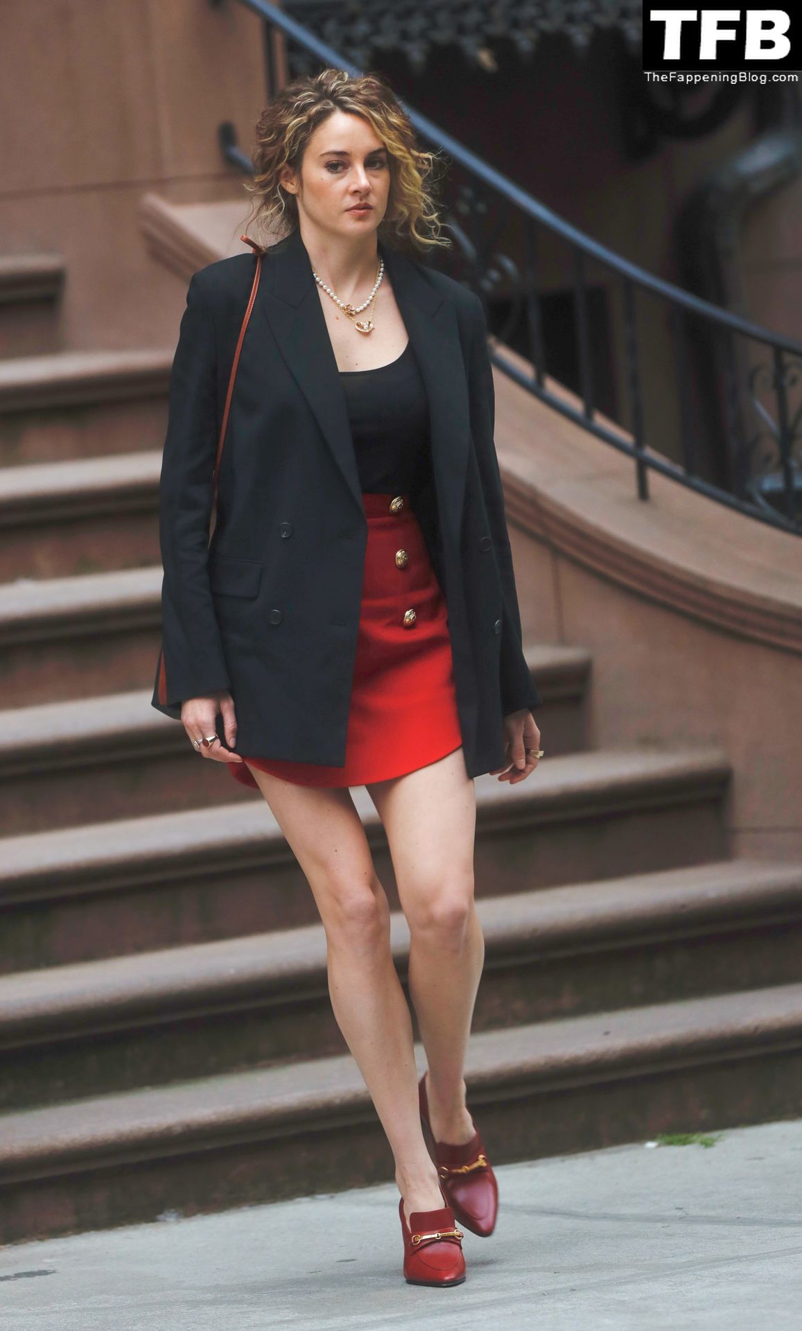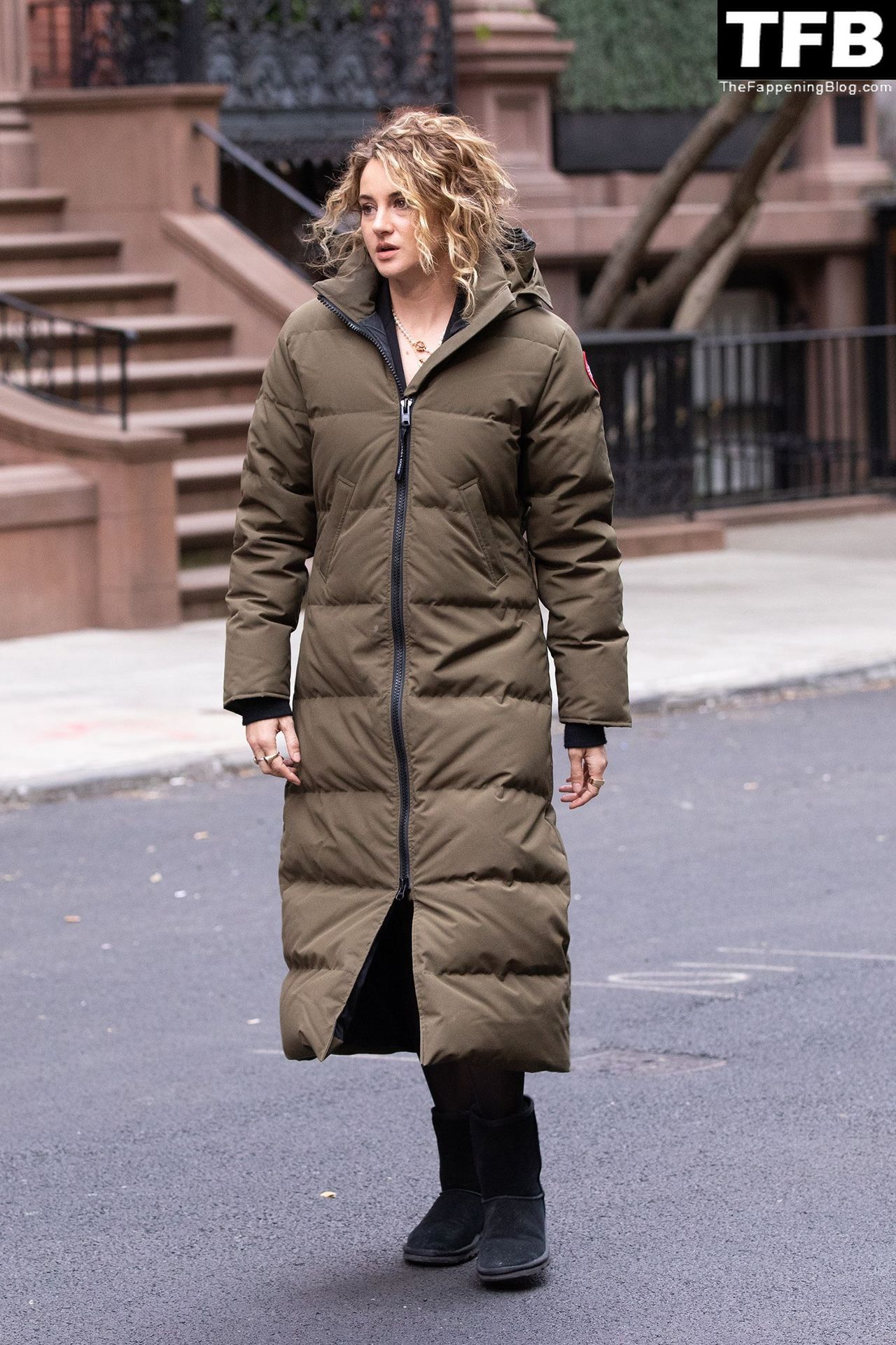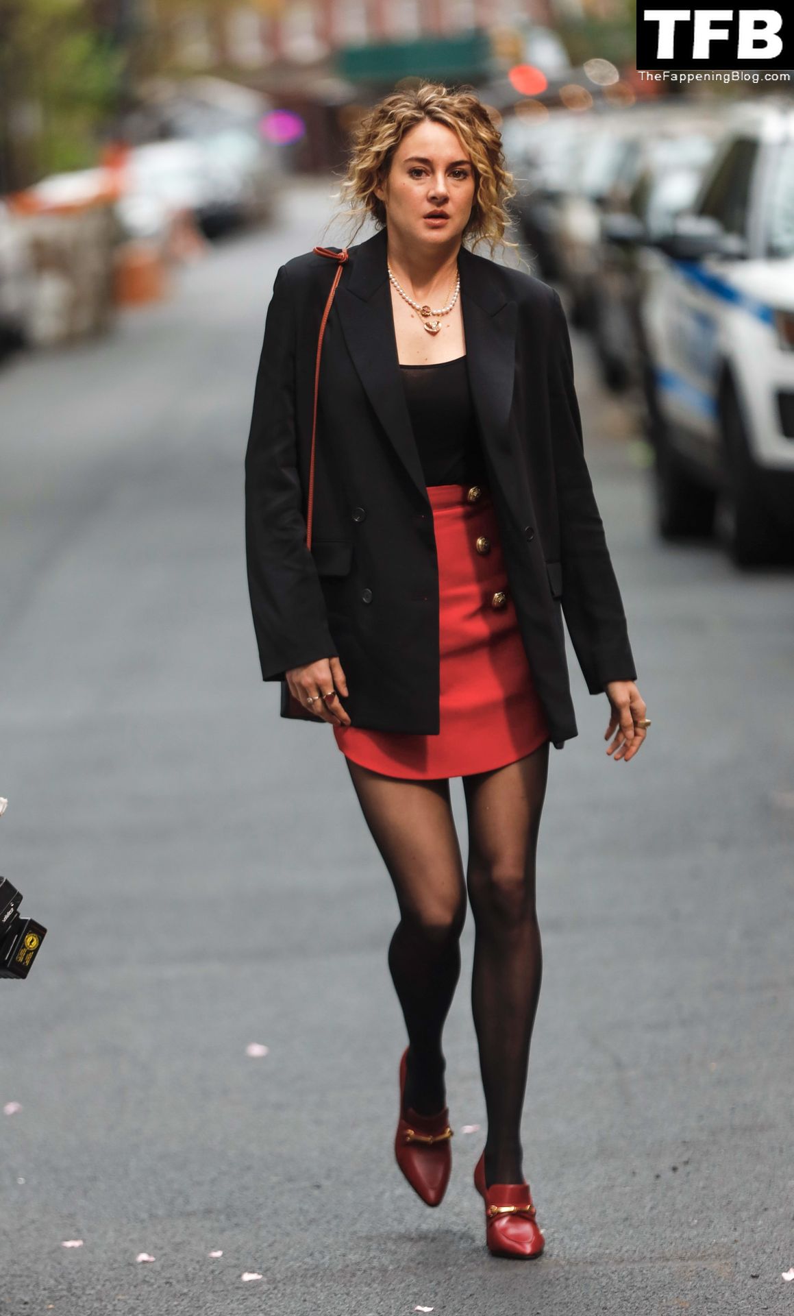 Актриса Шейлин Вудли запечатлена во время съемок телешоу «Три женщины» в Нью-Йорке, 25.04.2022.