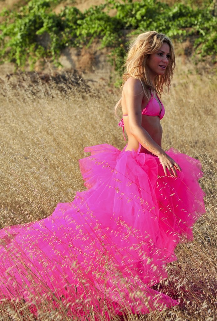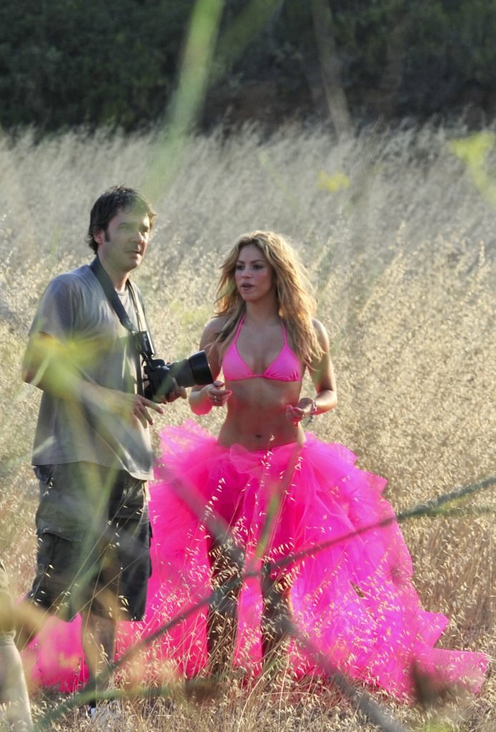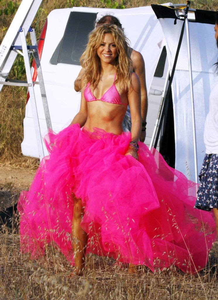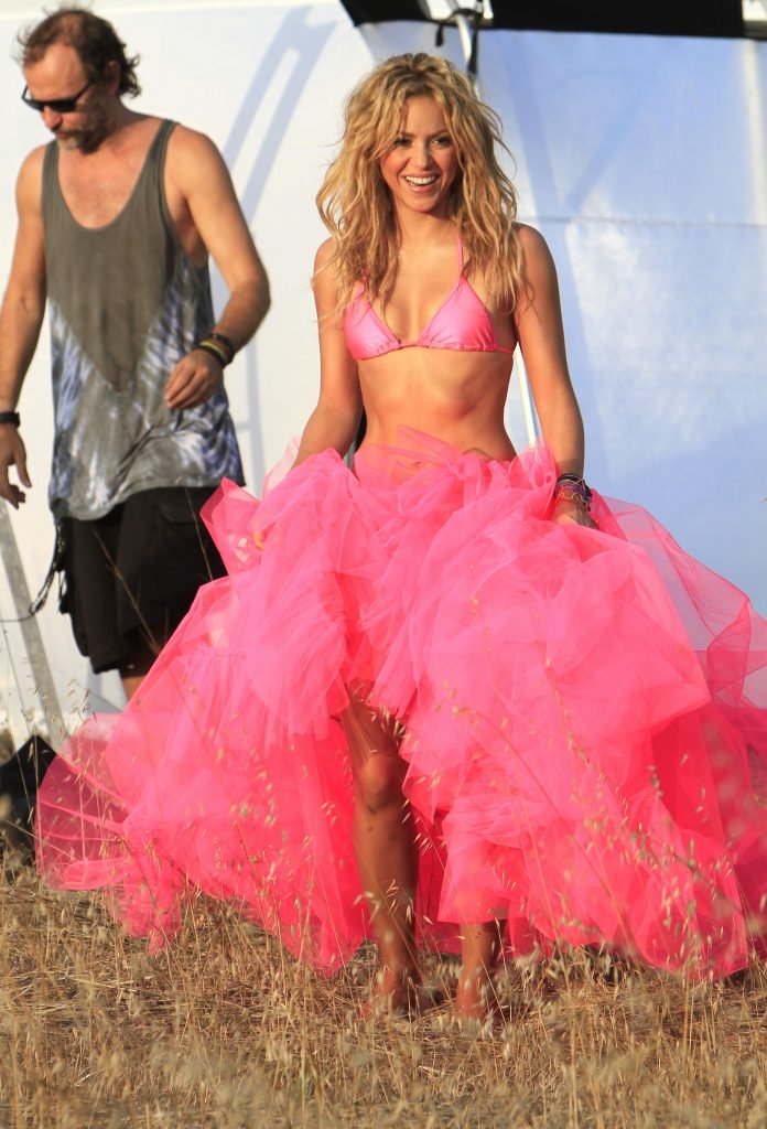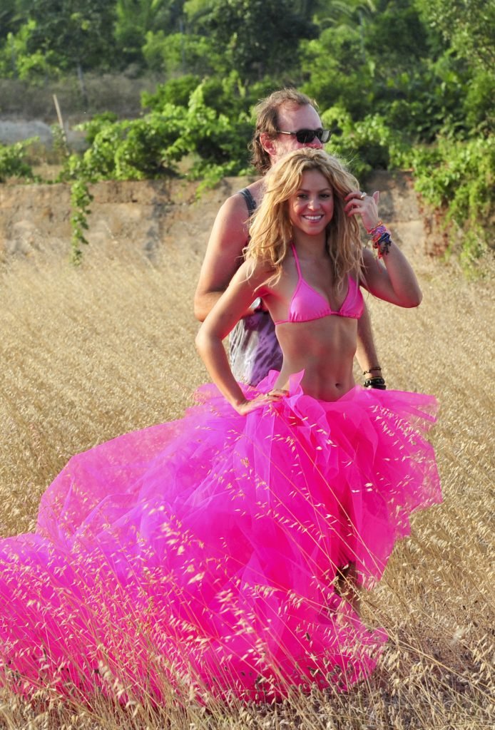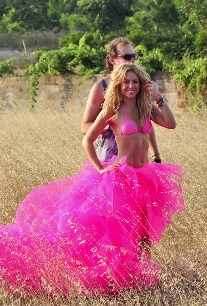 Шакира на фото в розовой юбке и топе-бикини во время сексуальной фотосессии на Ибице, Испания, 22.07.2010. Шакира Исабель Мебарак Риполл — колумбийская певица, автор песен, танцовщица, музыкальный продюсер. Родилась 2 февраля 1977 года.