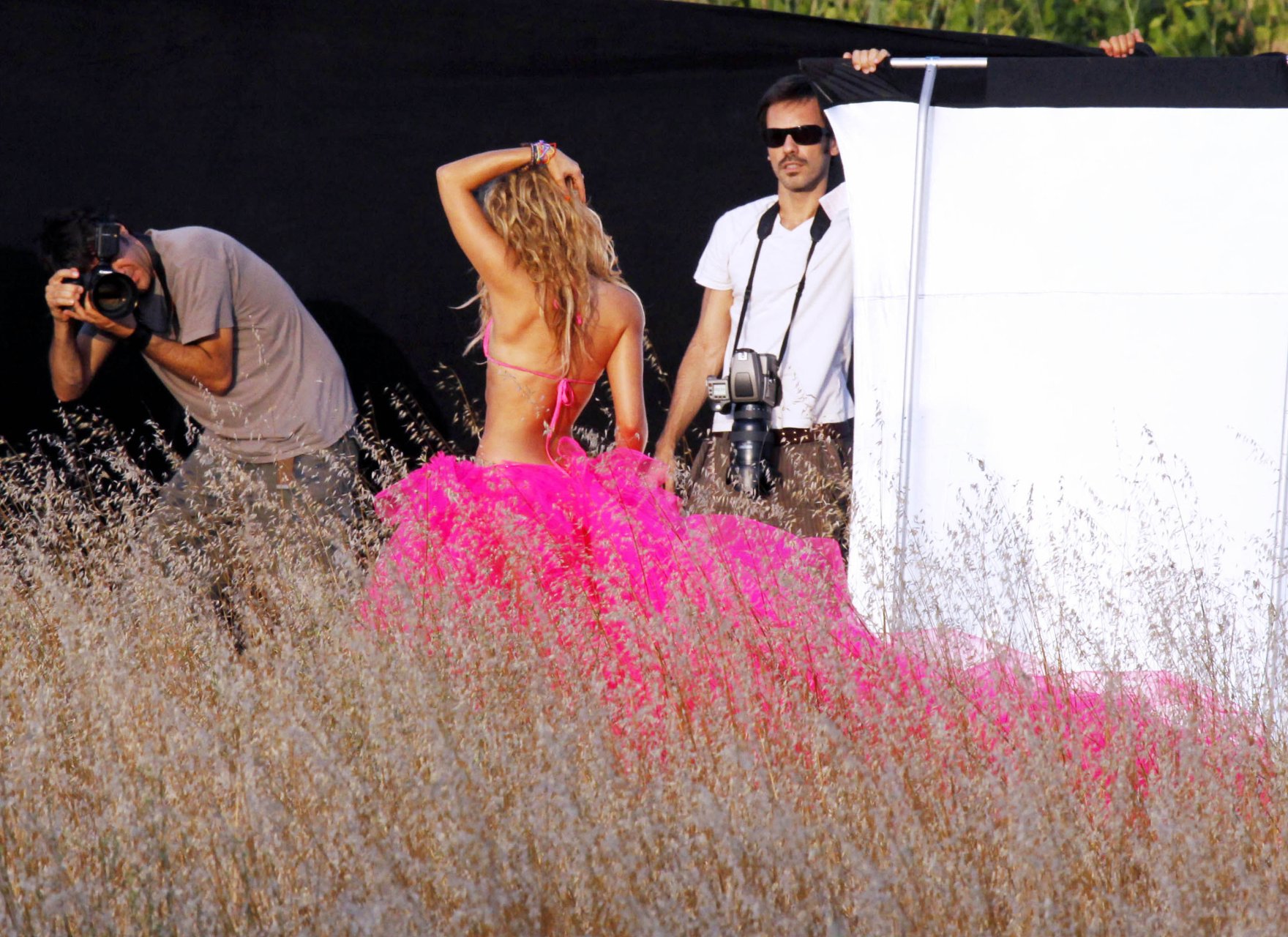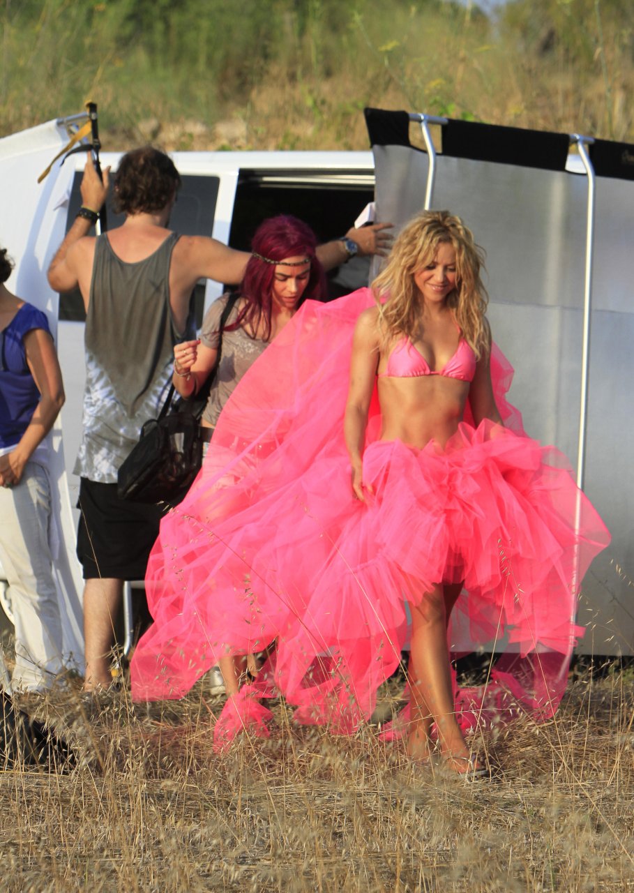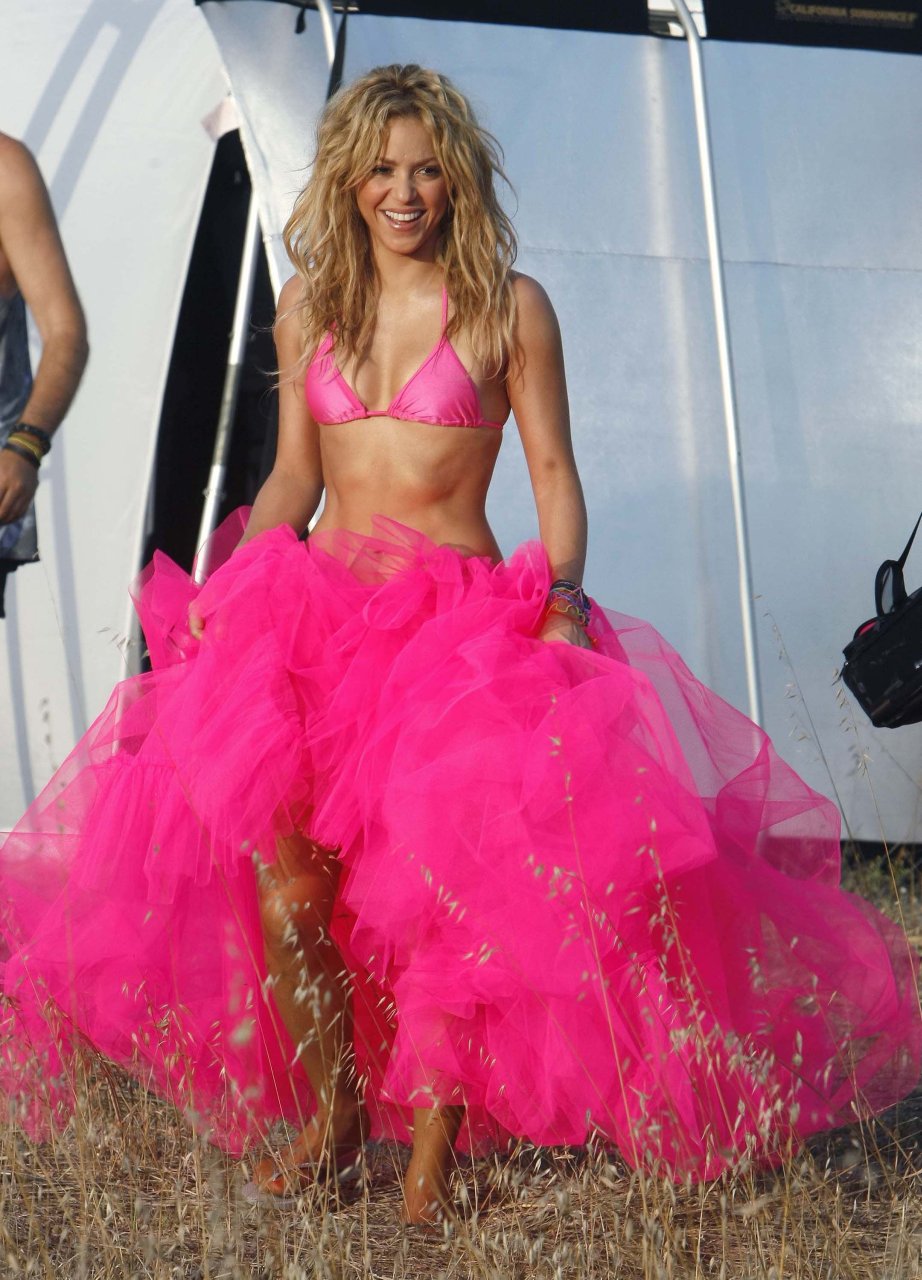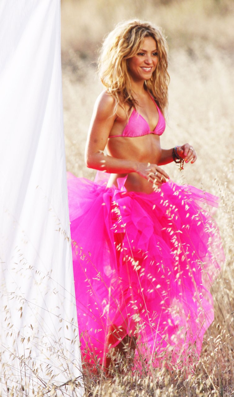 Шакира на фото в розовой юбке и топе-бикини во время сексуальной фотосессии на Ибице, Испания, 22.07.2010. Шакира Исабель Мебарак Риполл — колумбийская певица, автор песен, танцовщица, музыкальный продюсер. Родилась 2 февраля 1977 года.