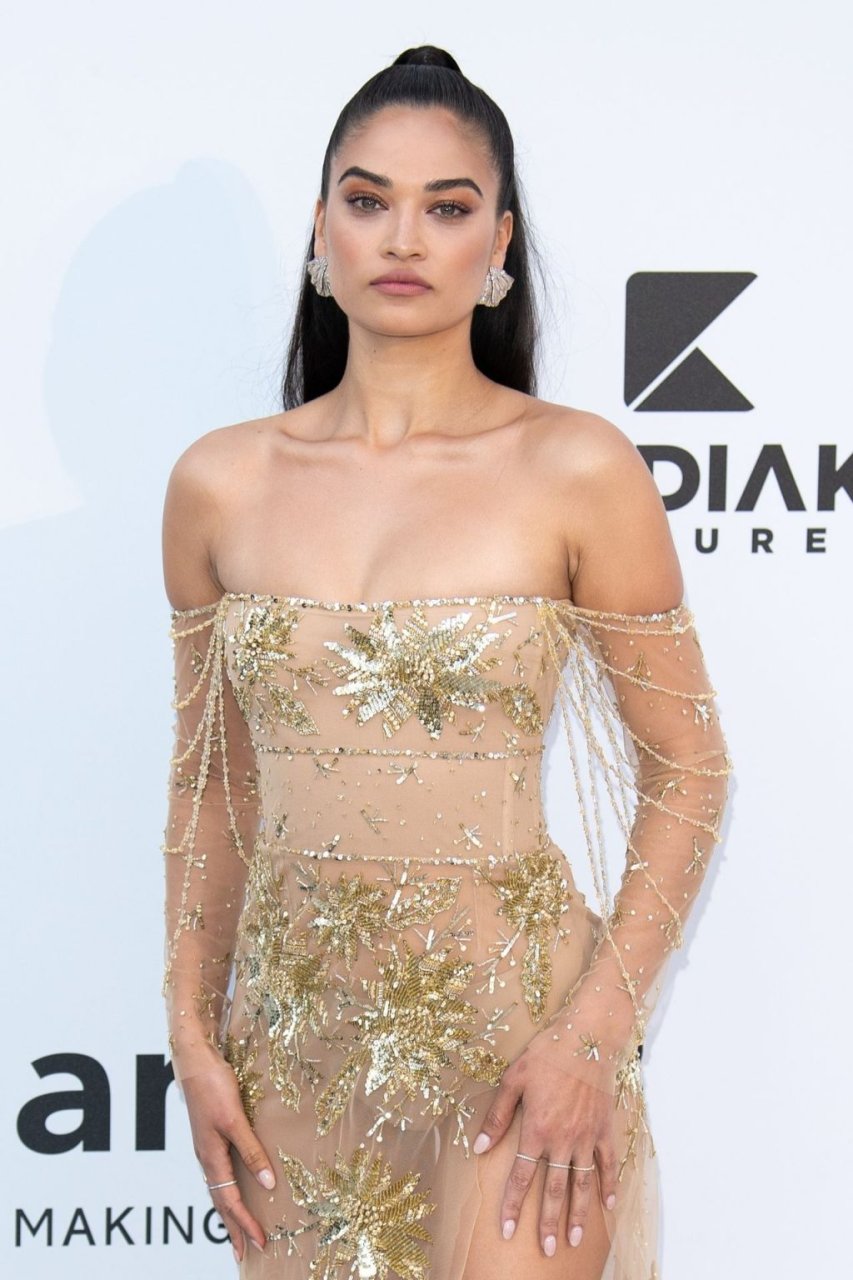 Модель Шанина Шейк продемонстрировала свои сексуальные стройные ноги, надев прозрачное платье на 26-й гала-вечер amfAR Cinema Against AIDS во время 72-го Каннского кинофестиваля, 23.05.2019.