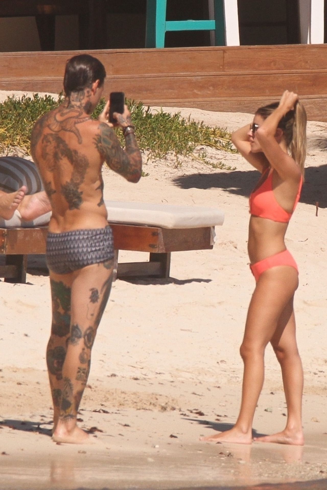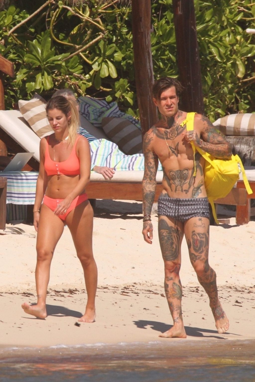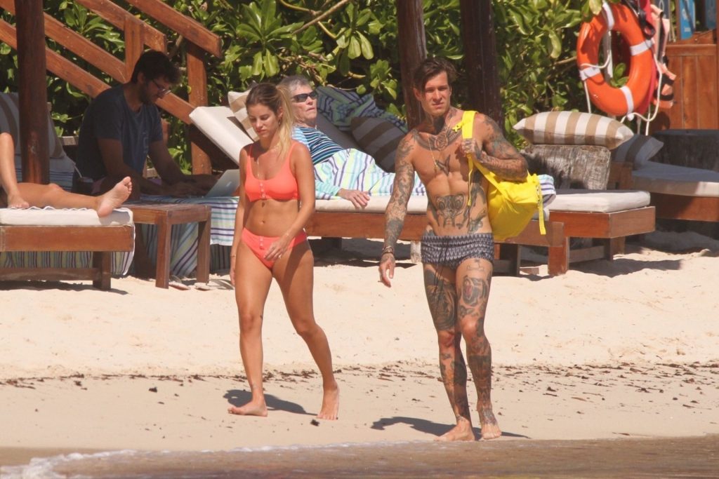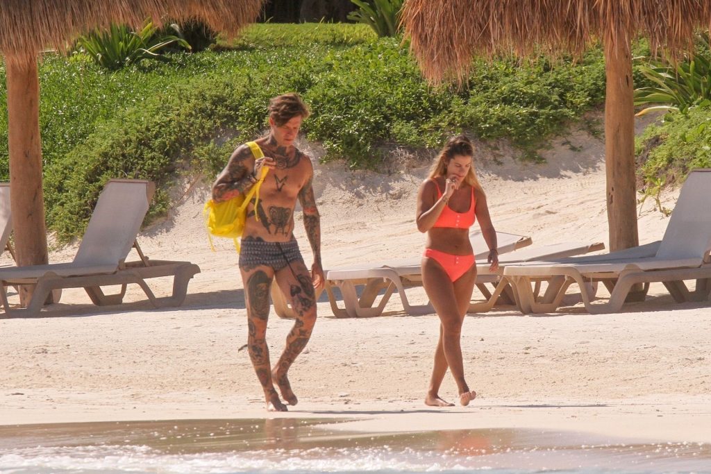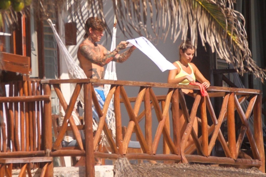 Mateus Verdelho и его жена Шанталь демонстрируют свои пляжные тела во время отпуска в Тулуме, 19.11.2019. Шанталь Верделхо — 30-летняя бразильская звезда Instagram и предприниматель. Ее фотографии из повседневной жизни собрали у нее 1,1 миллиона подписчиков.