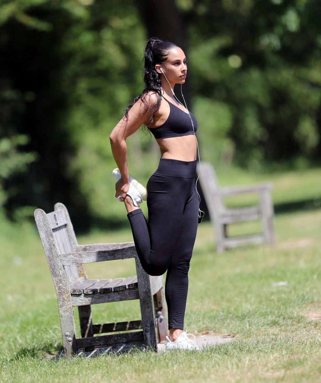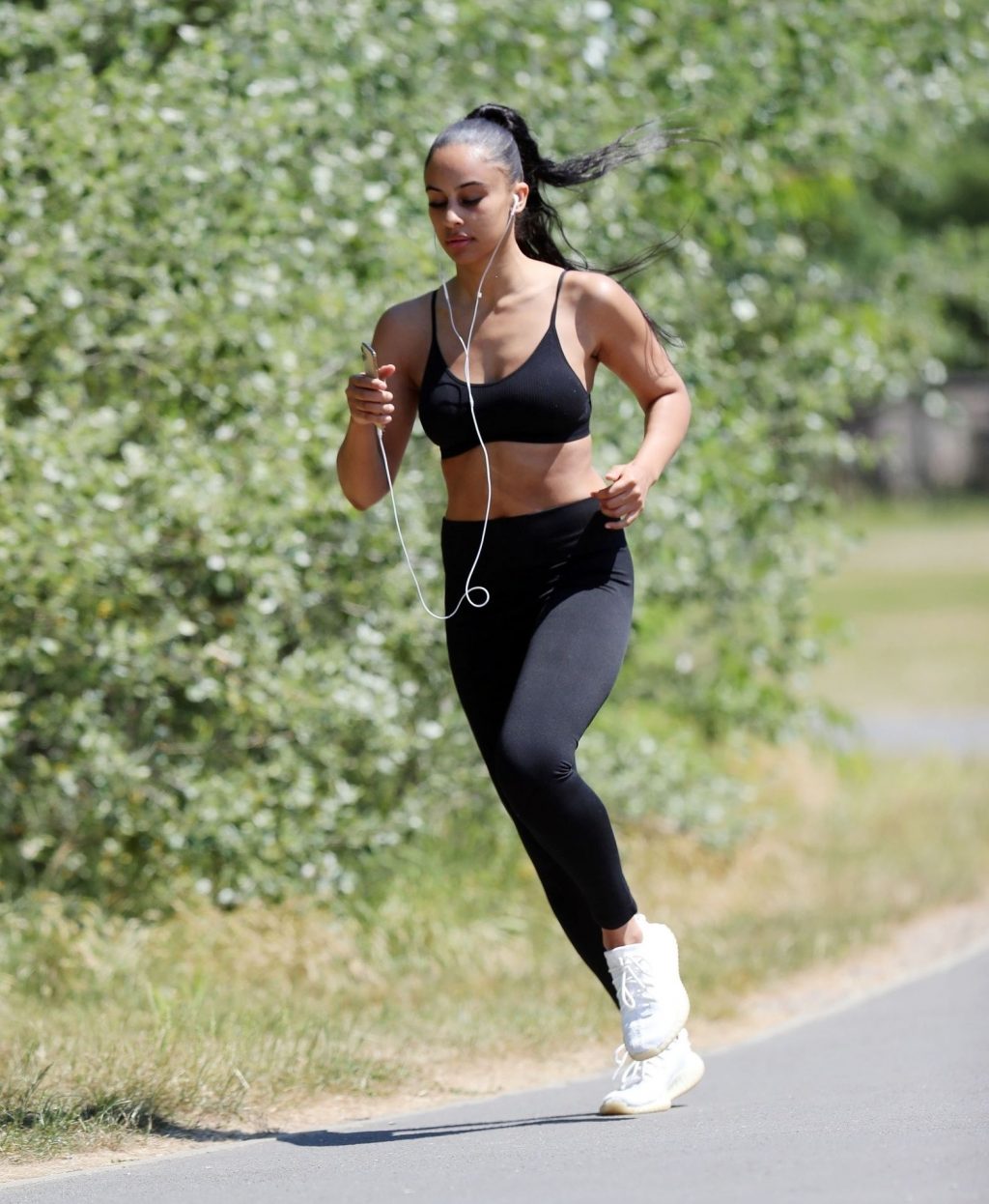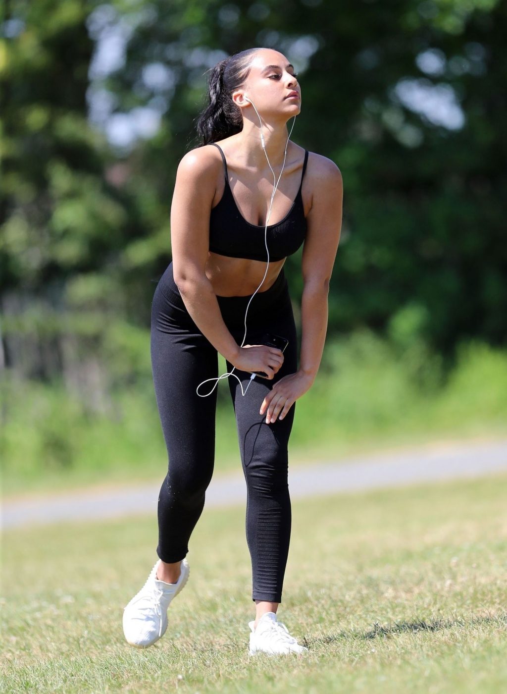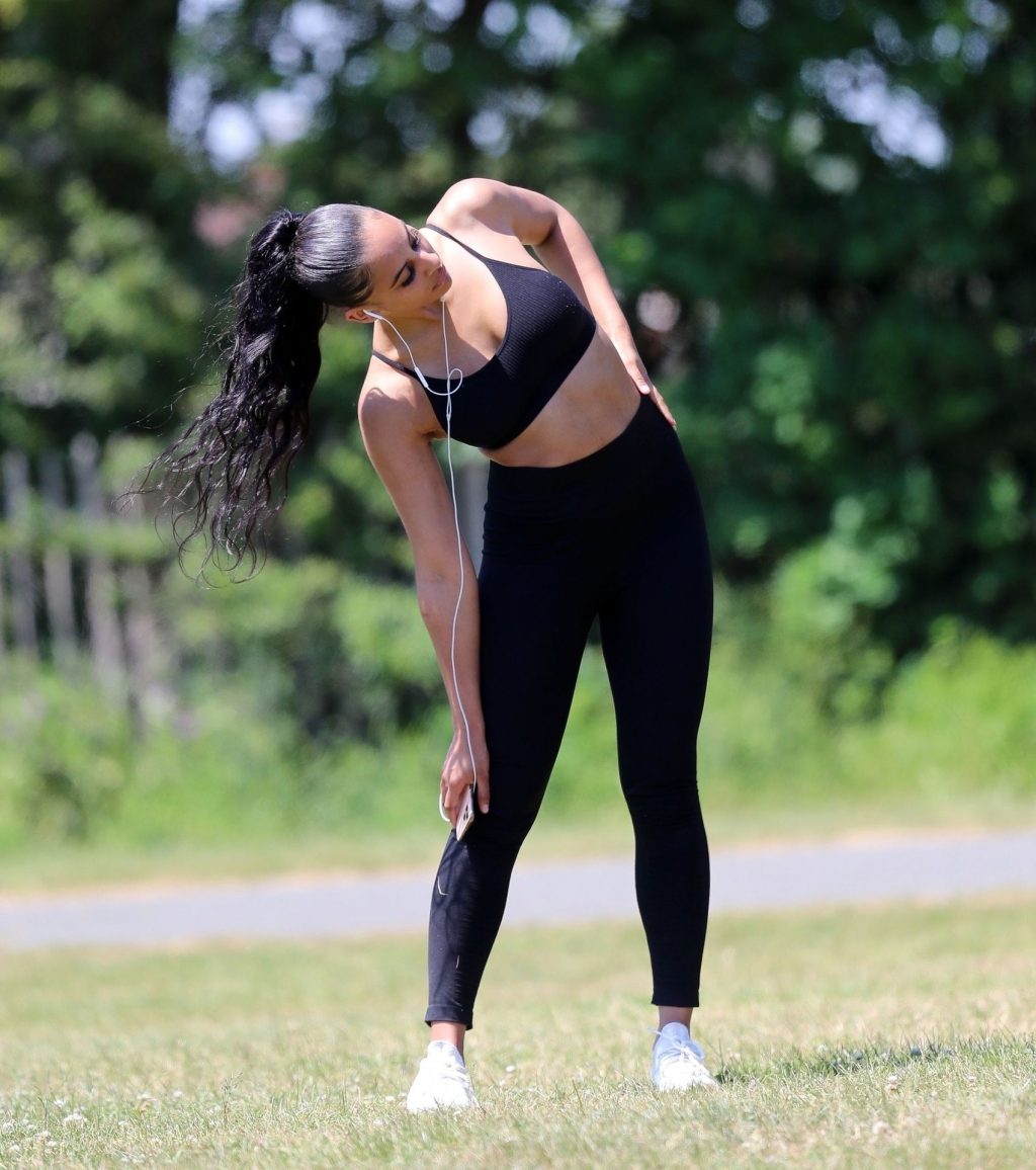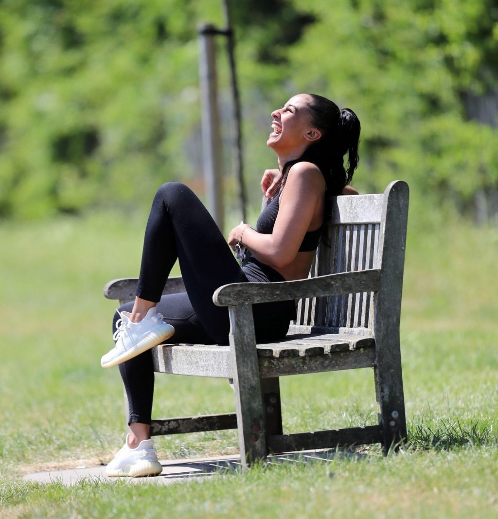 Суперподтянутая модель Шари Холлидей была запечатлена, как она потеет на жаре, гуляя в лондонском парке, 06/02/2020.