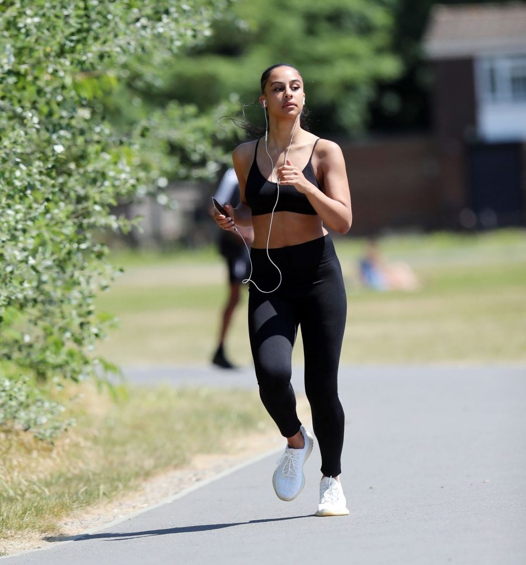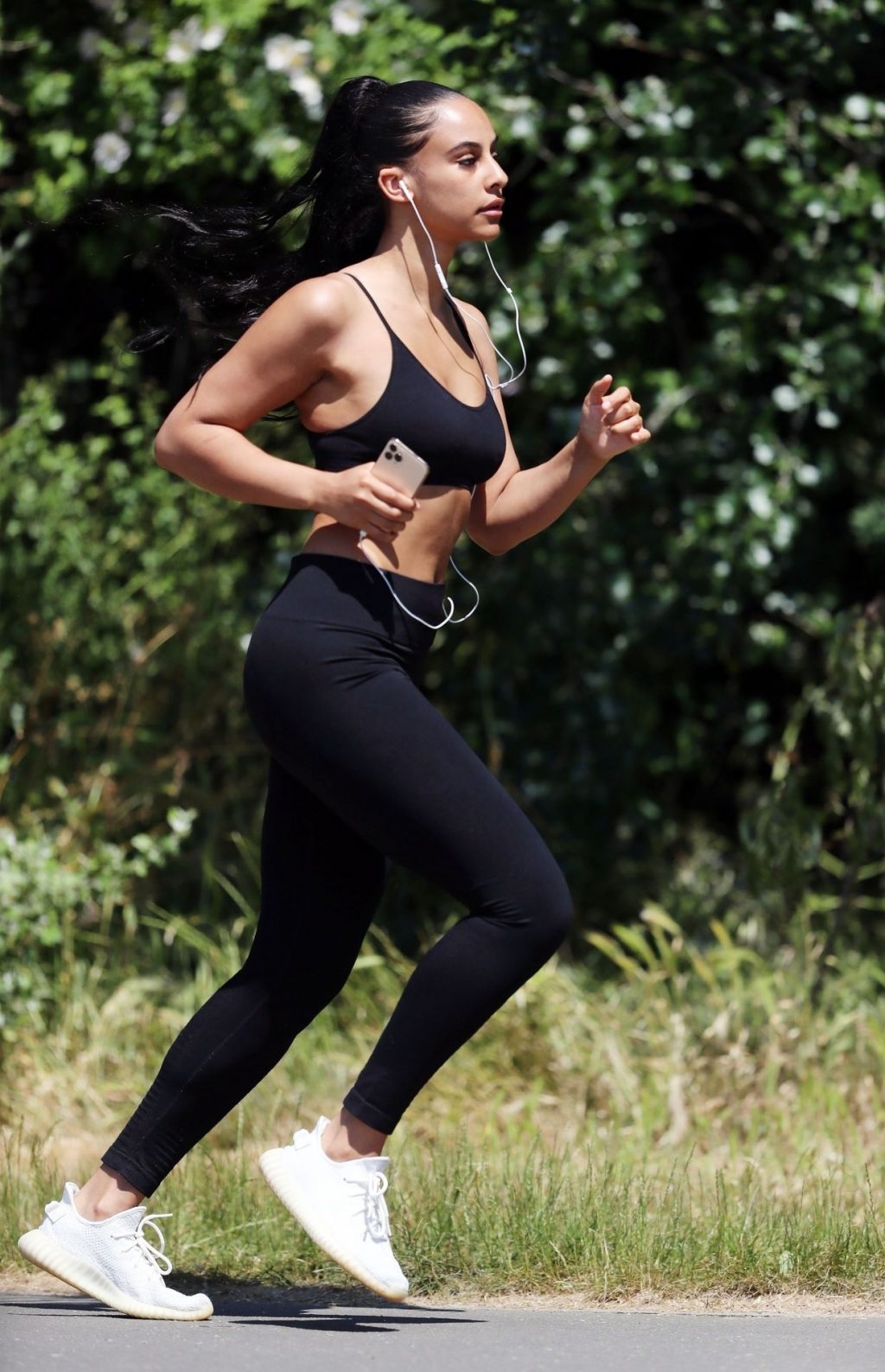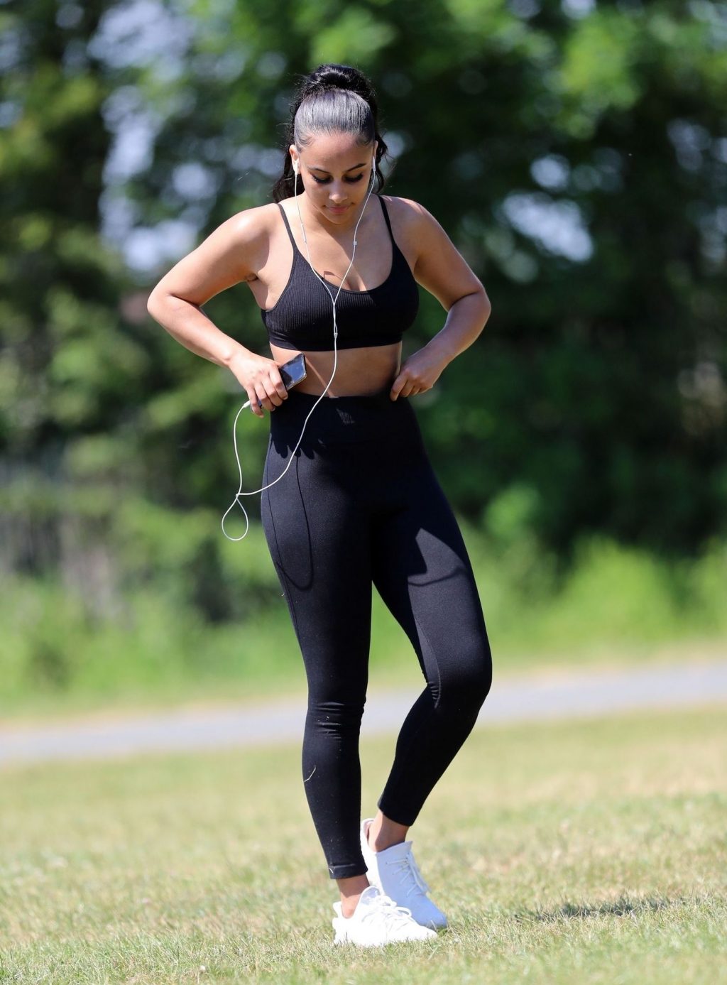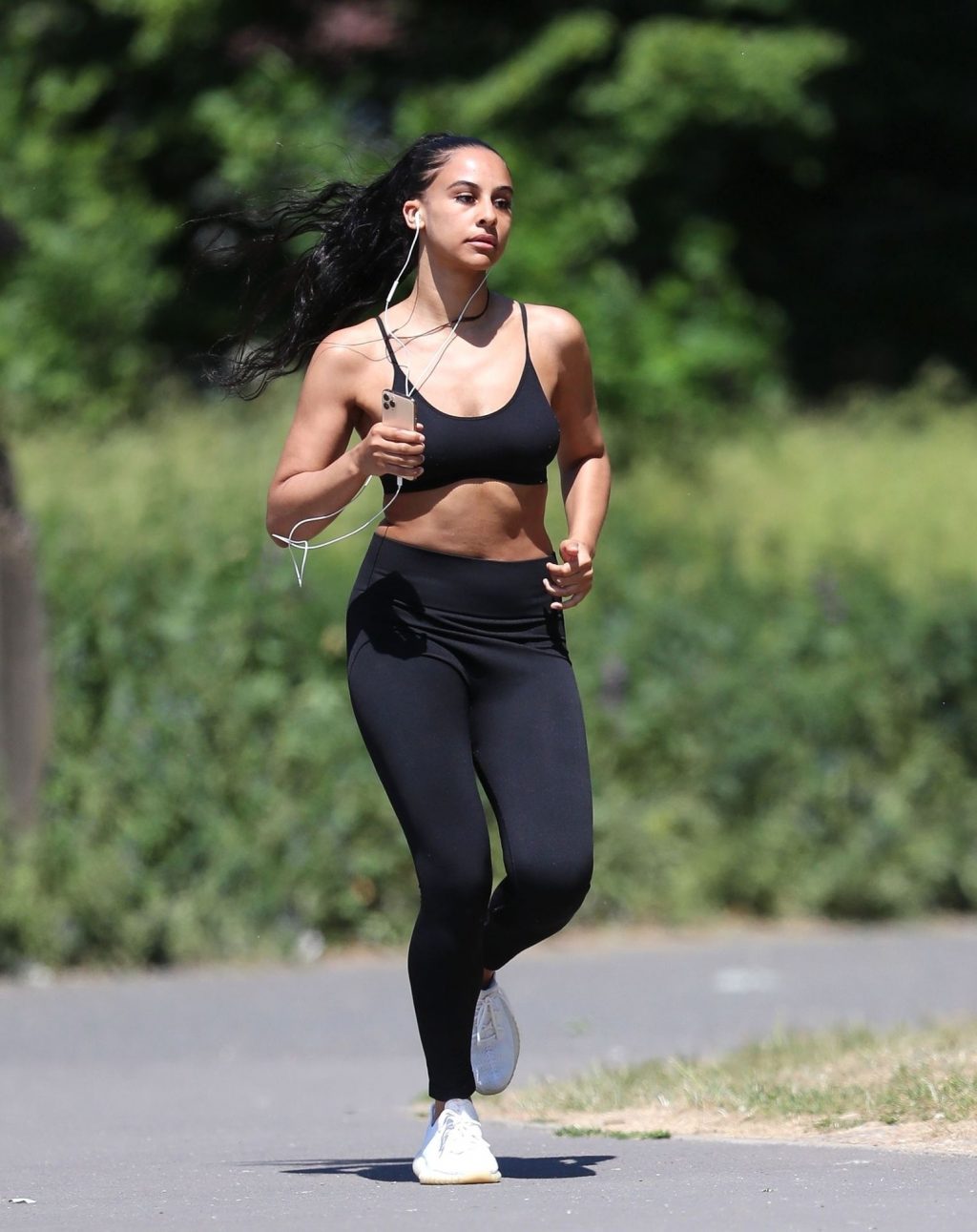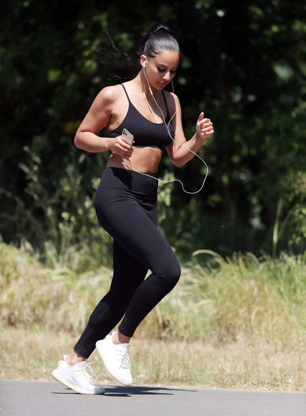 Суперподтянутая модель Шари Холлидей была запечатлена, как она потеет на жаре, гуляя в лондонском парке, 06/02/2020.