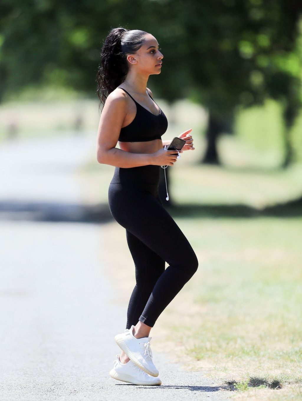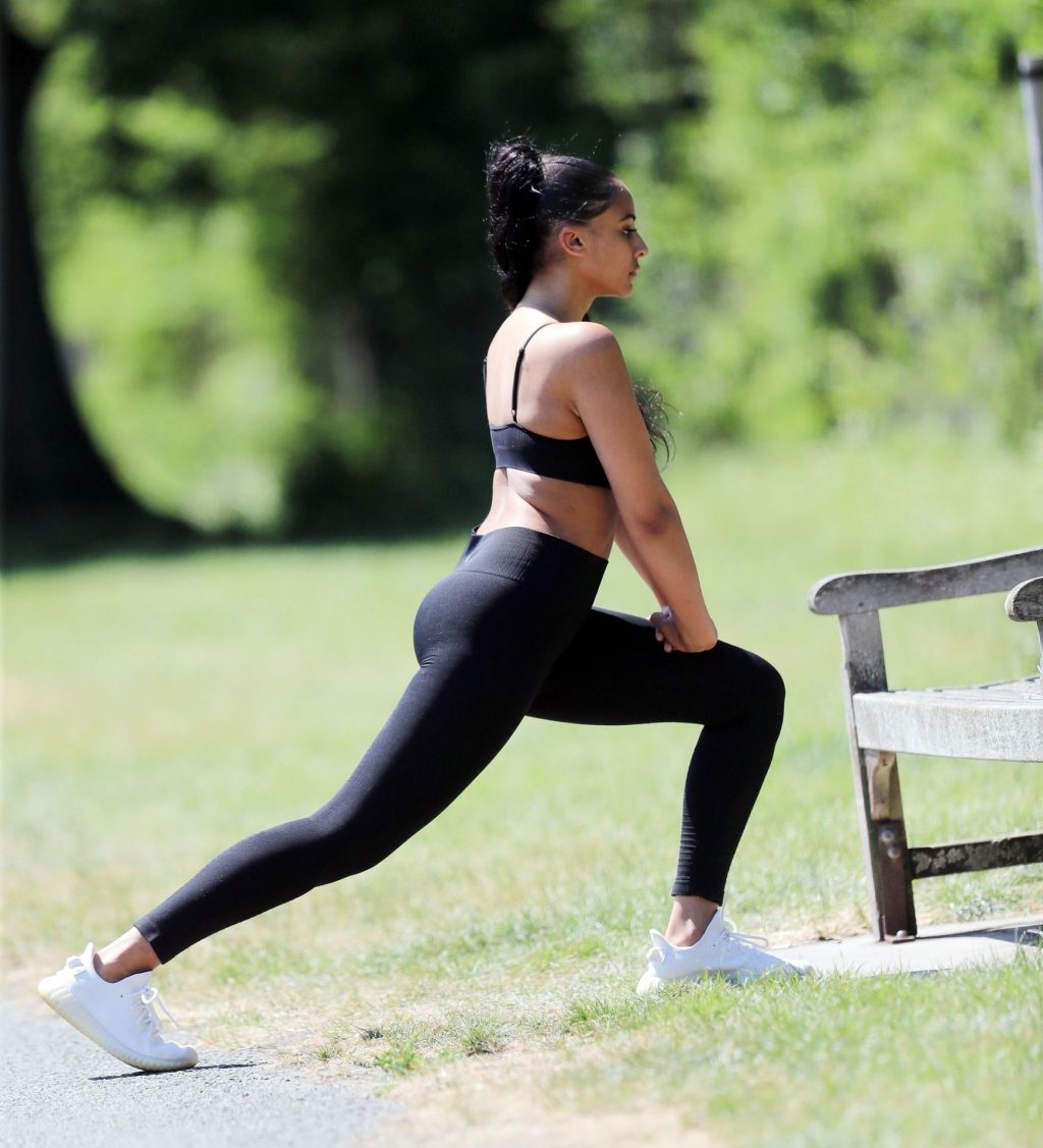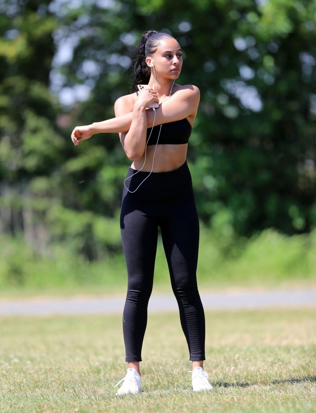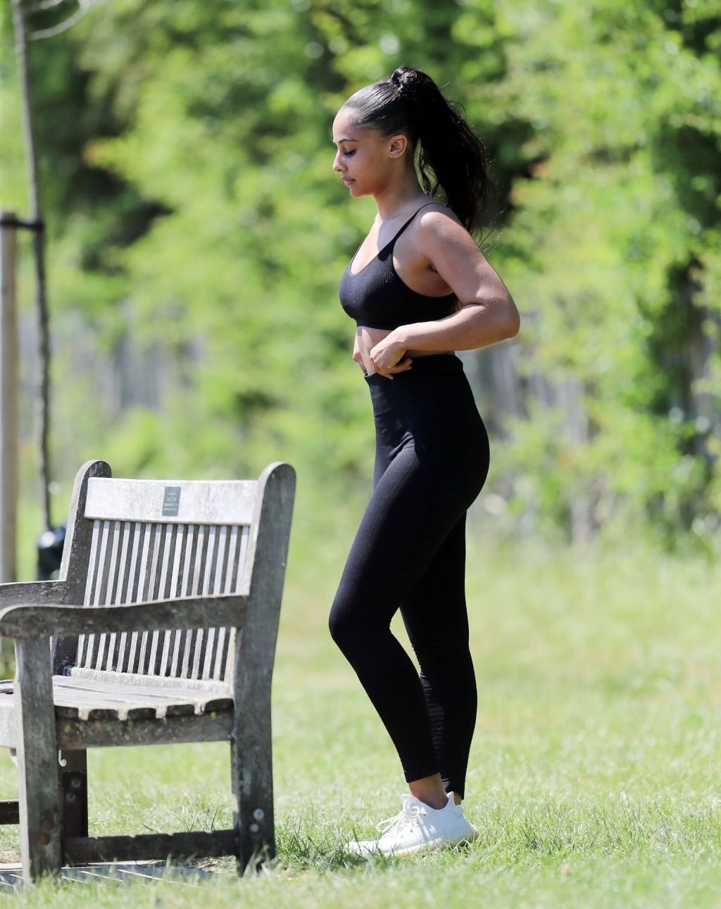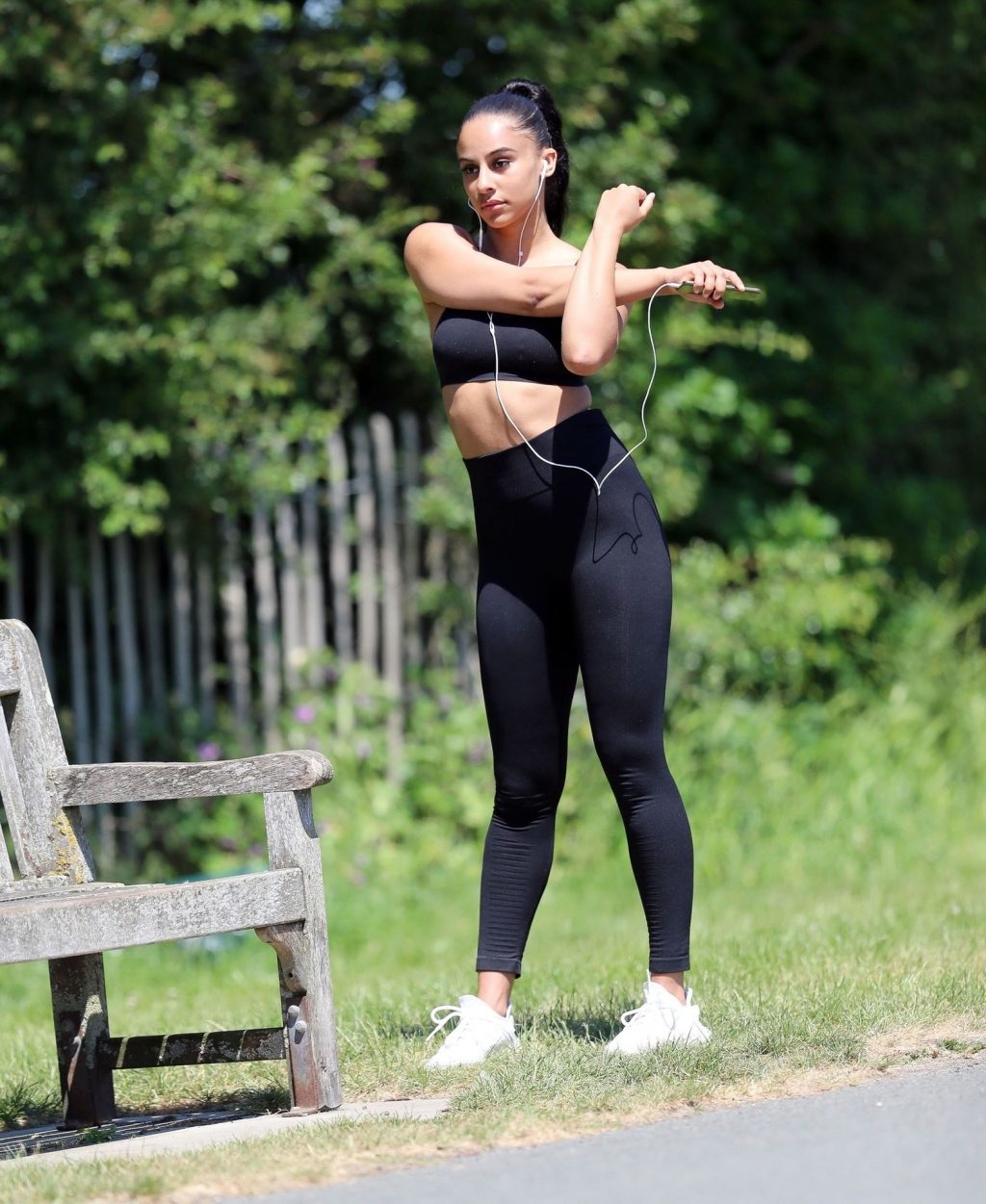 Суперподтянутая модель Шари Холлидей была запечатлена, как она потеет на жаре, гуляя в лондонском парке, 06/02/2020.
