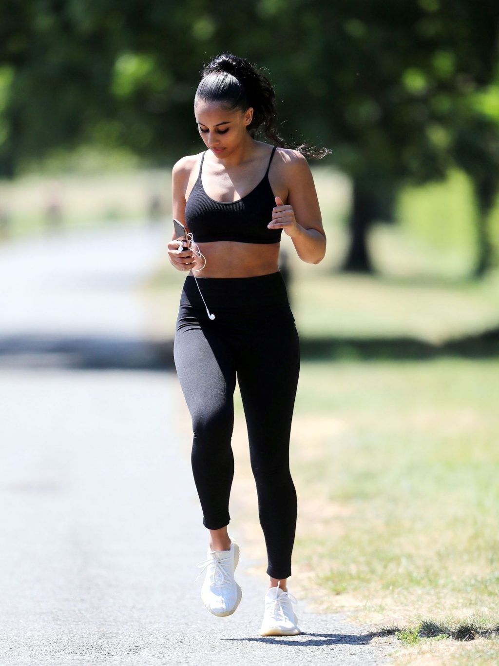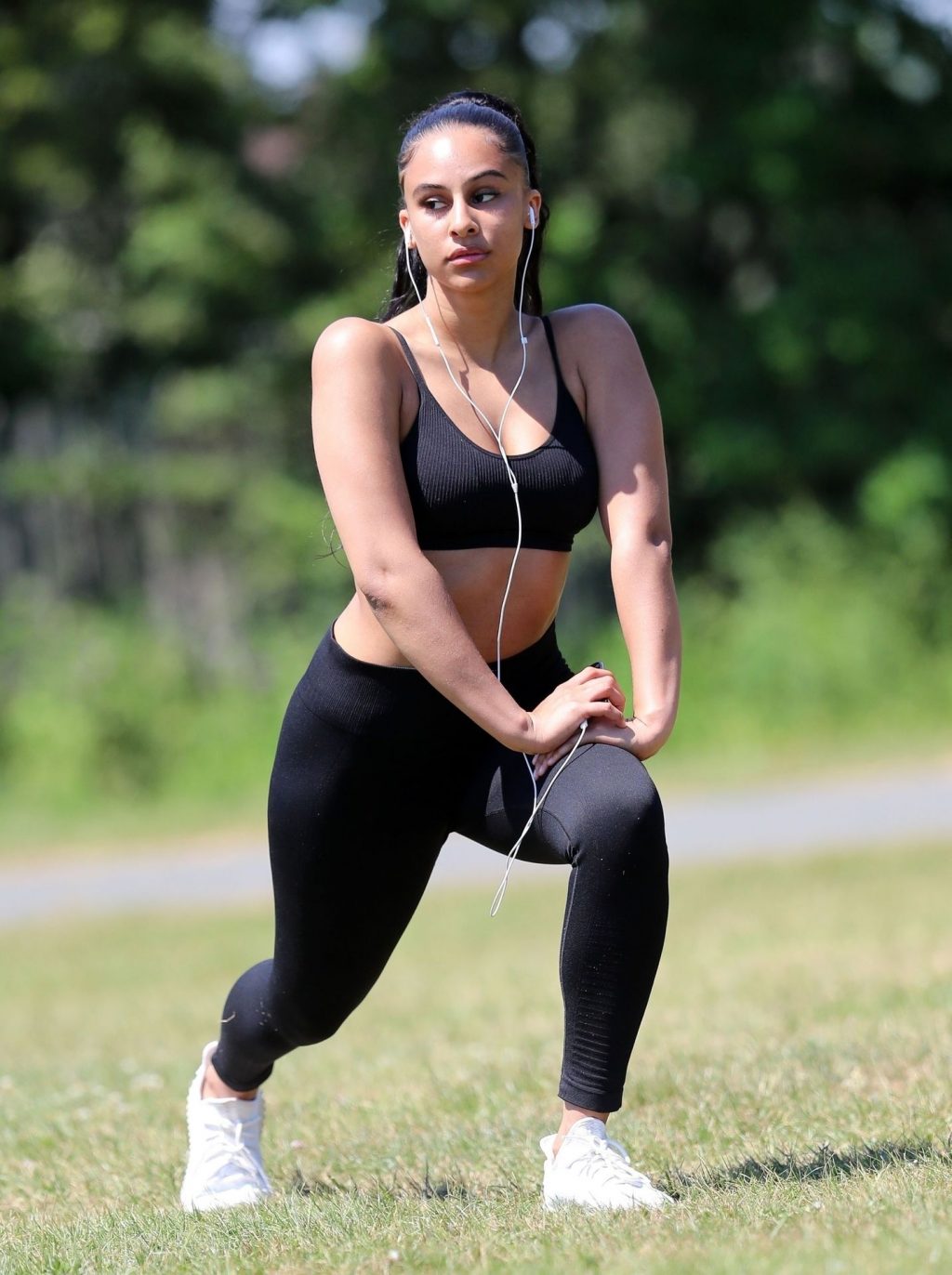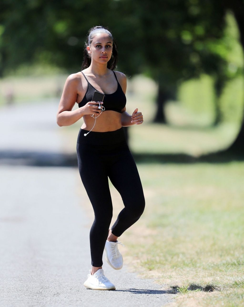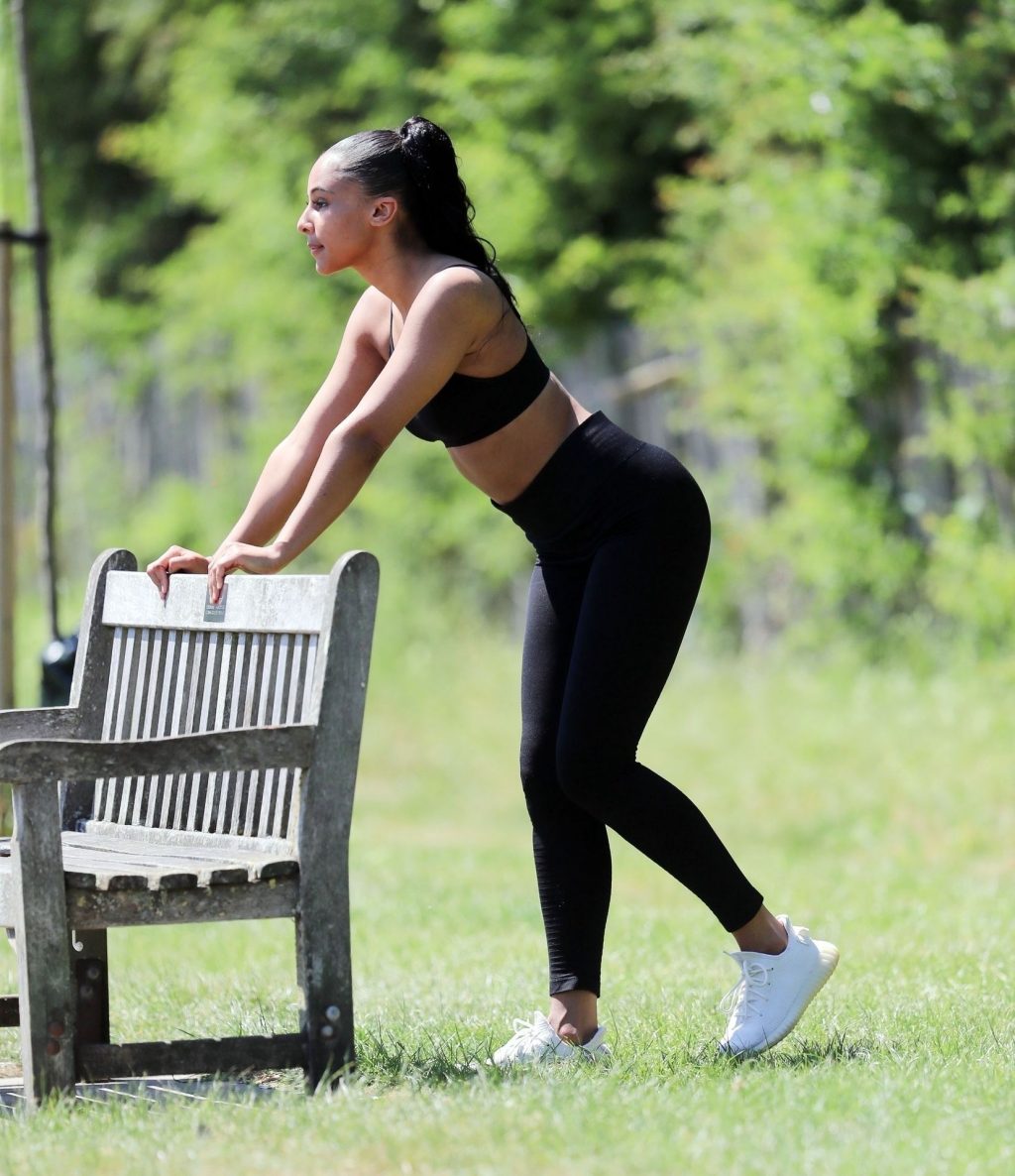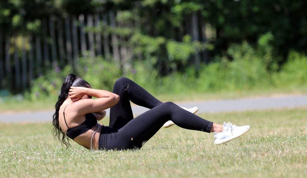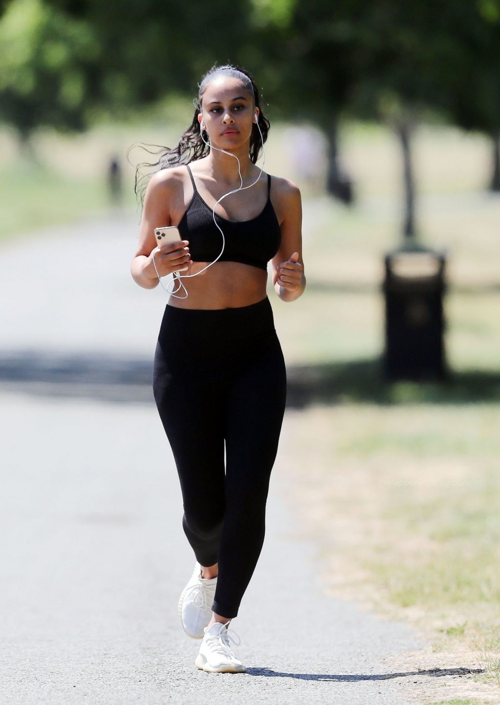 Суперподтянутая модель Шари Холлидей была запечатлена, как она потеет на жаре, гуляя в лондонском парке, 06/02/2020.