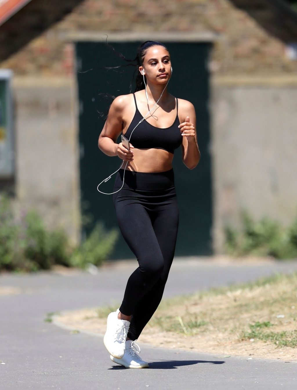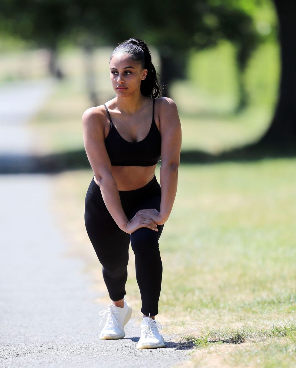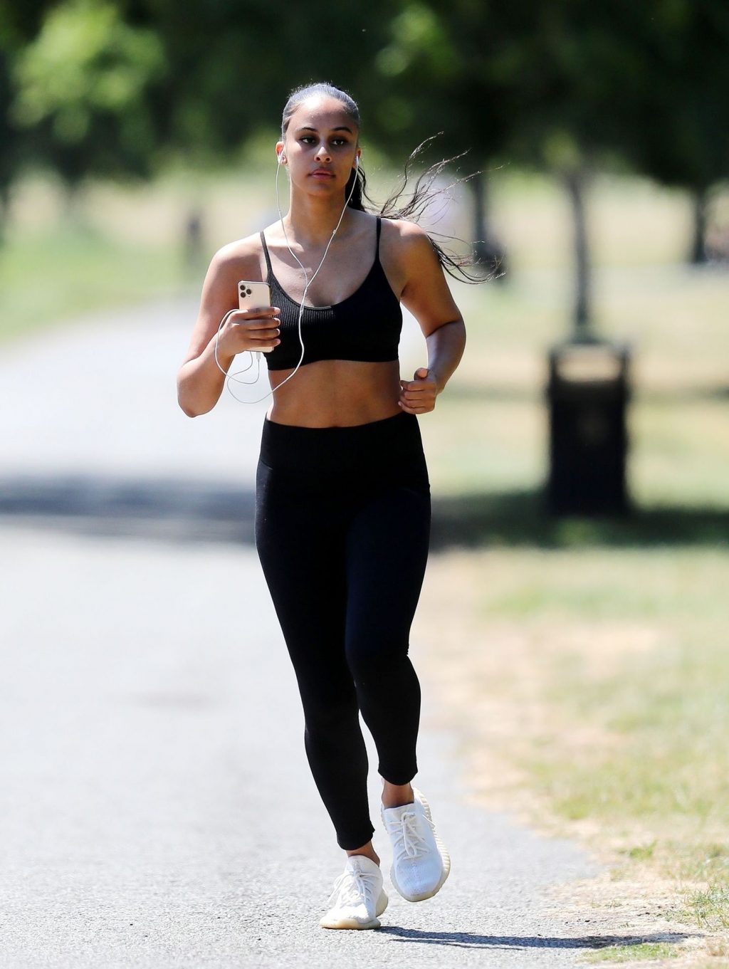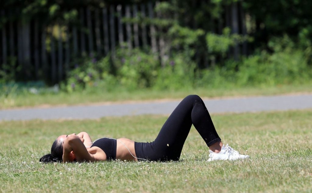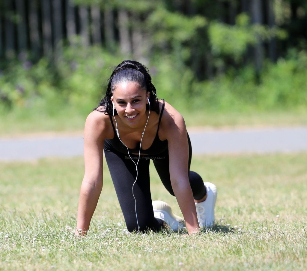 Суперподтянутая модель Шари Холлидей была запечатлена, как она потеет на жаре, гуляя в лондонском парке, 06/02/2020.