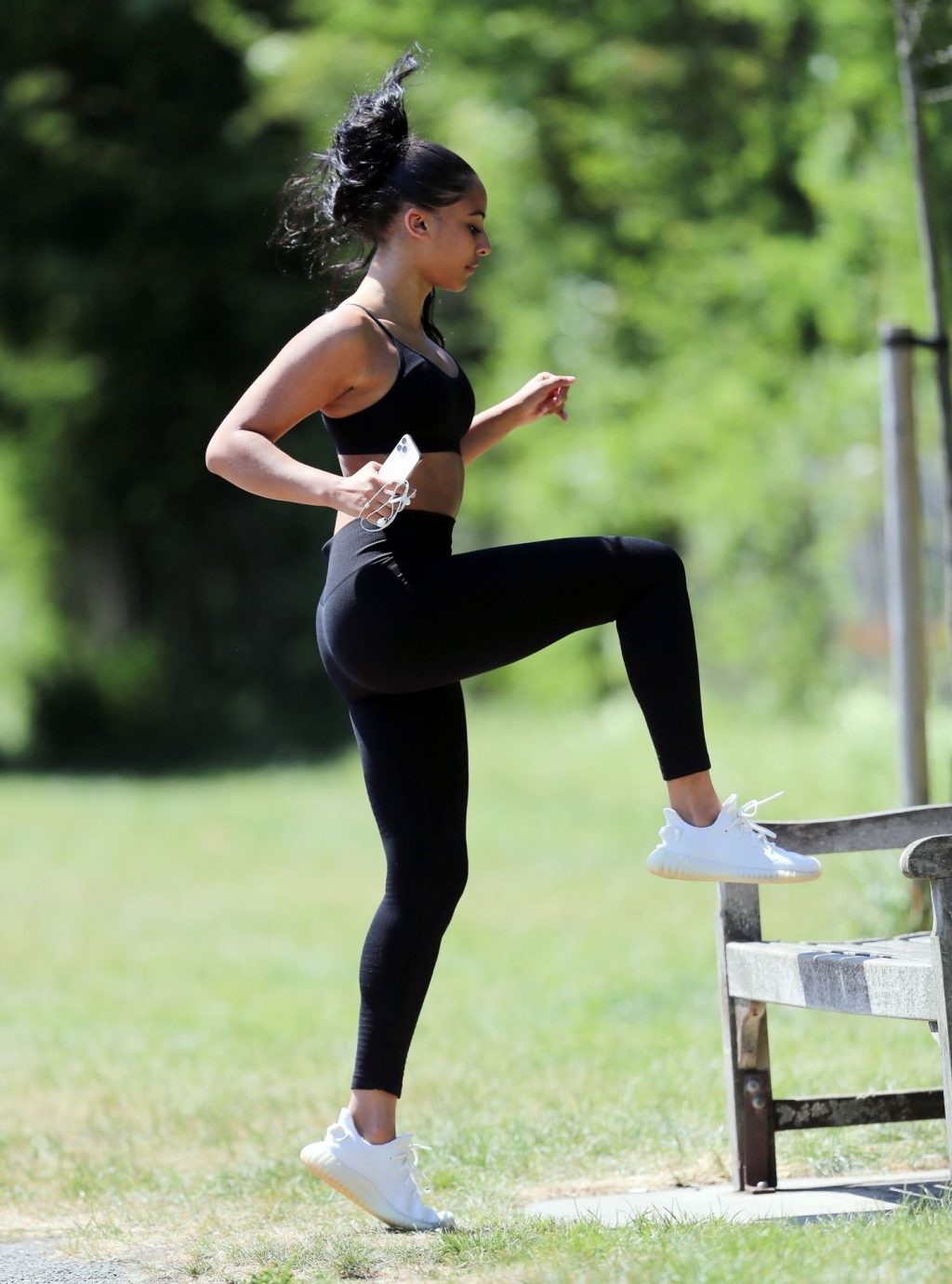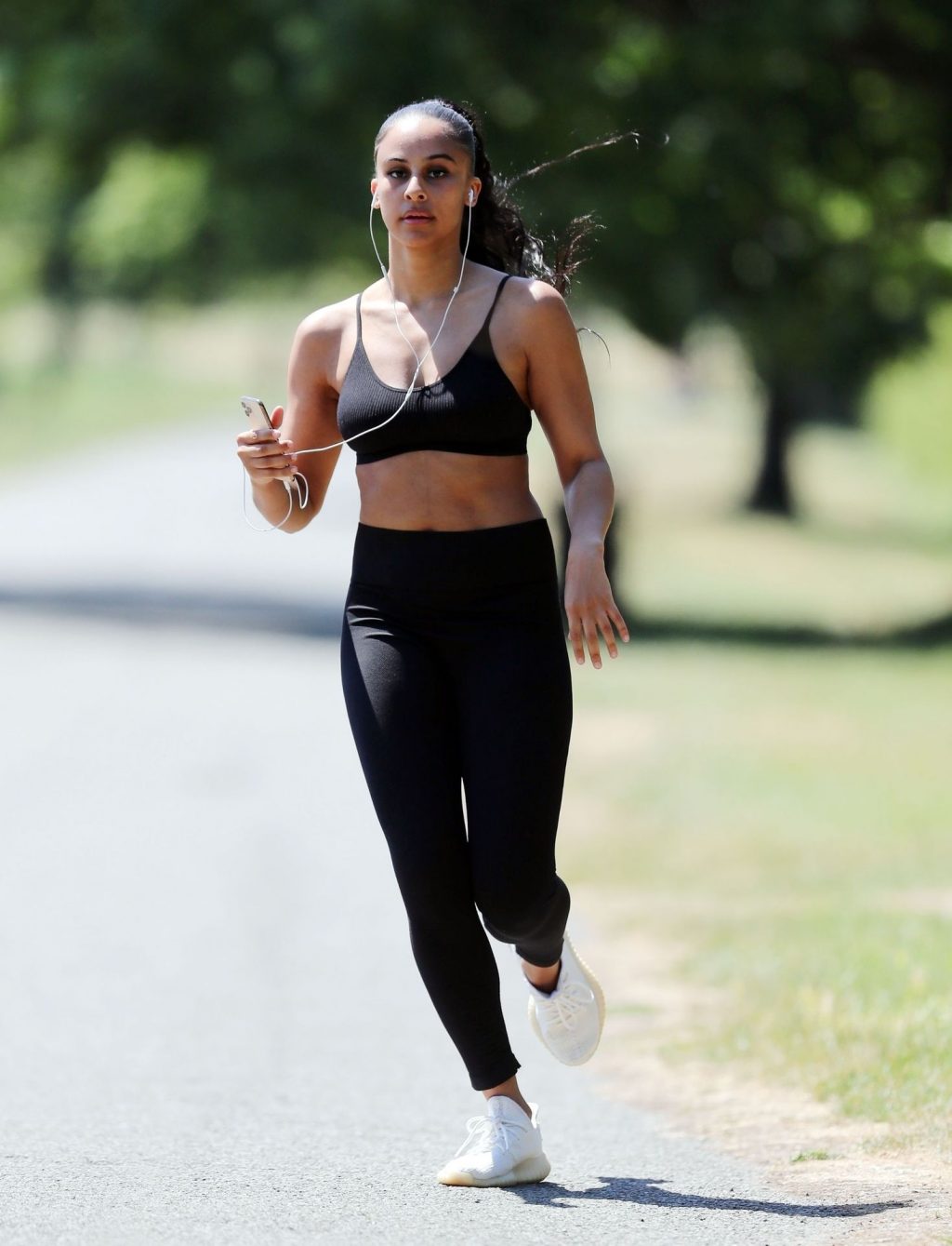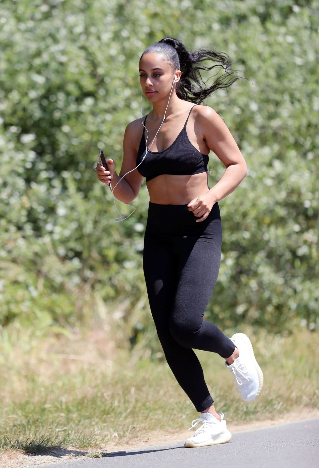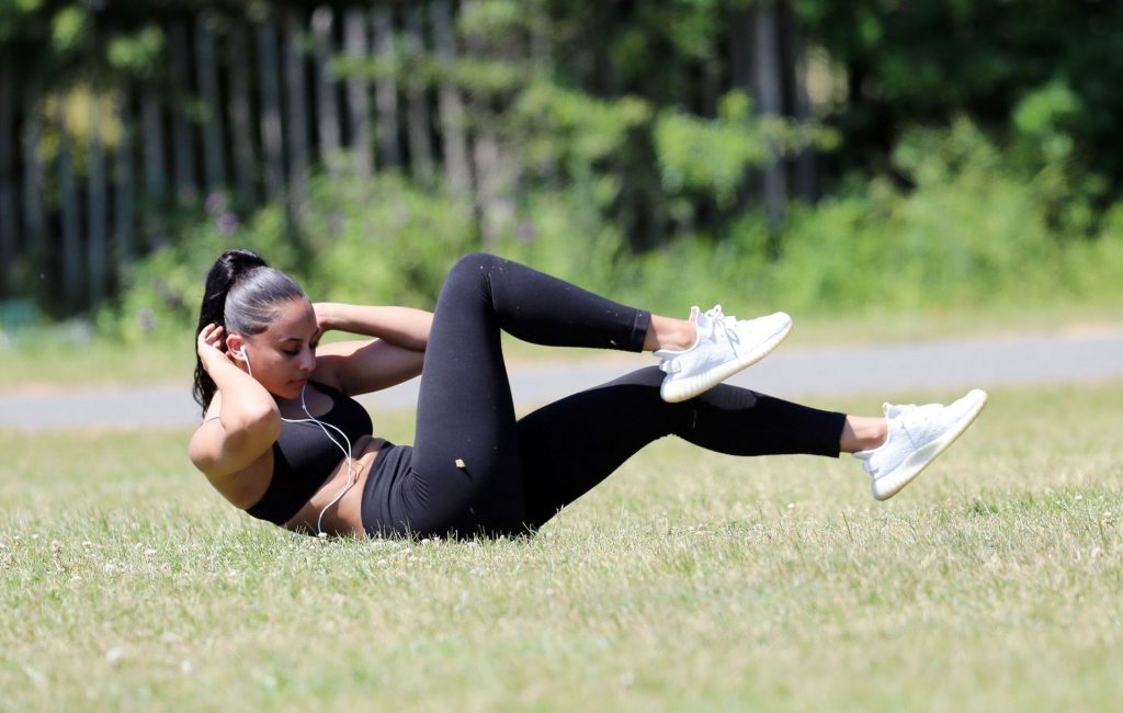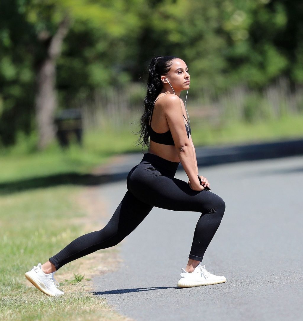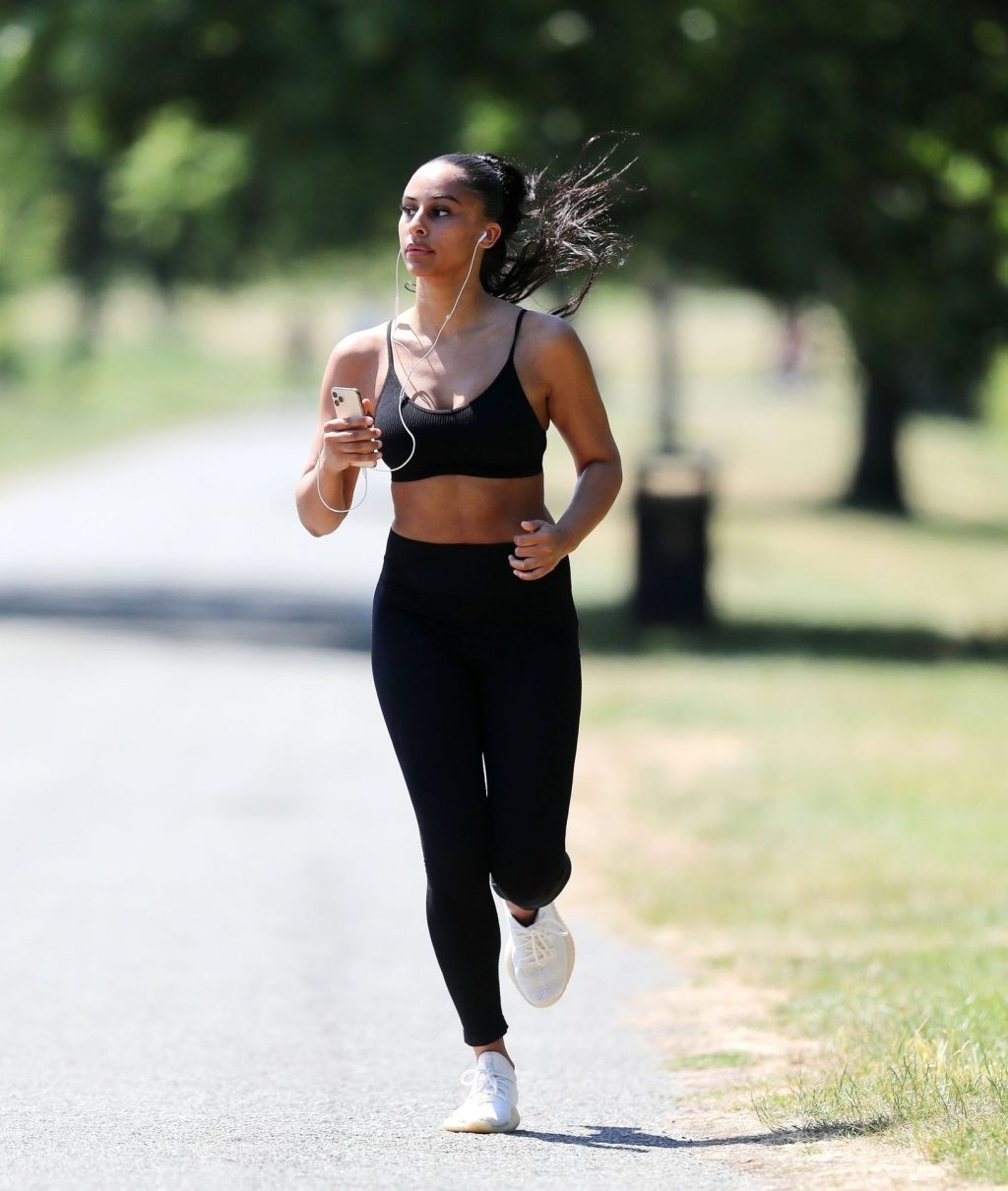 Суперподтянутая модель Шари Холлидей была запечатлена, как она потеет на жаре, гуляя в лондонском парке, 06/02/2020.
