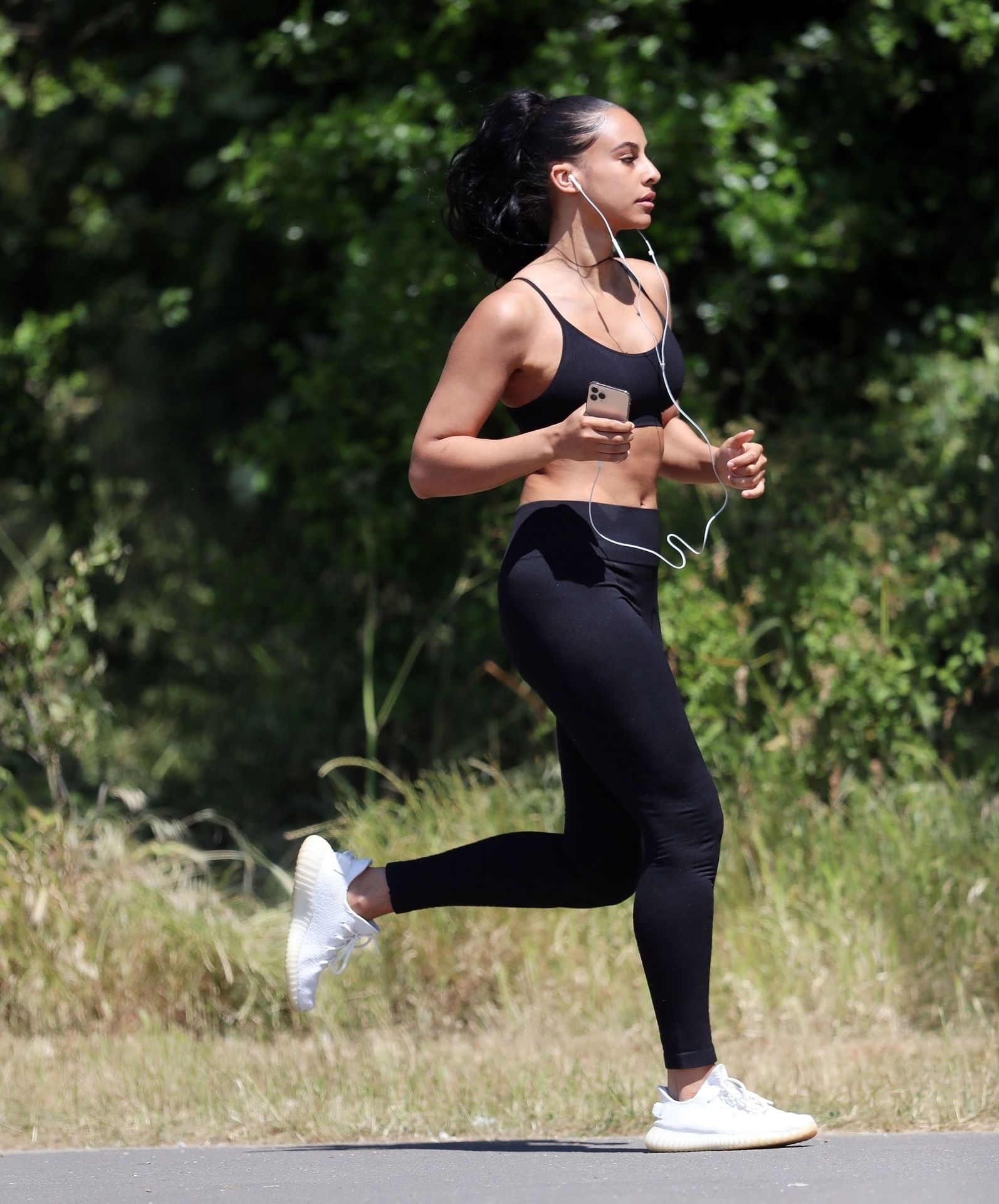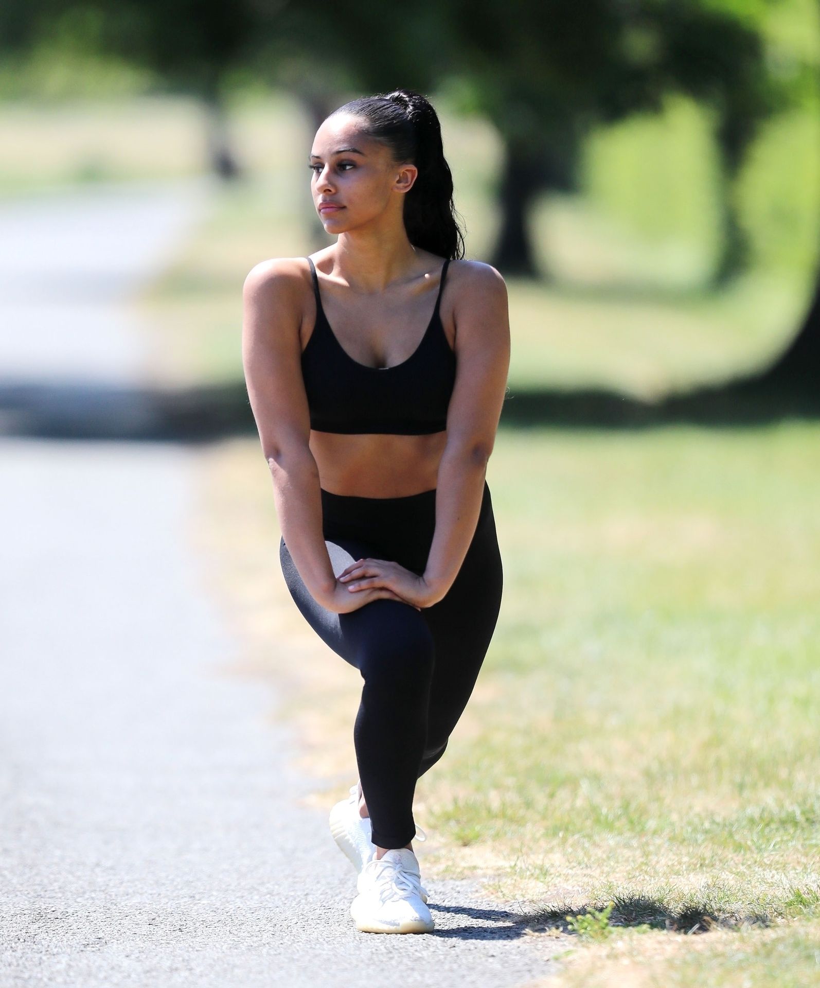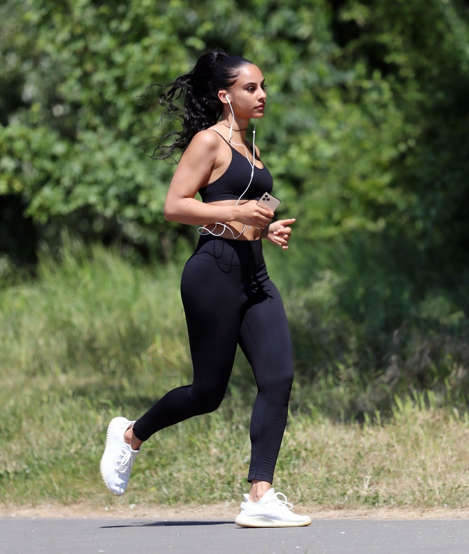 Суперподтянутая модель Шари Холлидей была запечатлена, как она потеет на жаре, гуляя в лондонском парке, 06/02/2020.
