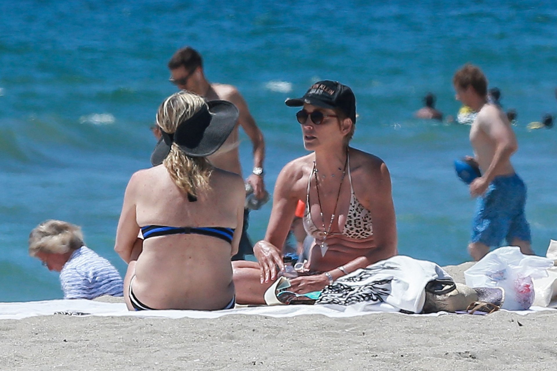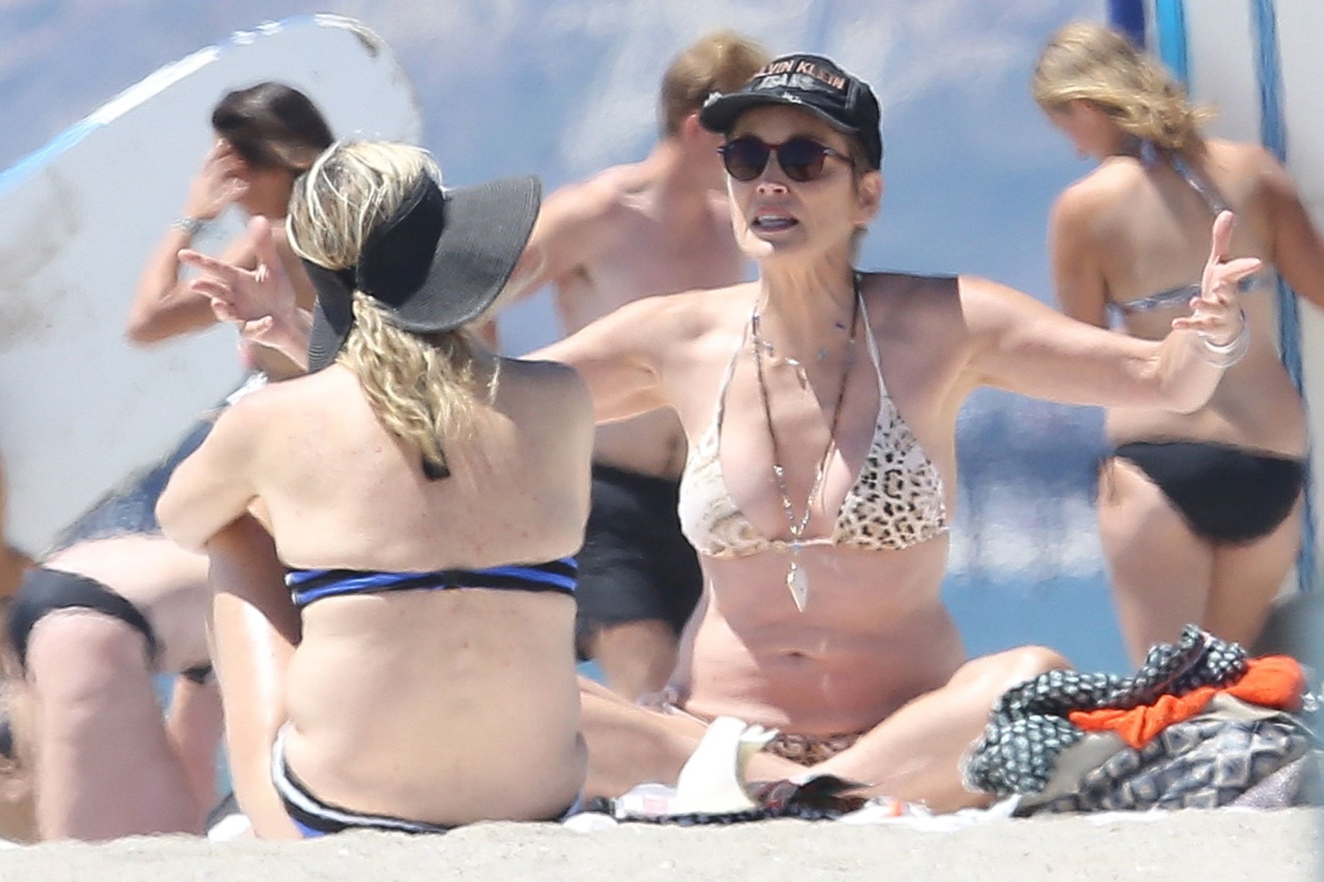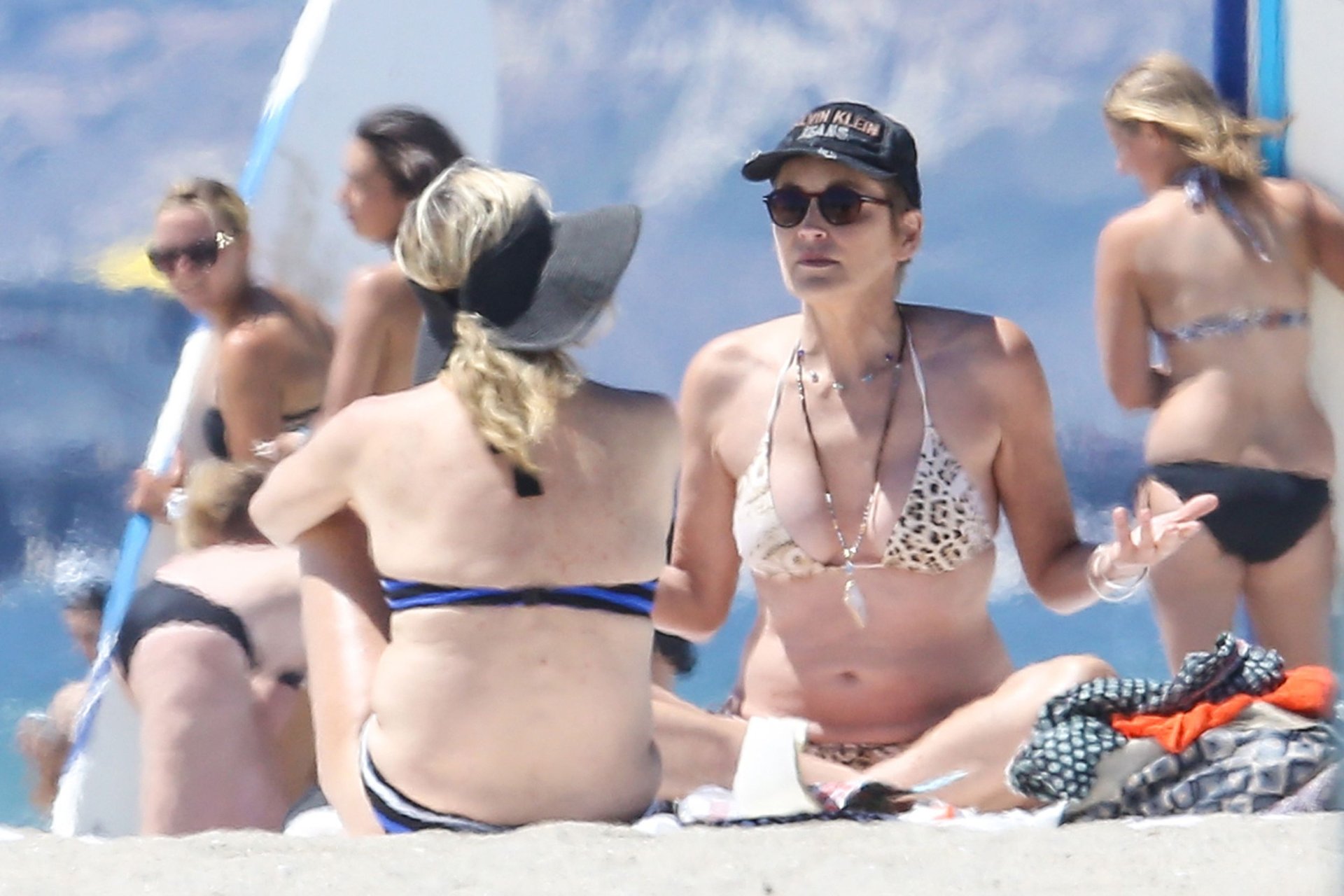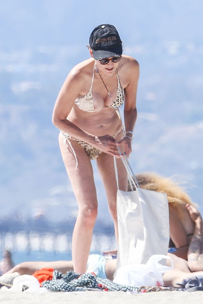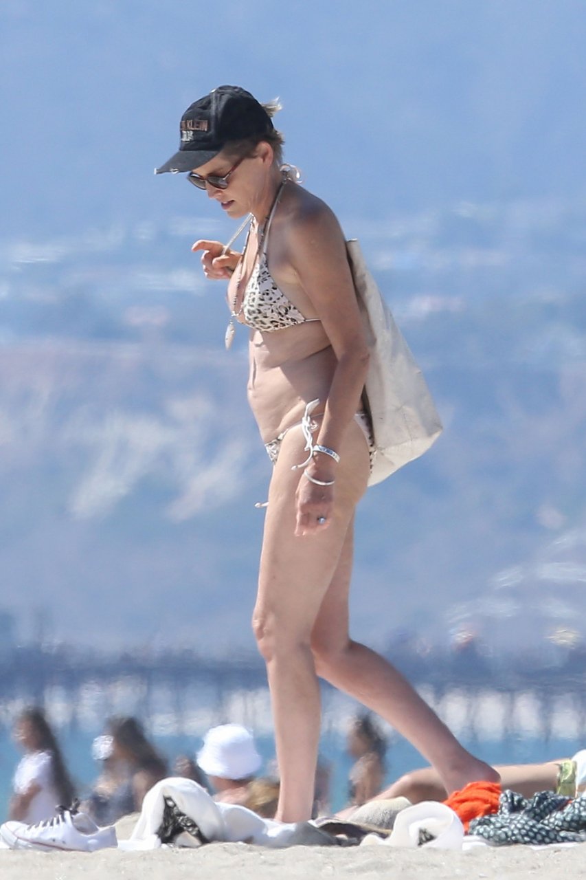 Sharon Stone демонстрирует потрясающую фигуру в сексуальном бикини с животным принтом на пляже Венеции, 12.08.2016. В форме в 58 лет! Sharon Stone — американская актриса, кинопродюсер и бывшая модель. Возраст: 58 (10 марта 1958).