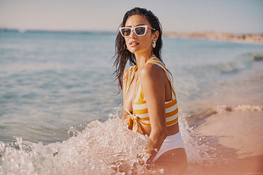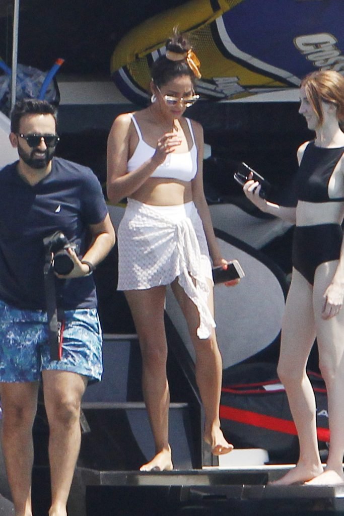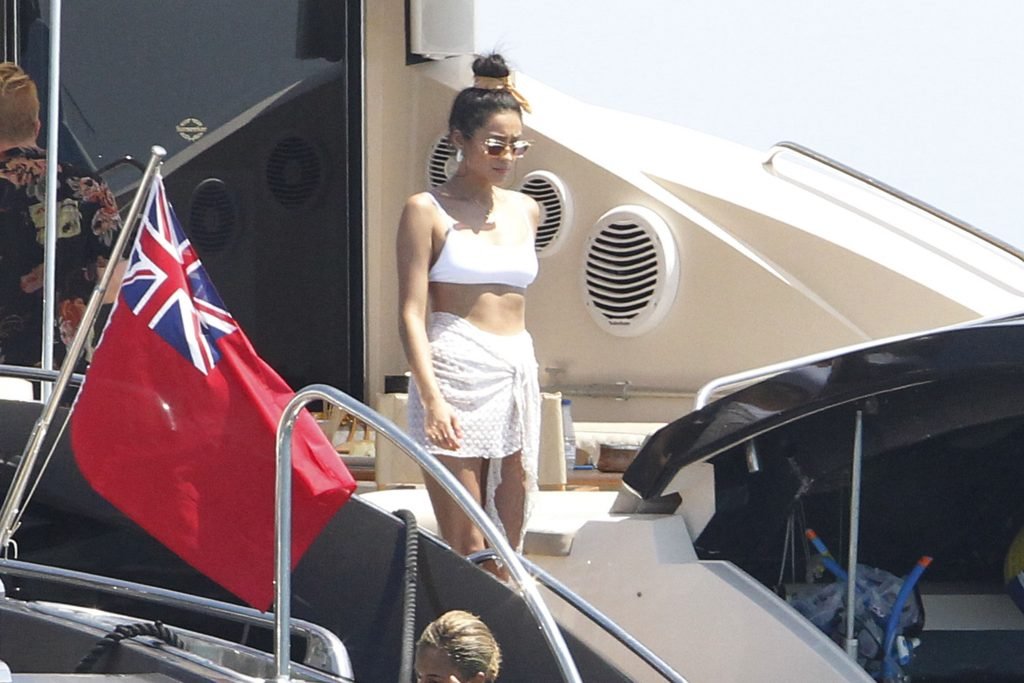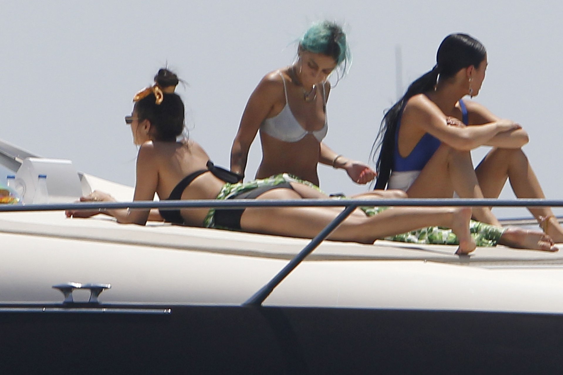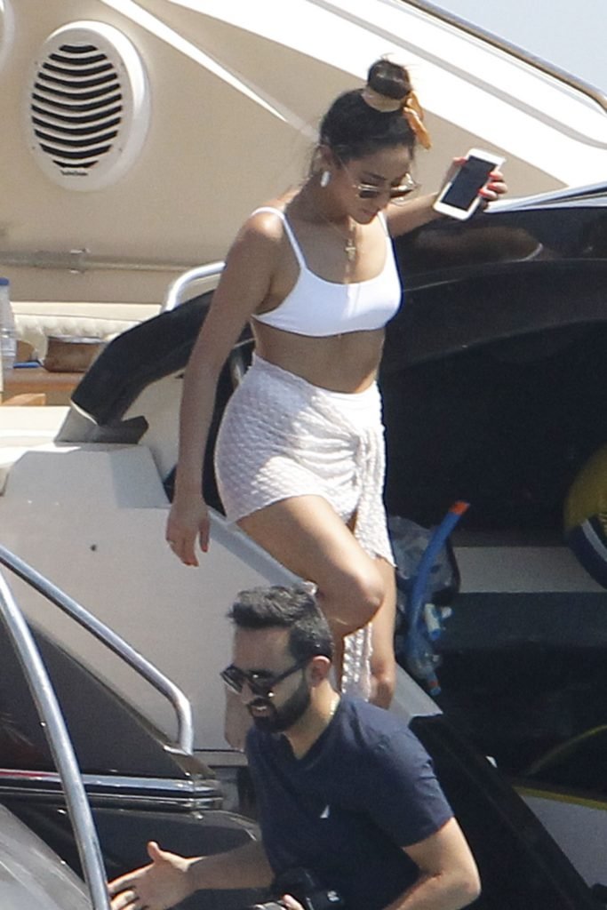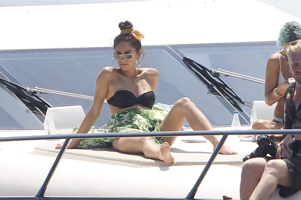 Застенчивые лгунишки звезда Шей Митчелл наслаждается прогулкой на лодке по Форментере вместе с друзьями, включая моделей Эльсу Хоск, Оливию Калпо и других на Форментере, Ибица, 26.06.2018.