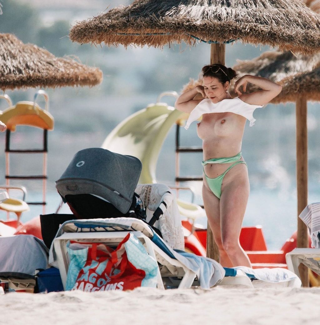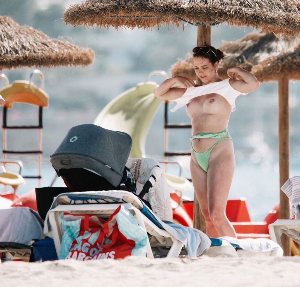 Шелби Триббл показывает свои обнажённые груди на пляже в Испании (27 фото)