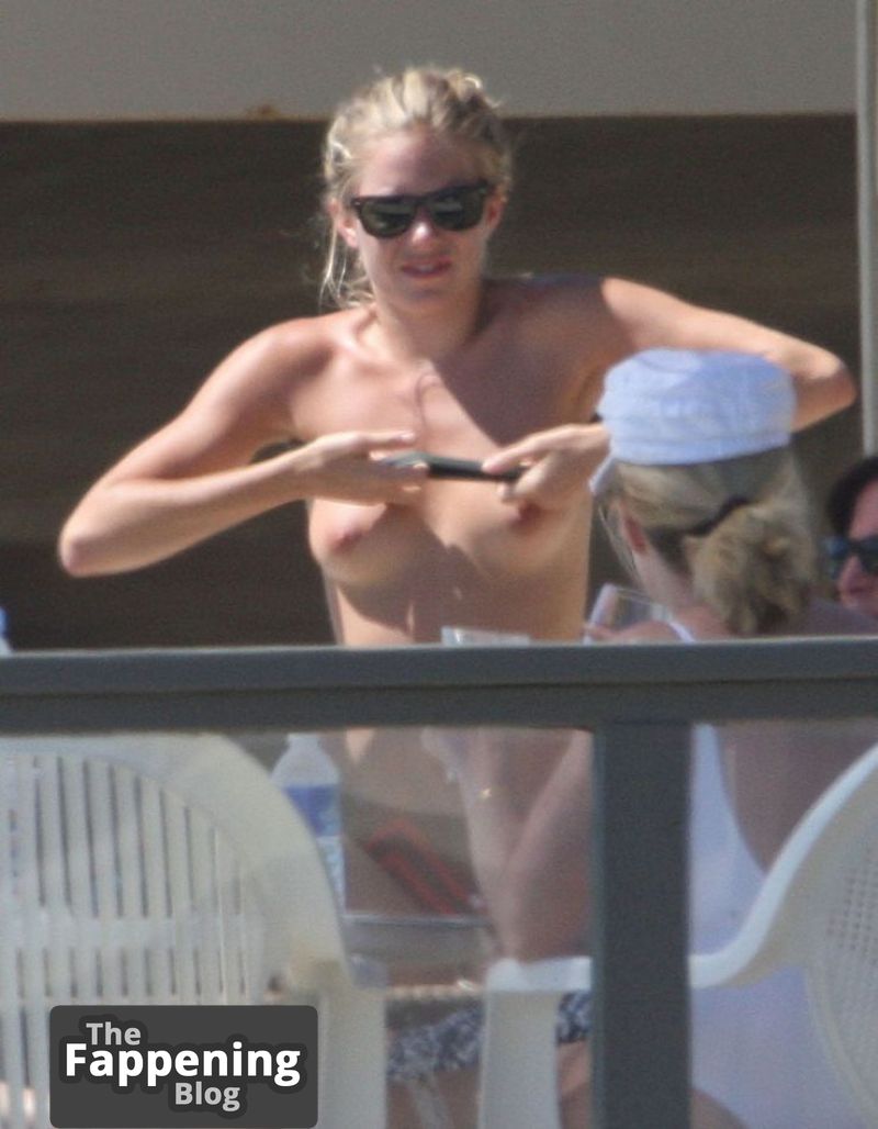 Коллекция откровенных фотографий Сиенны Миллер, демонстрирующих её обнажённую грудь, грудь без бюстгальтера с пышным декольте, обнажённую заднюю часть, интимные места, ошибки в гардеробе и фронтальную наготу.