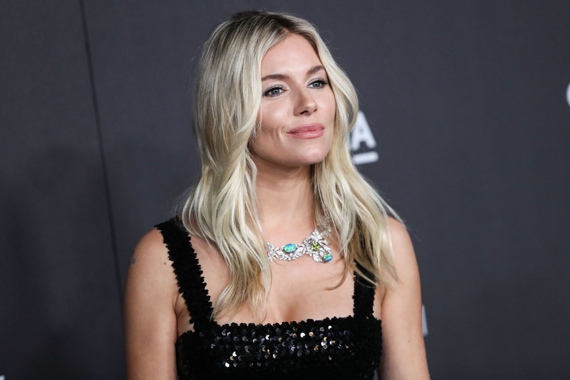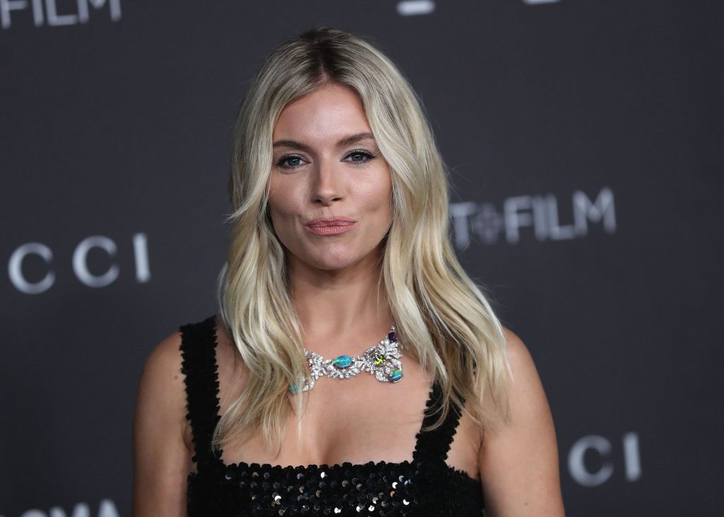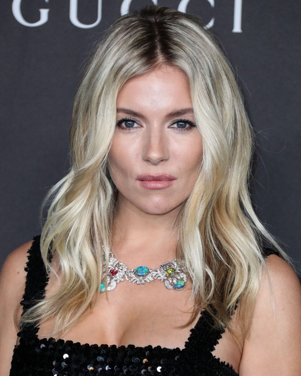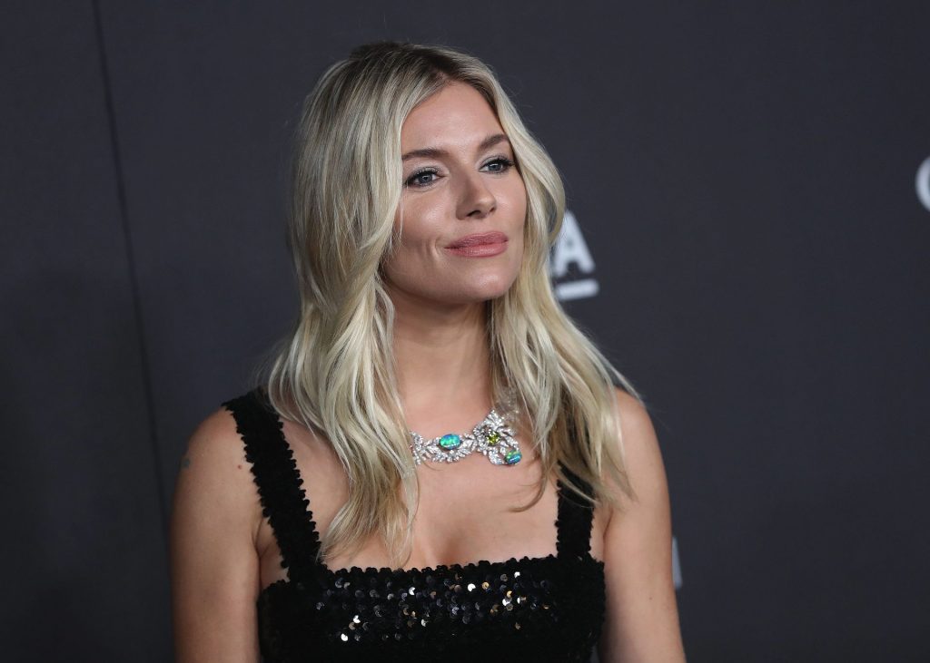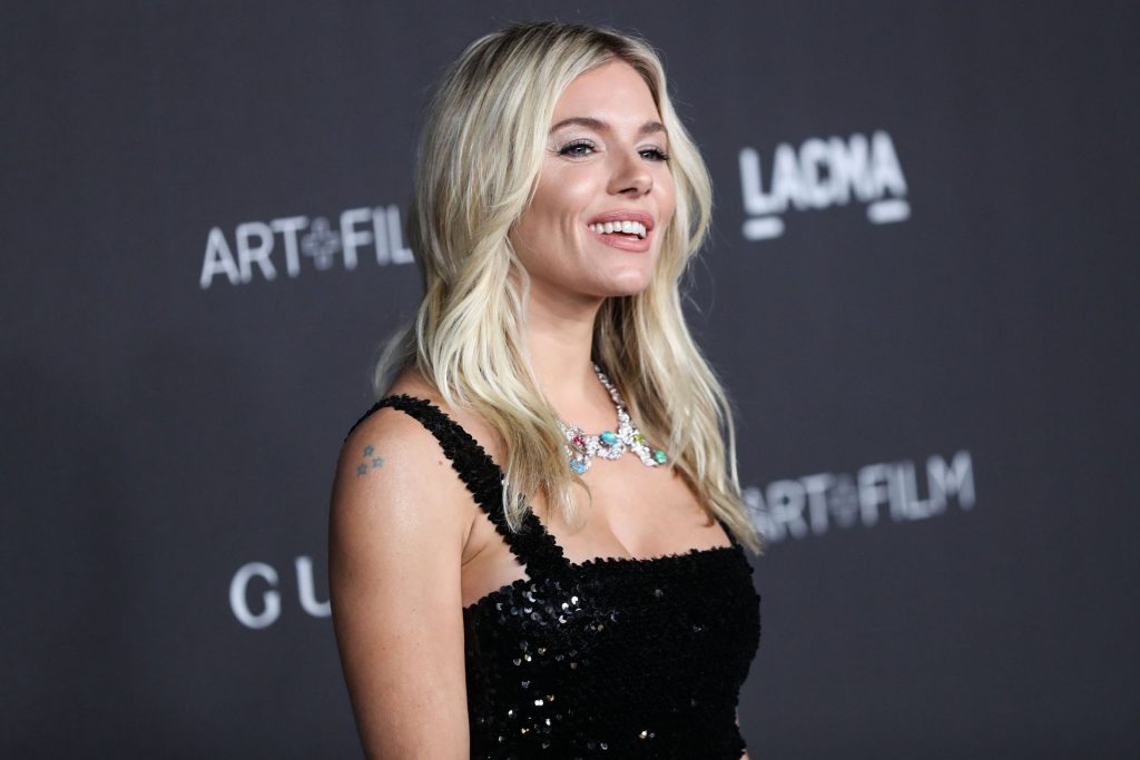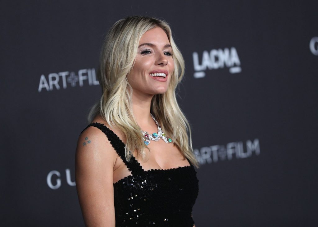 Сиенна Миллер прибывает на гала-вечер LACMA Art and Film 2019 в Музее искусств округа Лос-Анджелес, 02.11.2019. 37-летняя актриса была одета в элегантное черное платье Gucci, украшенное пайетками, и черные сандалии. На шее она носила красивое бриллиантовое ожерелье с цветными камнями.
