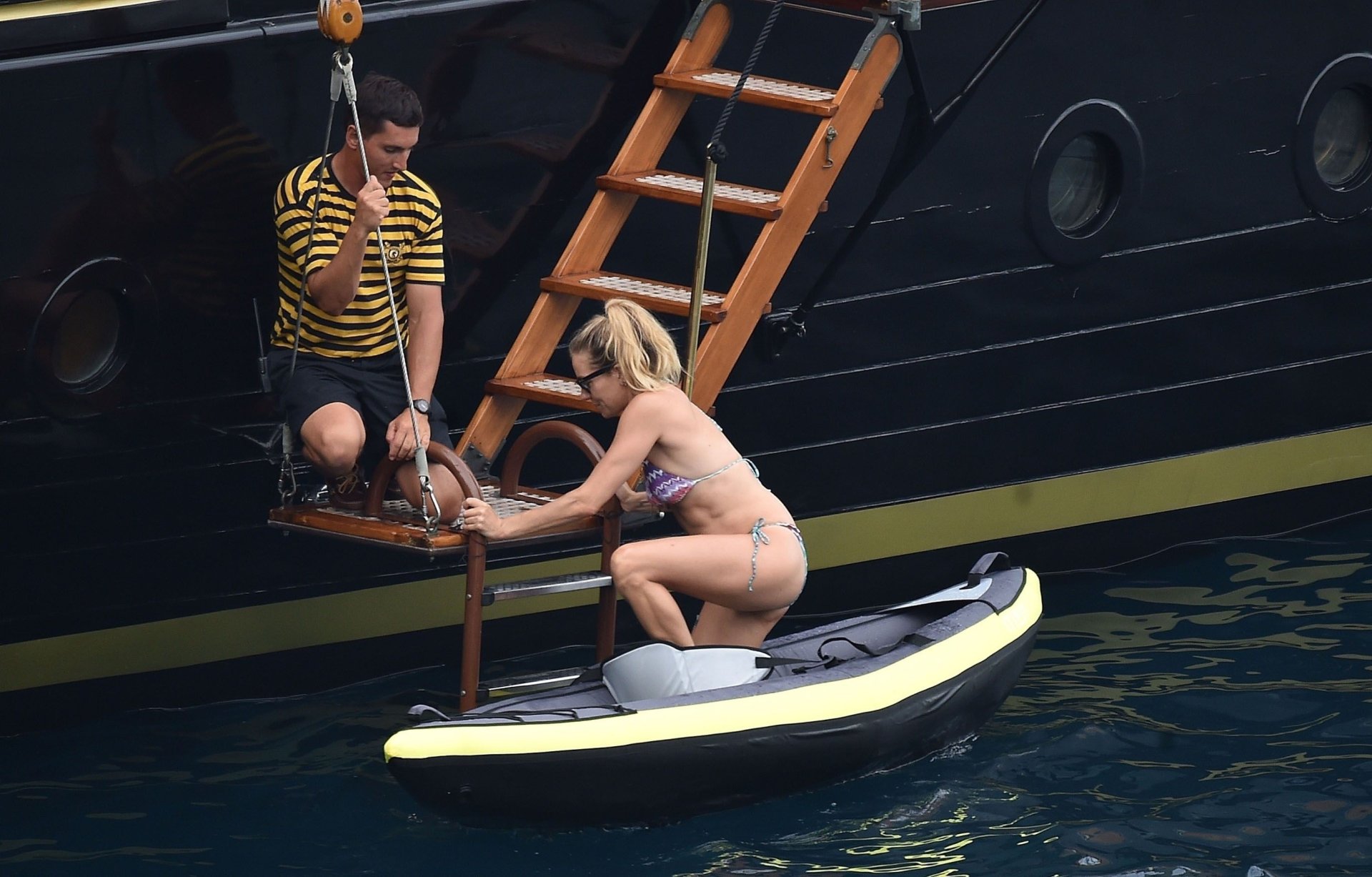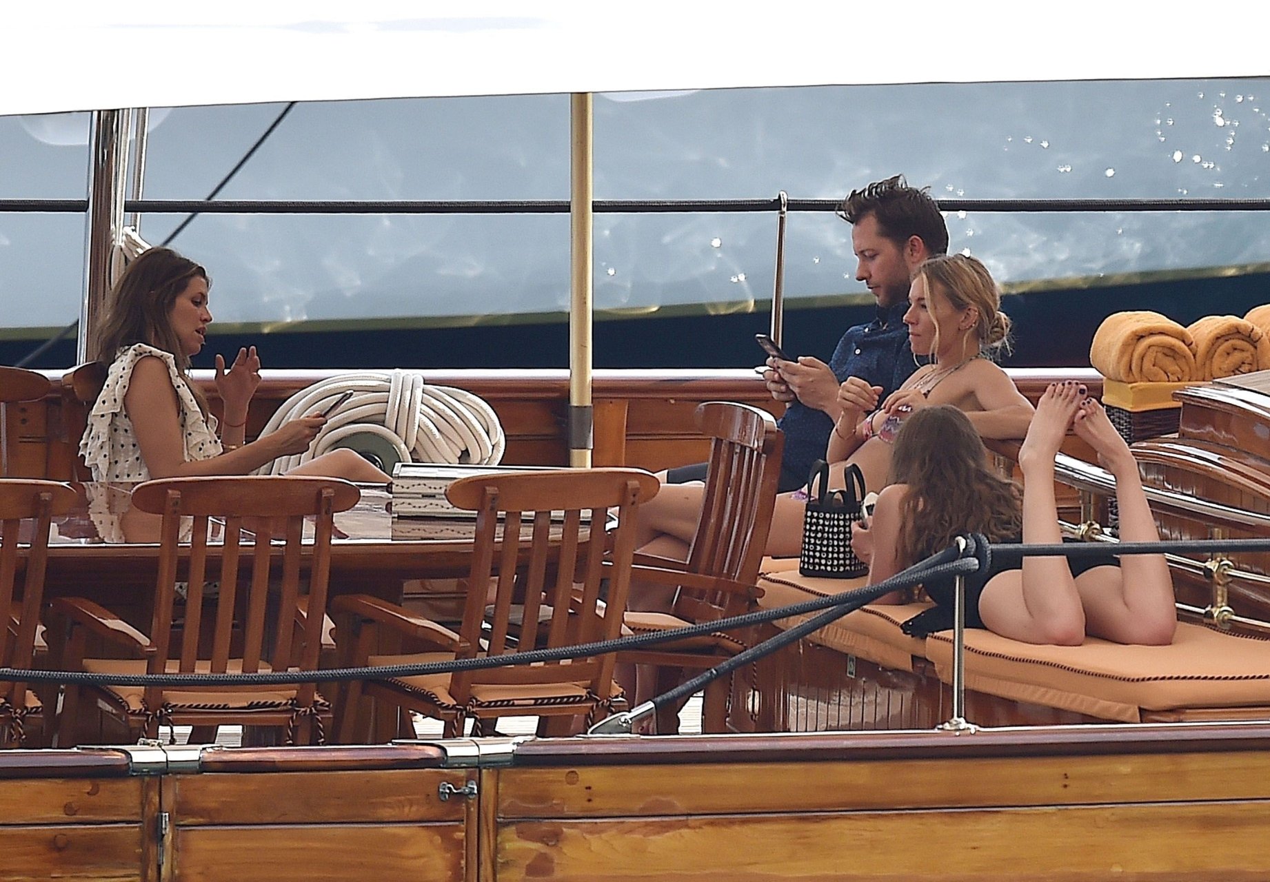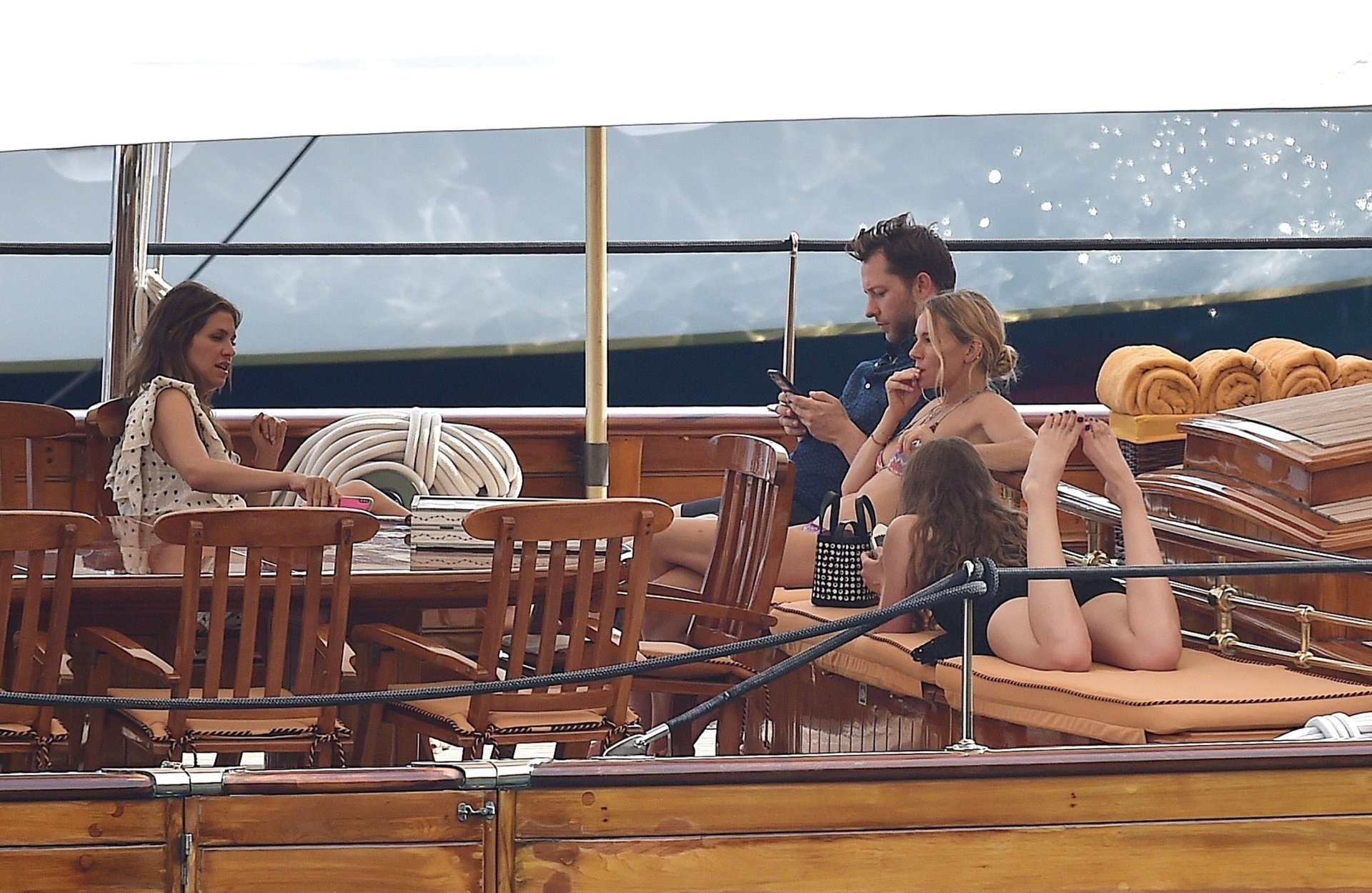 Британская актриса Сиенна Миллер (36) была замечена в своем откровенном бикини, наслаждаясь летним солнцем на борту своей лодки, 22.07.2018. Сиенна произвела фурор, когда гребла в море, и в отпуске ее сопровождали Даша Жукова, бывшая жена российского владельца «Челси» Романа Абрамовича, и Дарек Бласберг в Портофино, Италия.