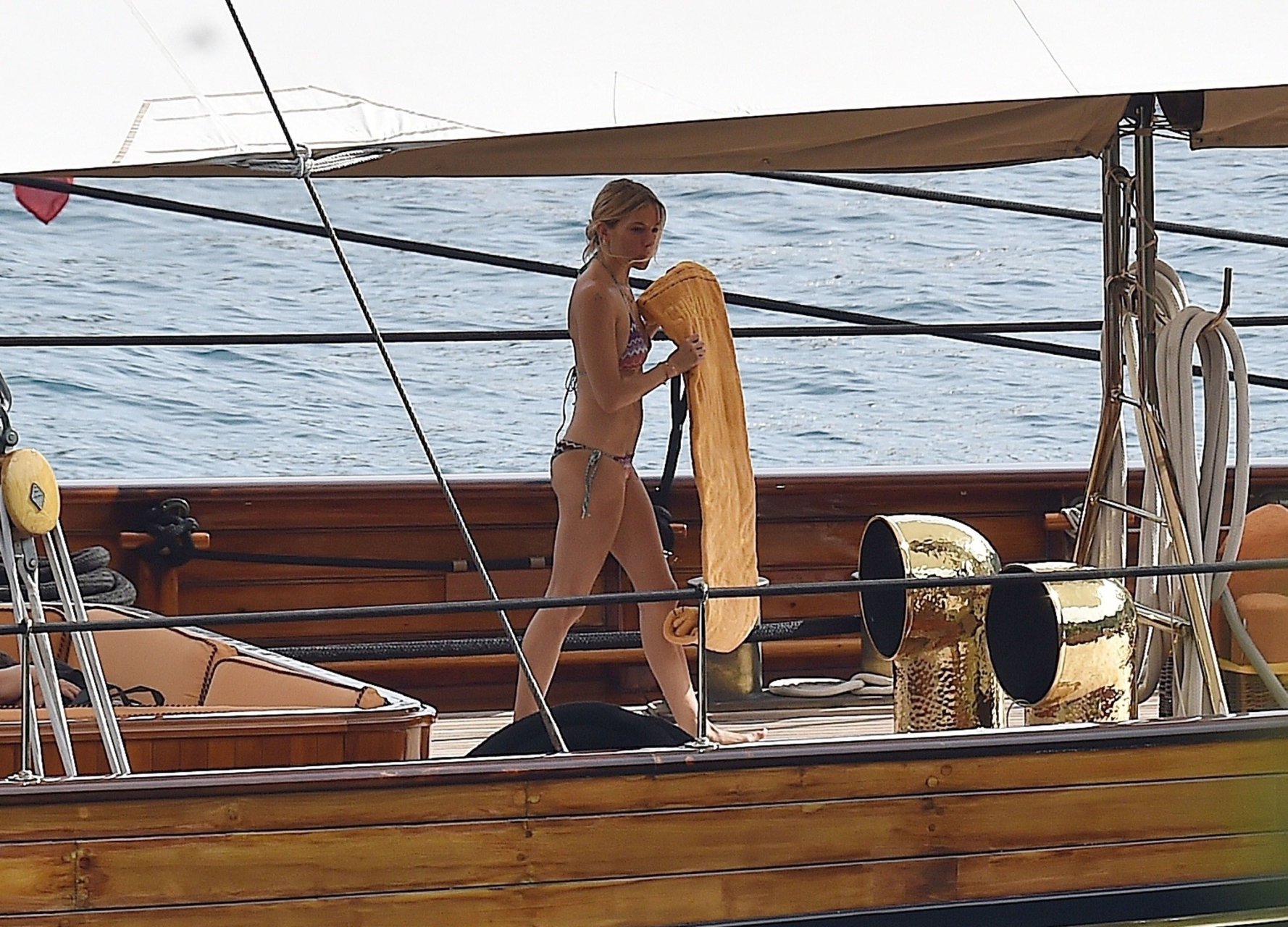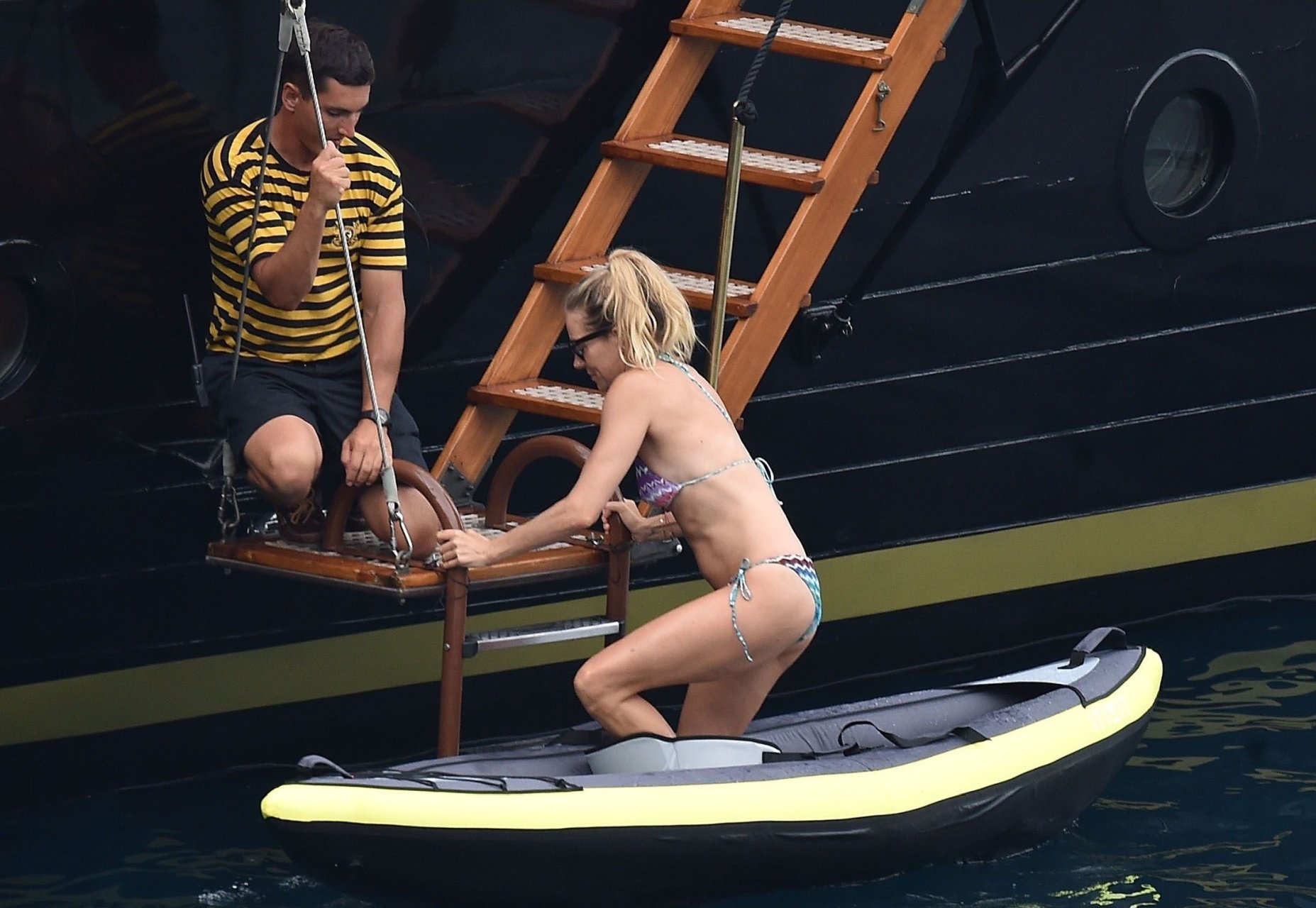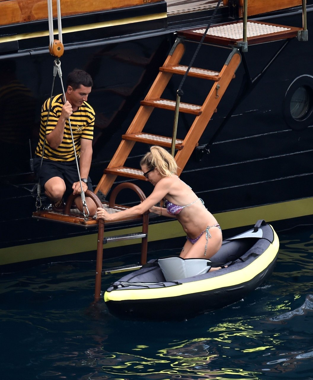 Британская актриса Сиенна Миллер (36) была замечена в своем откровенном бикини, наслаждаясь летним солнцем на борту своей лодки, 22.07.2018. Сиенна произвела фурор, когда гребла в море, и в отпуске ее сопровождали Даша Жукова, бывшая жена российского владельца «Челси» Романа Абрамовича, и Дарек Бласберг в Портофино, Италия.