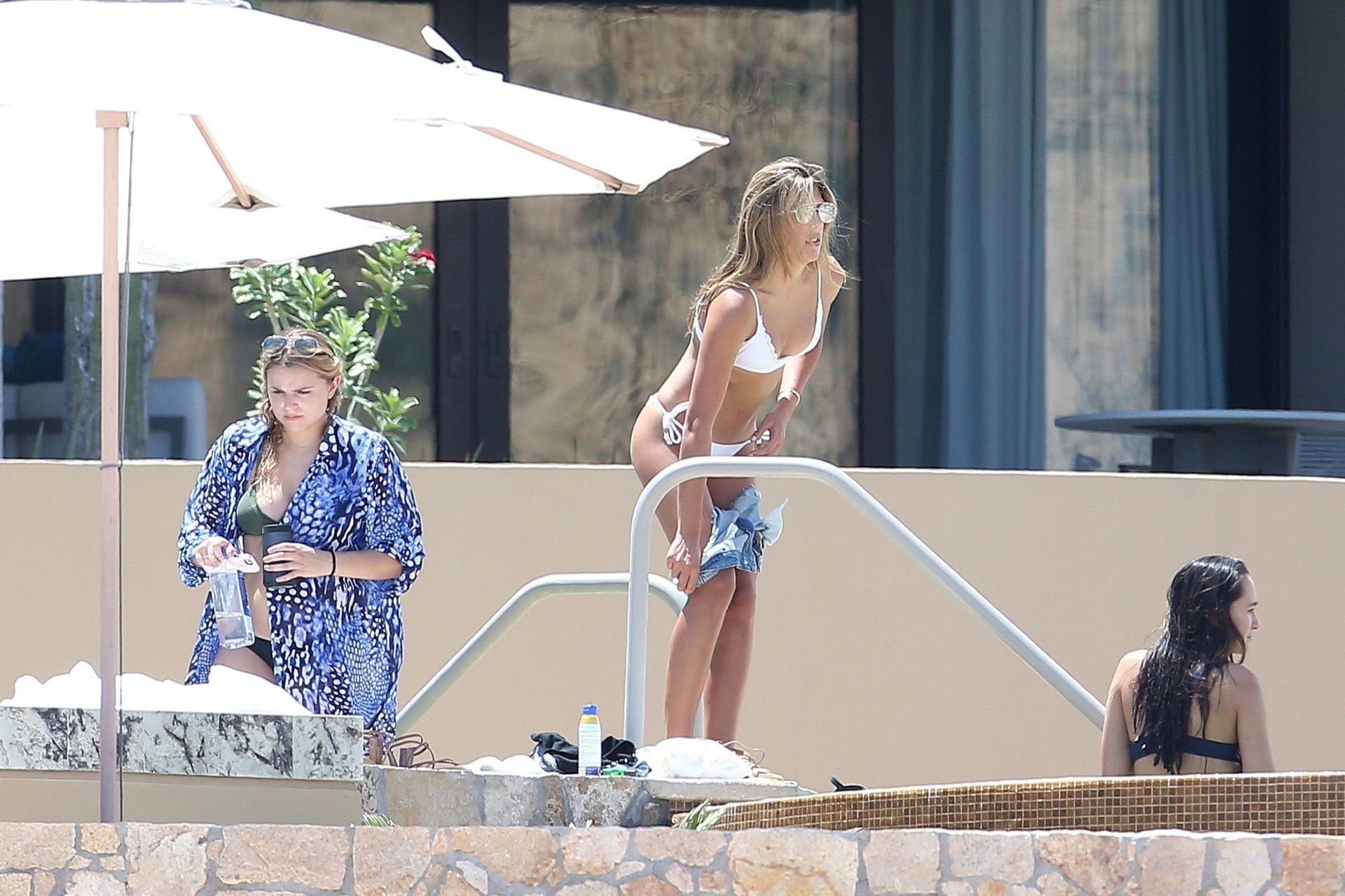 Сильвестр Сталлоне прибывает в Кабо-Сан-Лукас со своими двумя младшими дочерьми, Систин и Скарлет, а также с некоторыми друзьями семьи. Группа начала свой пляжный отпуск с купания в джакузи и загара, 12.08.2018.