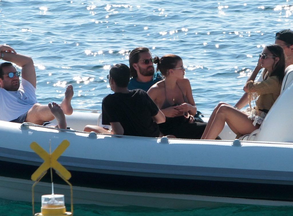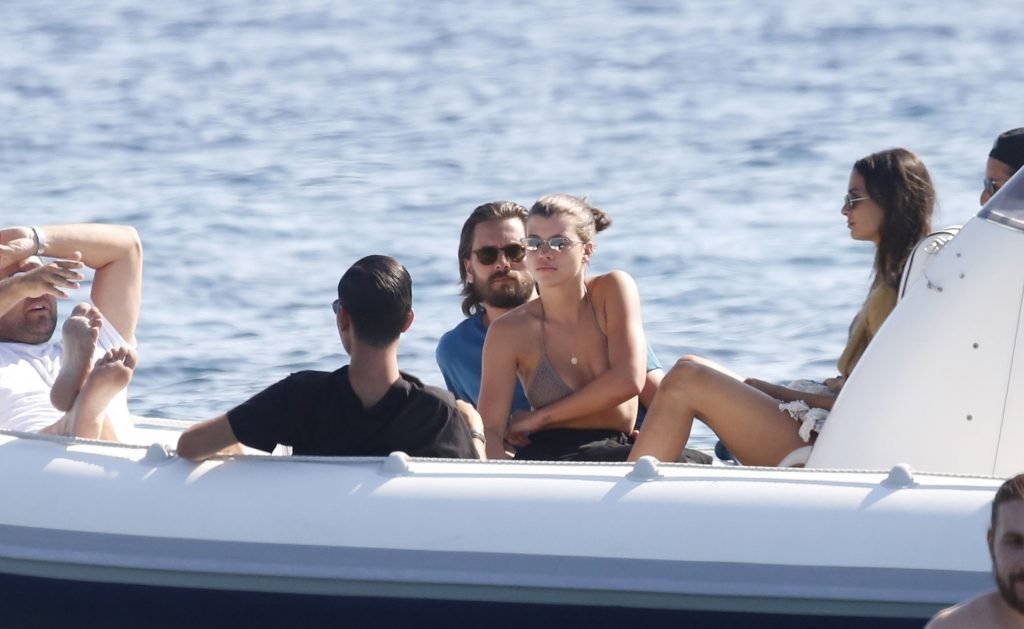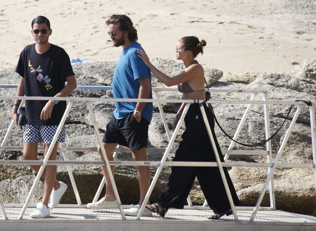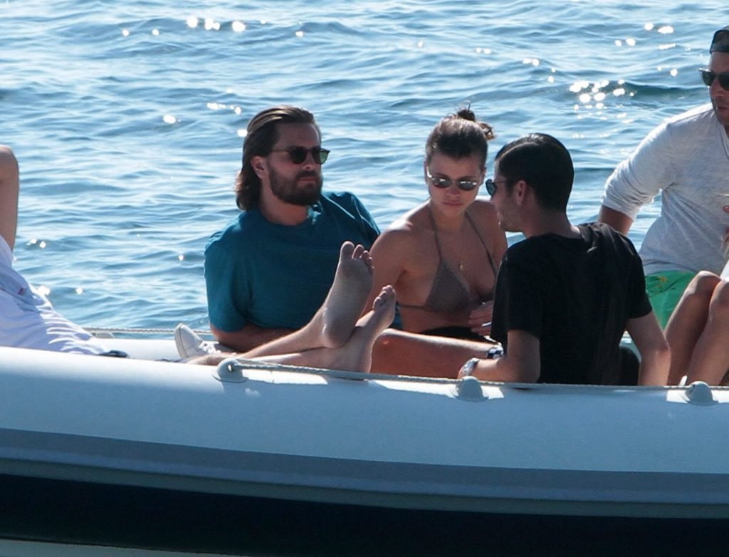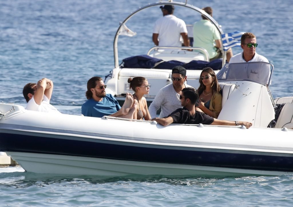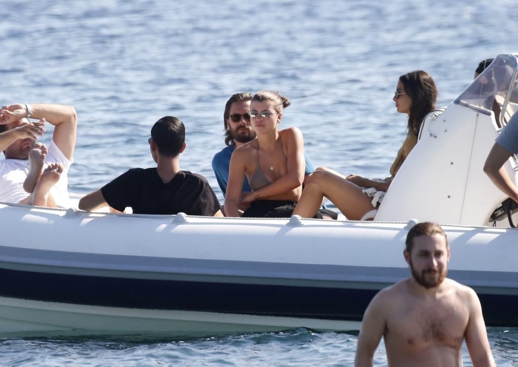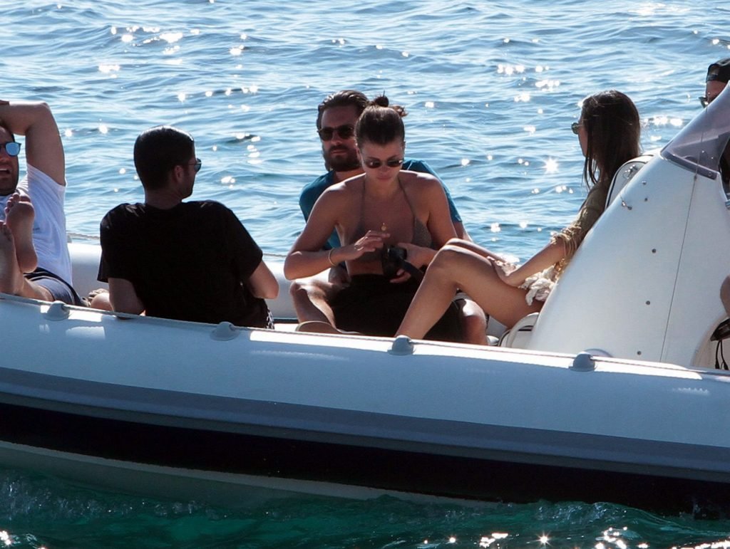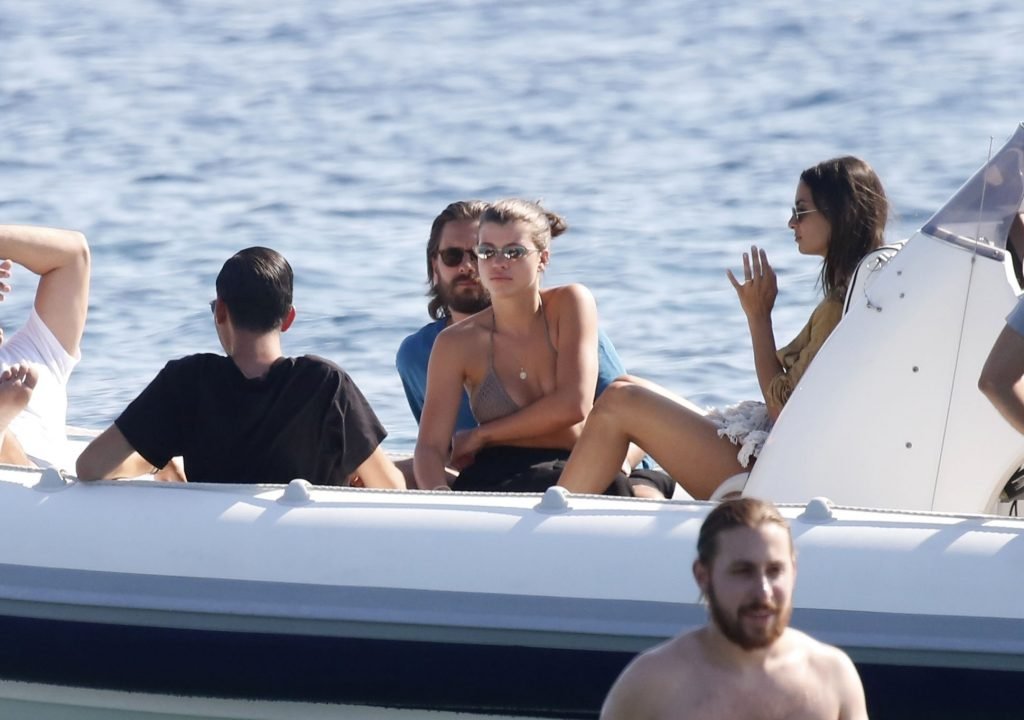 Sofia Richie, Scott Disick и друзья были замечены на скоростной лодке на острове Миконос, Греция, 07/09/2018. 19-летняя модель была в коричневом бикини.