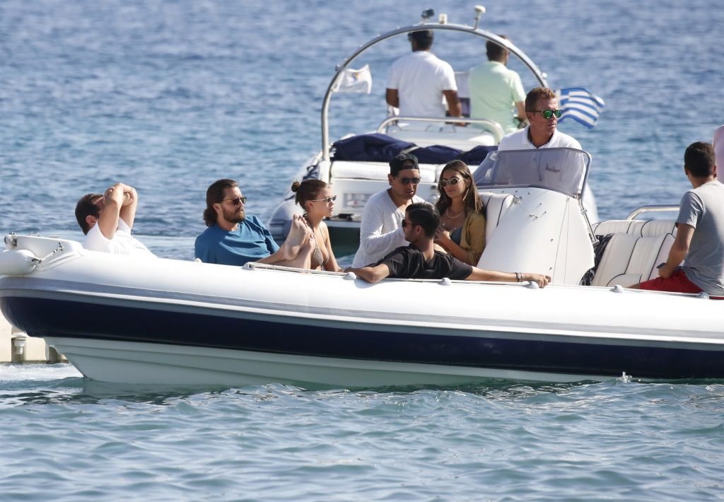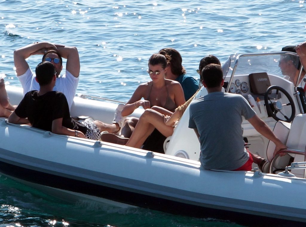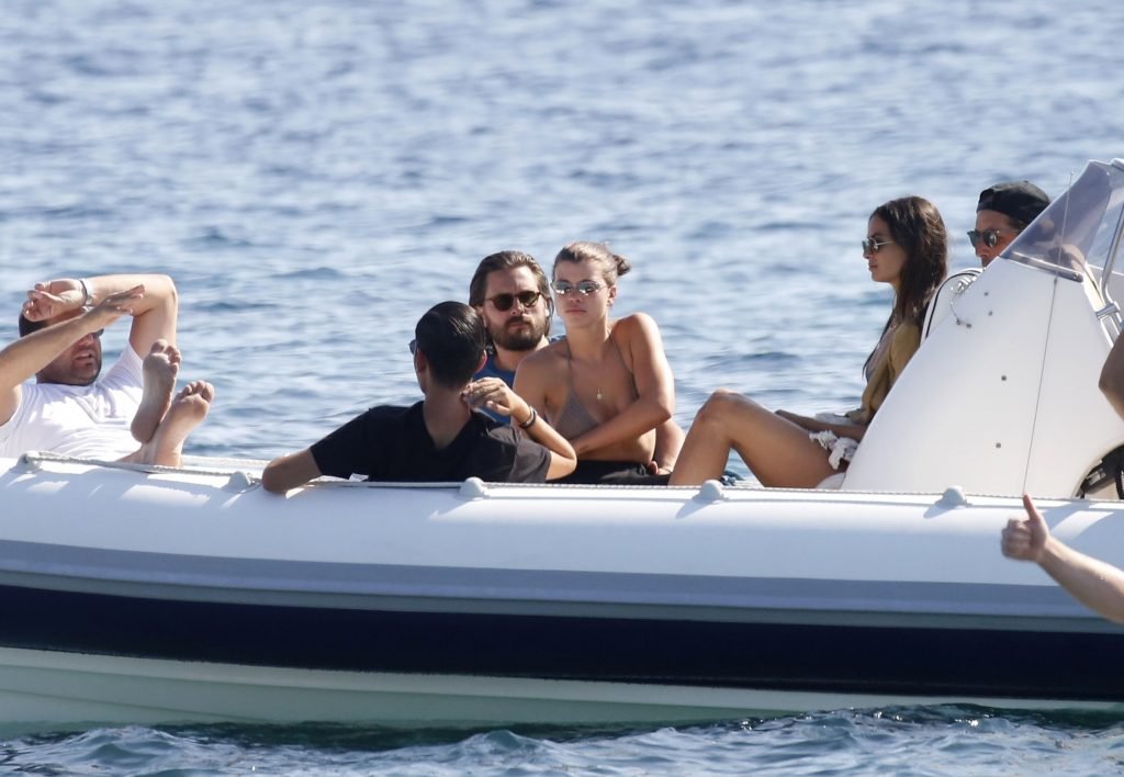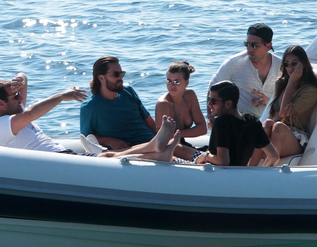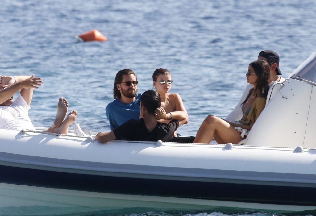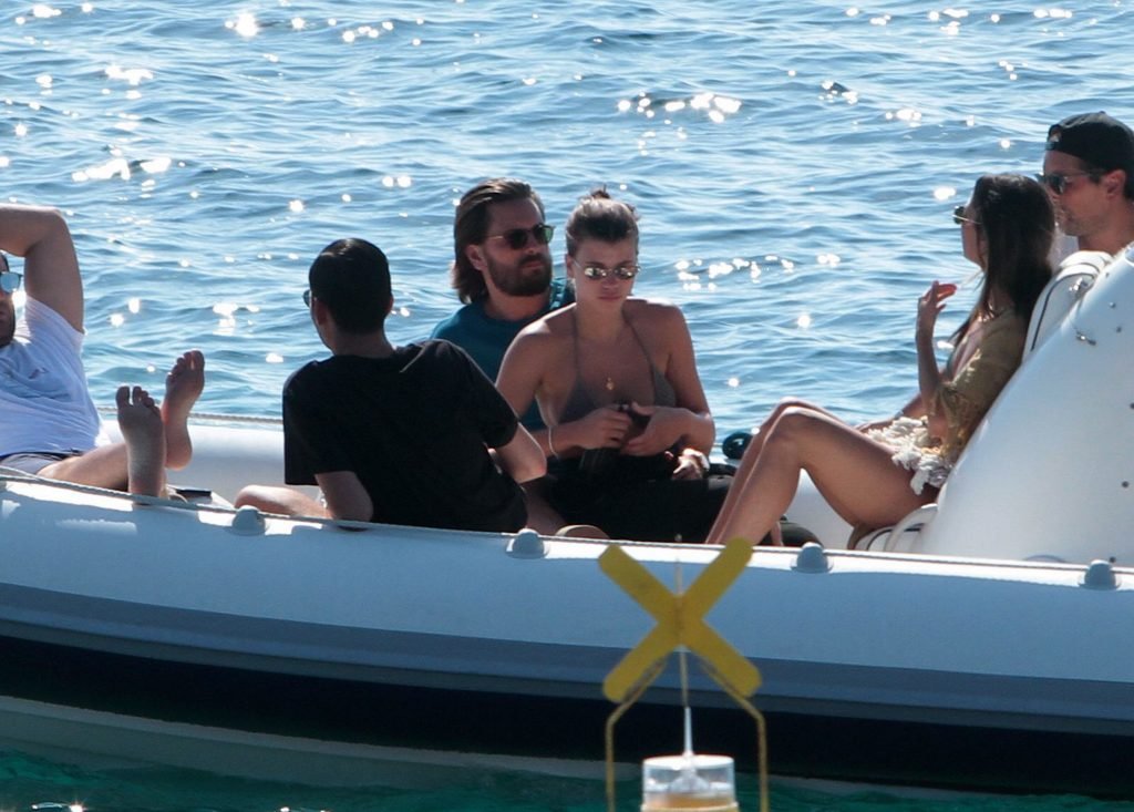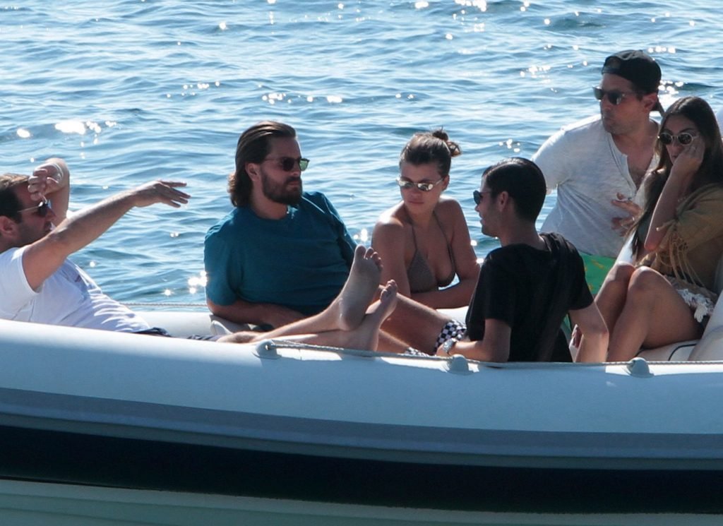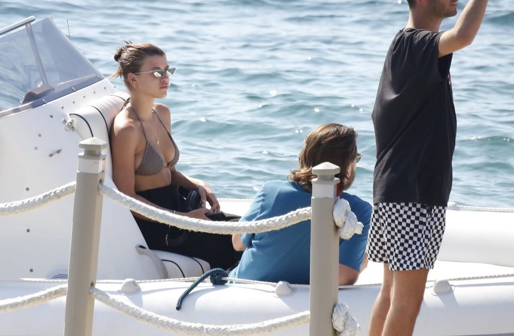 Sofia Richie, Scott Disick и друзья были замечены на скоростной лодке на острове Миконос, Греция, 07/09/2018. 19-летняя модель была в коричневом бикини.