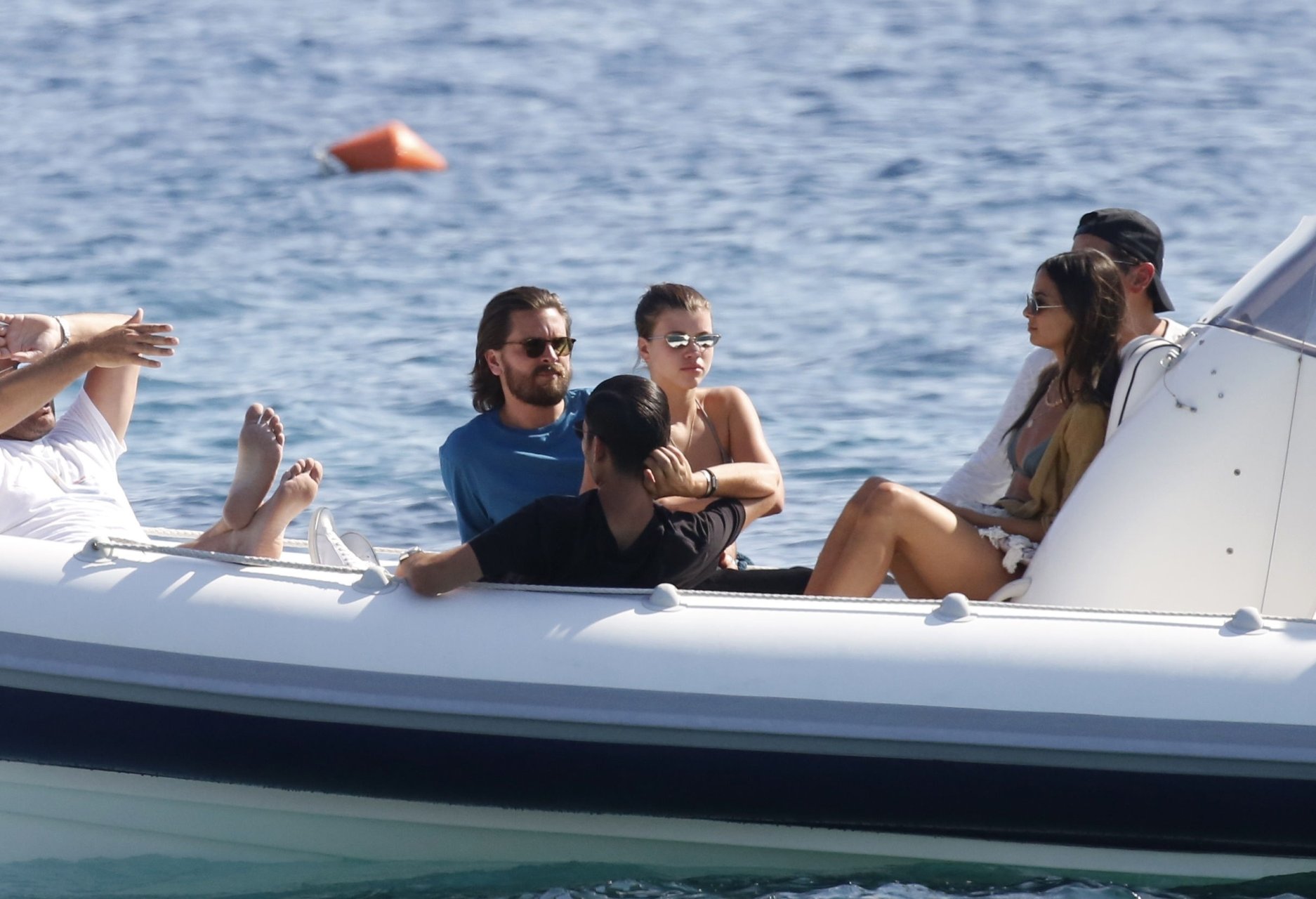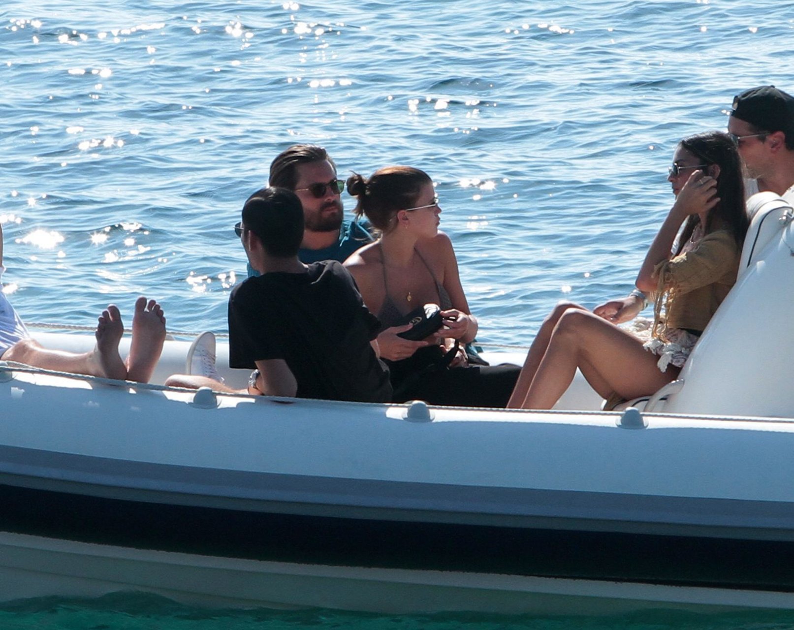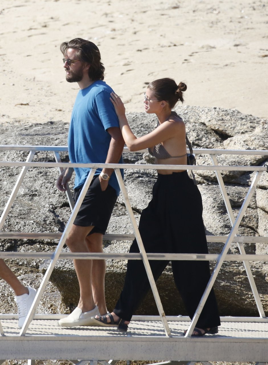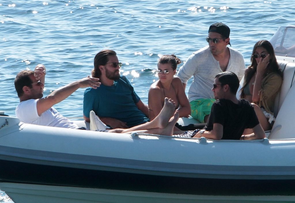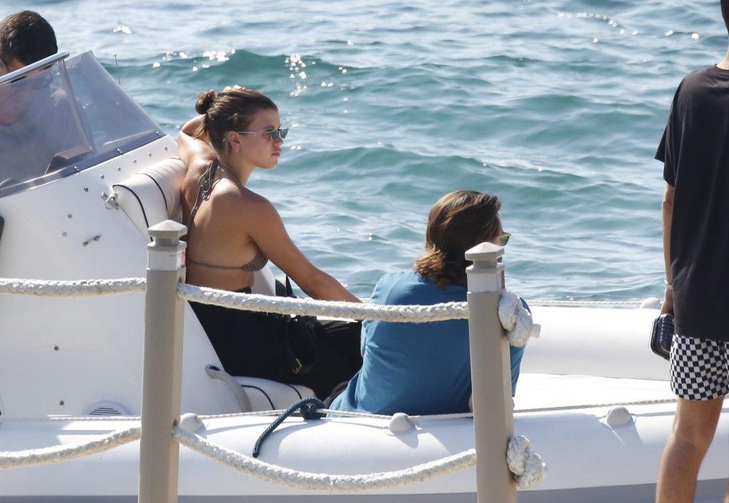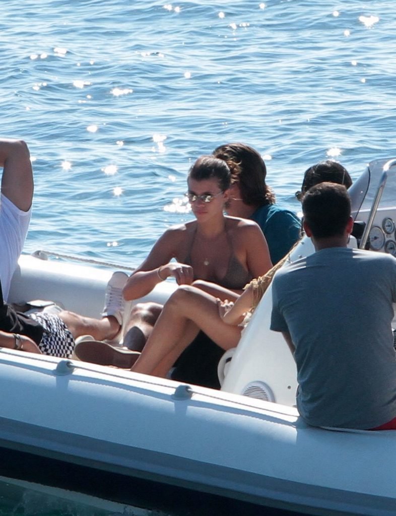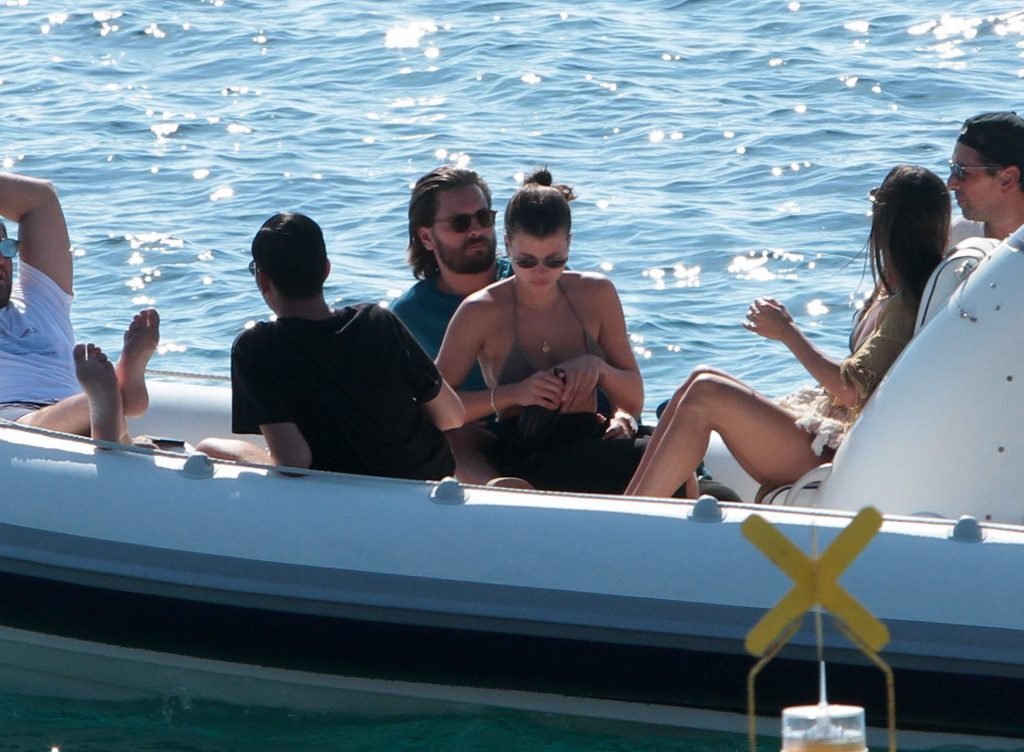 Sofia Richie, Scott Disick и друзья были замечены на скоростной лодке на острове Миконос, Греция, 07/09/2018. 19-летняя модель была в коричневом бикини.