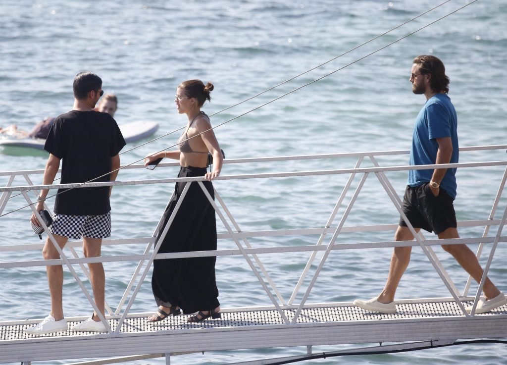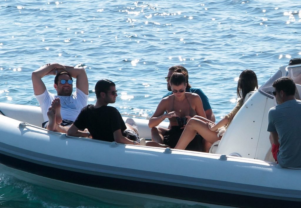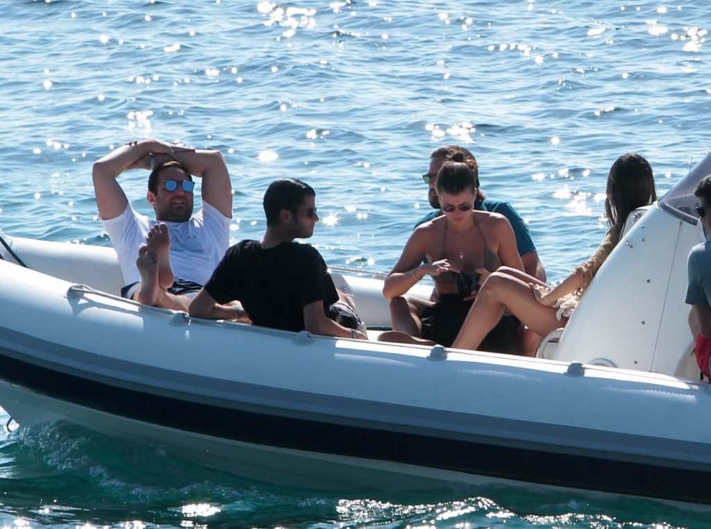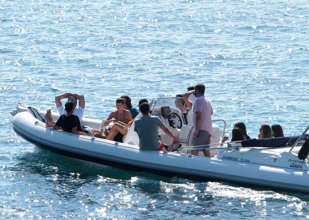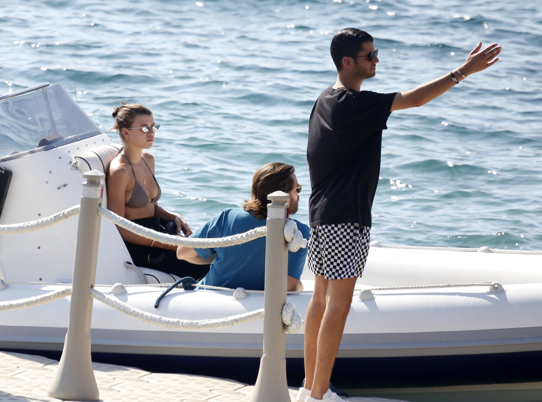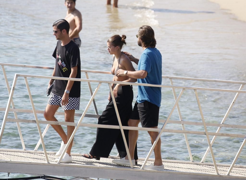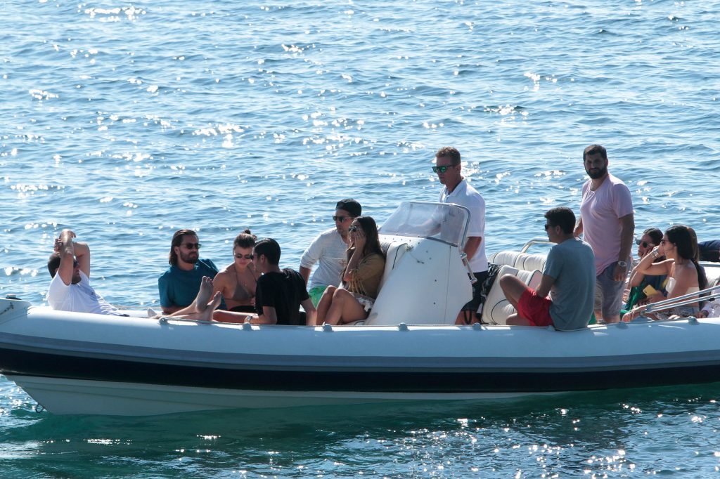 Sofia Richie, Scott Disick и друзья были замечены на скоростной лодке на острове Миконос, Греция, 07/09/2018. 19-летняя модель была в коричневом бикини.