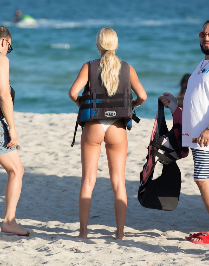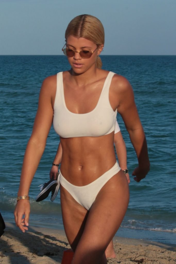 Модель София Ричи (19 лет) замечена в белом бикини на пляже Майами, 12.08.2017.
