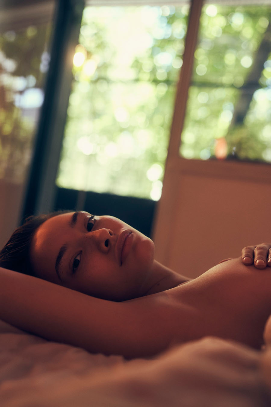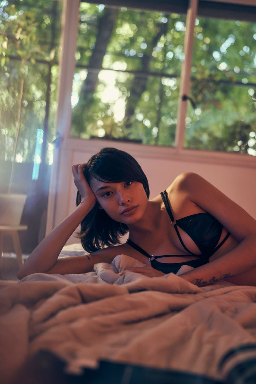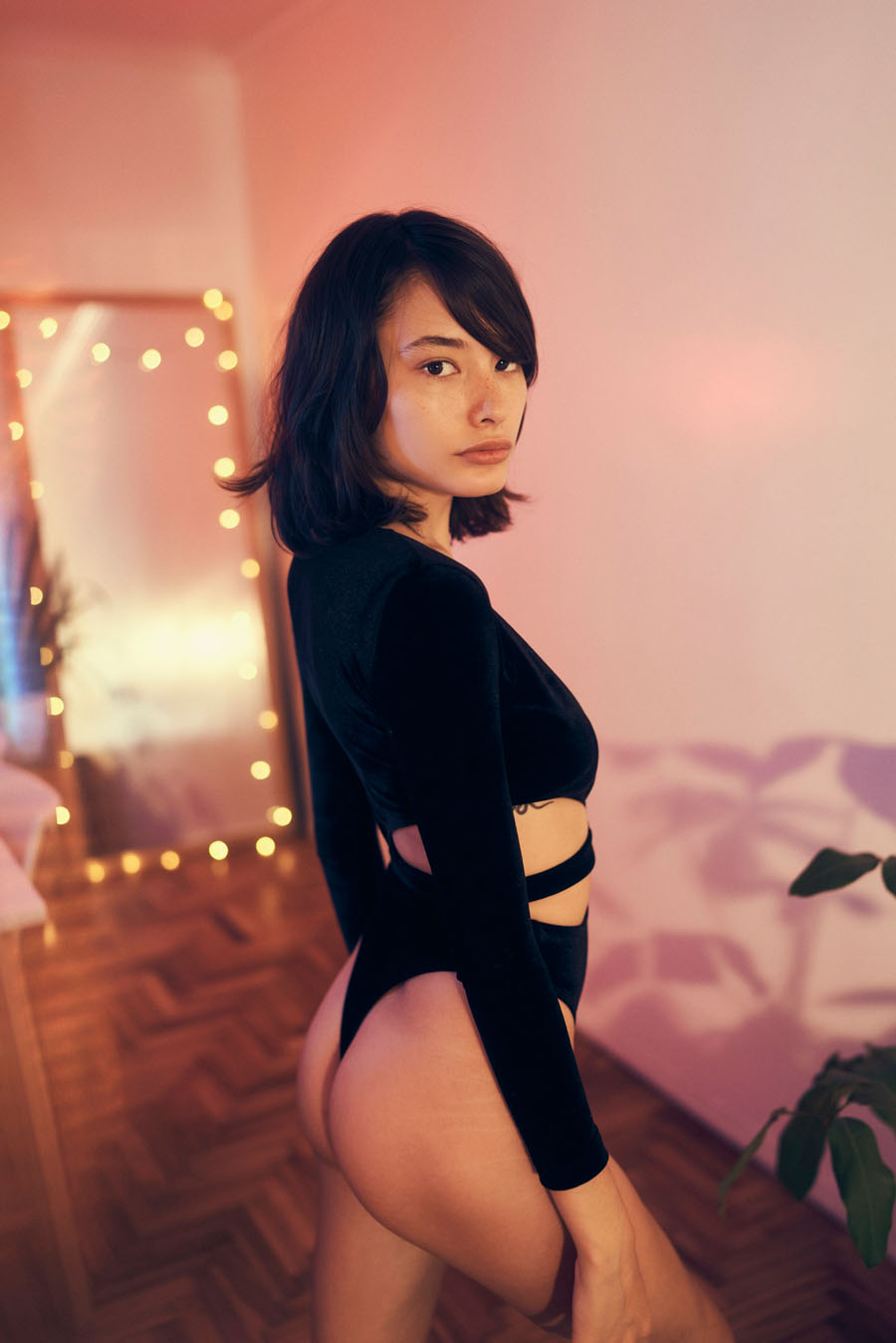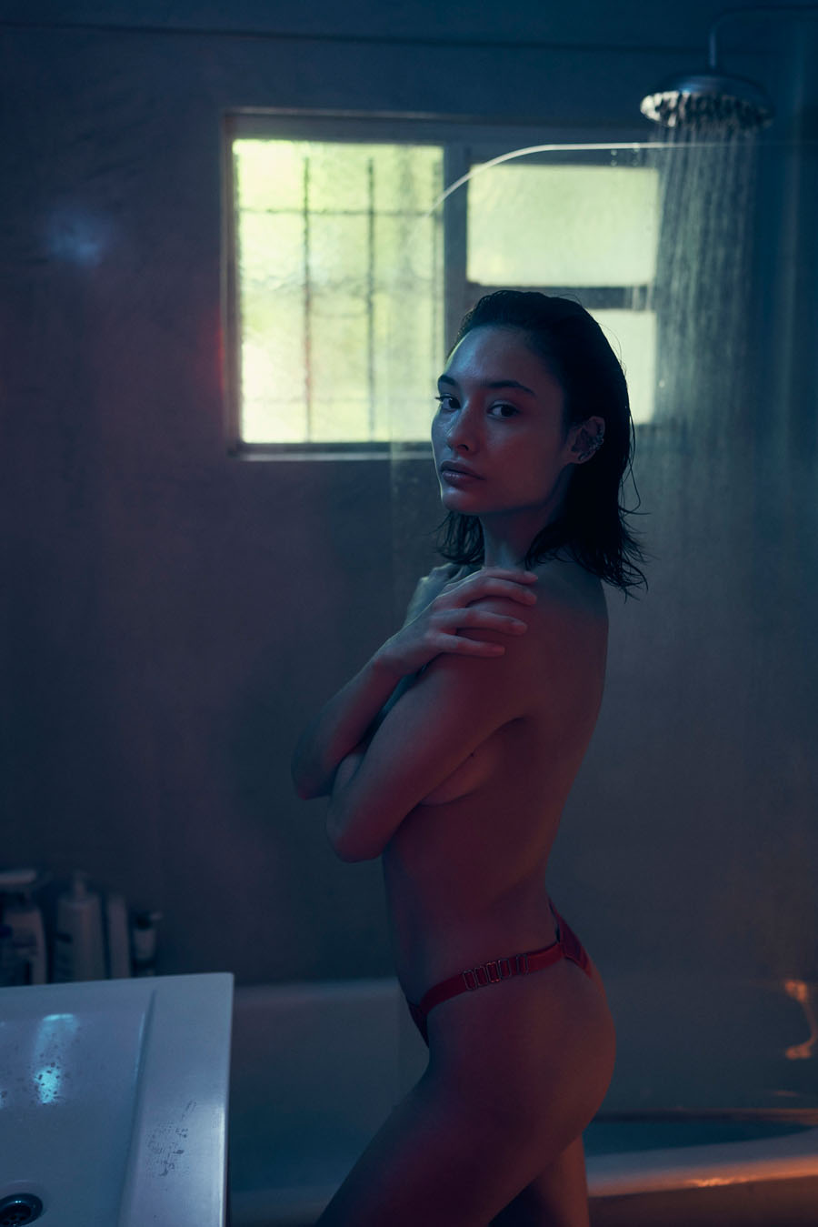 Аргентинская модель София Толедо позирует топлесс в фотосессии Анибала Веккио (2021). Она также позирует обнажённой и в красном/чёрном нижнем белье дома.